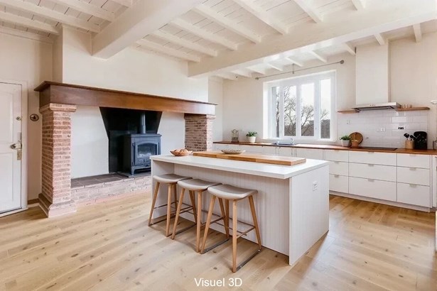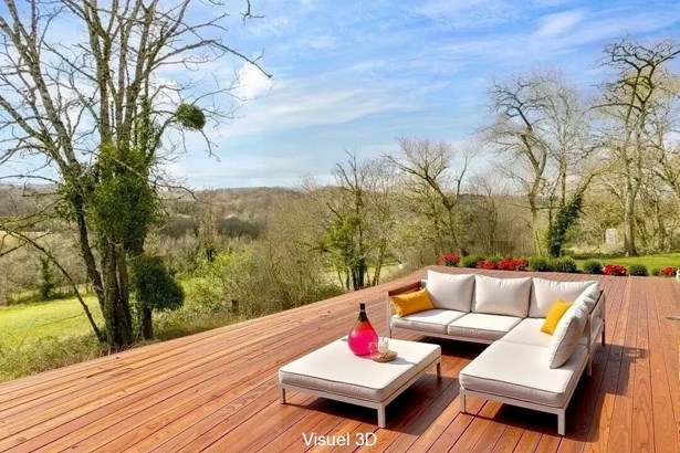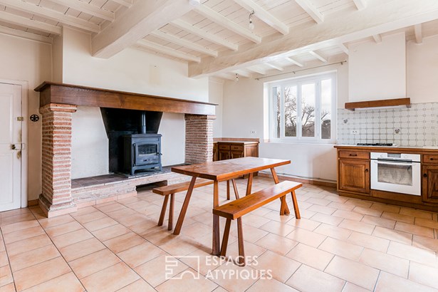 Bathed in light, the living rooms make up the ground floor. The living room opens onto an intimate terrace overlooking the four hectares of land included in the property. The generously sized independent kitchen offers a pleasant dining area.