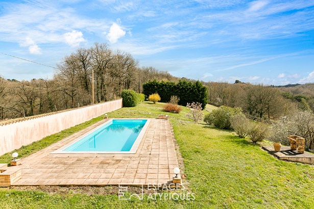 Upstairs, the sleeping area is currently divided into 3 bedrooms, one of which is over 75 sqm with undeniable potential: creation of several bedrooms, bathrooms, office, : They currently share a bathroom. The swimming pool invites you to relax on its wide beaches and with its surrounding tranquility.
