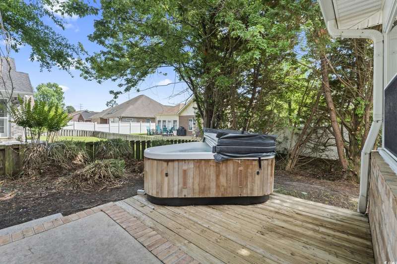 ***OPEN HOUSE SUNDAY, SEPTEMBER 28th FROM 12:00 - 2:00 PM and 3:00 - 6:00 PM *** Welcome to this beautifully maintained 3-bedroom, 2-bath ranch-style home located in the desirable Ravenwood community of Little River, SC, where you’ll enjoy the freedom of no HOA! This one-story home offers timeless curb appeal with its all-brick exterior, brand-new roof, and freshly painted interior and new hardwood flooring in the combination living-dining area, primary bedroom and walk in closet. Completely move-in ready! Step inside to discover a bright and open floor plan featuring a spacious living area, primary suite on the first floor, and a two-car garage for ample storage and convenience. The heart of the home flows effortlessly to outdoor living spaces, including a cozy front porch, a back deck, and a fully enclosed Carolina room with a relaxing hot tub—perfect for unwinding after a day at the beach or entertaining guests year-round. Storage is provided with pulldown access to attic storage in the garage. Nestled just minutes from Cherry Grove Beach, this home is close to shopping, dining, hospitals, schools, and the scenic Little River waterfront. Whether you’re seeking a primary residence or a coastal retreat, this home offers both comfort and convenience in a fantastic location. Don’t miss your chance to own a beautiful, low-maintenance home in one of Little River’s most sought-after communities—without the hassle of HOA restrictions!