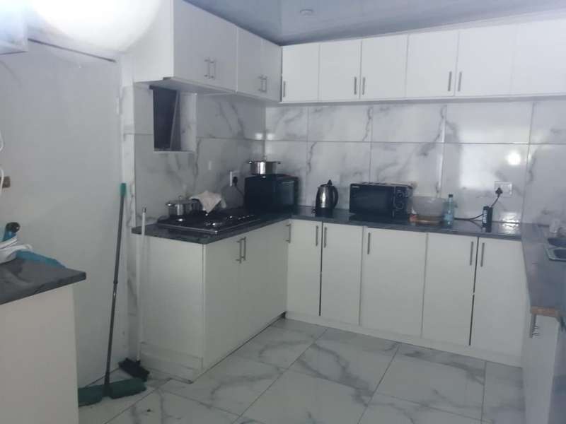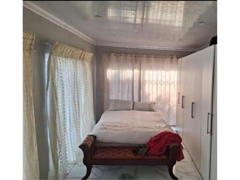 Spacious 4 bedroom home with granny flat..The granny flat has a seperate entrance.Main home has laminated flooring throughout and has plenty of build in cupboard space in all the bedrooms.Full modern fitted bathroom and toilet, wash basin, bath and shower. There is an additional guest toilet.There is a large kitchen with plenty of cupboard space and a oven and hob. The granny flat consists of the following.1 bedroom,bathroom,lounge and kitchen. Excellent security with burglar bars on all doors.The whole property is fully walled with CCTV cameras installed for extra protection. The property is near Crewe School as well as shops like Spar, Shoprite and Wilsons butchery.