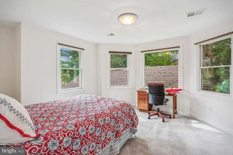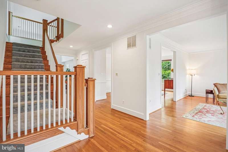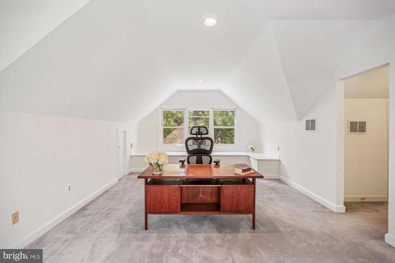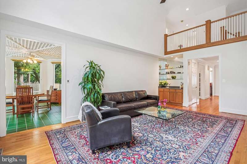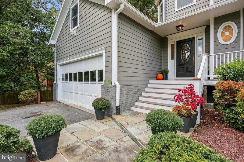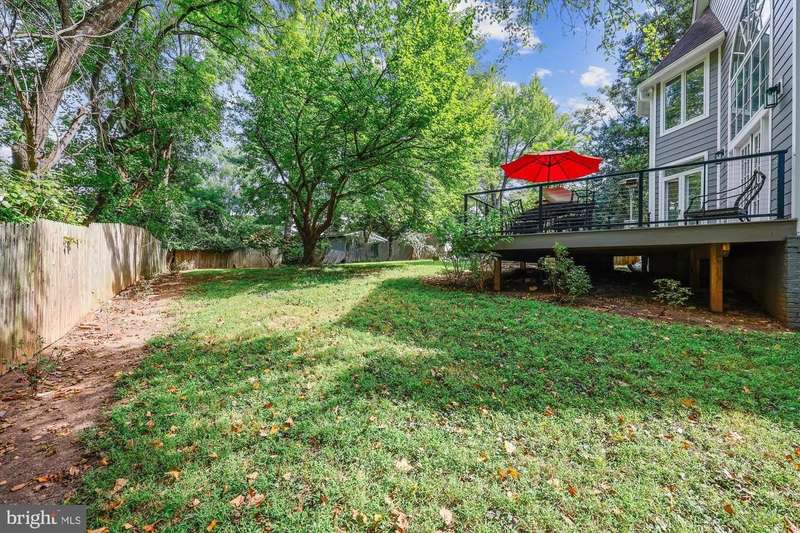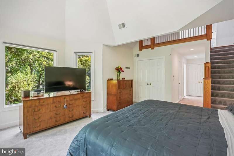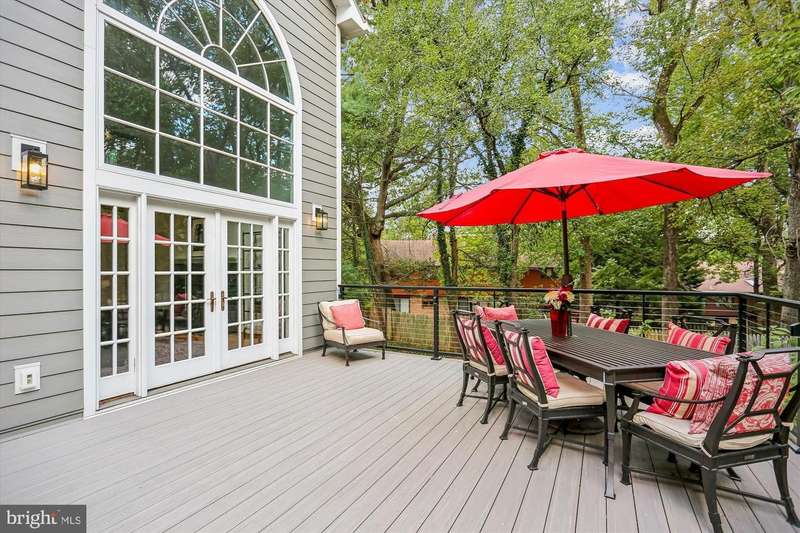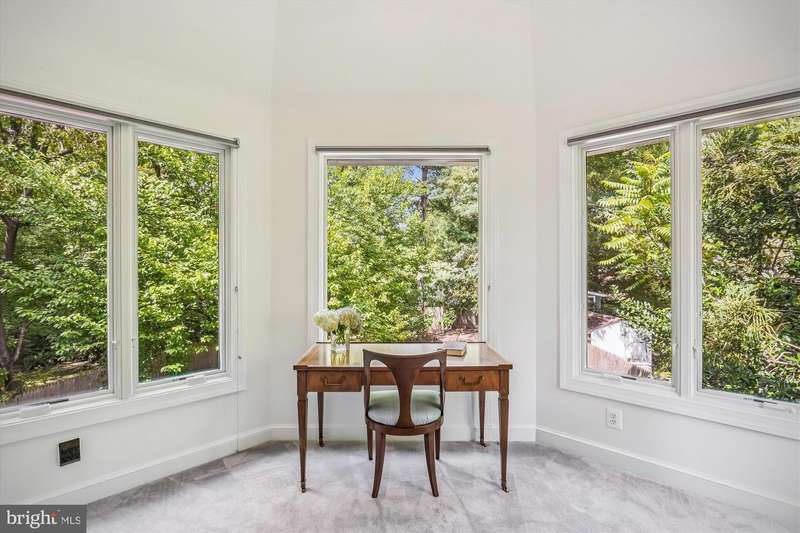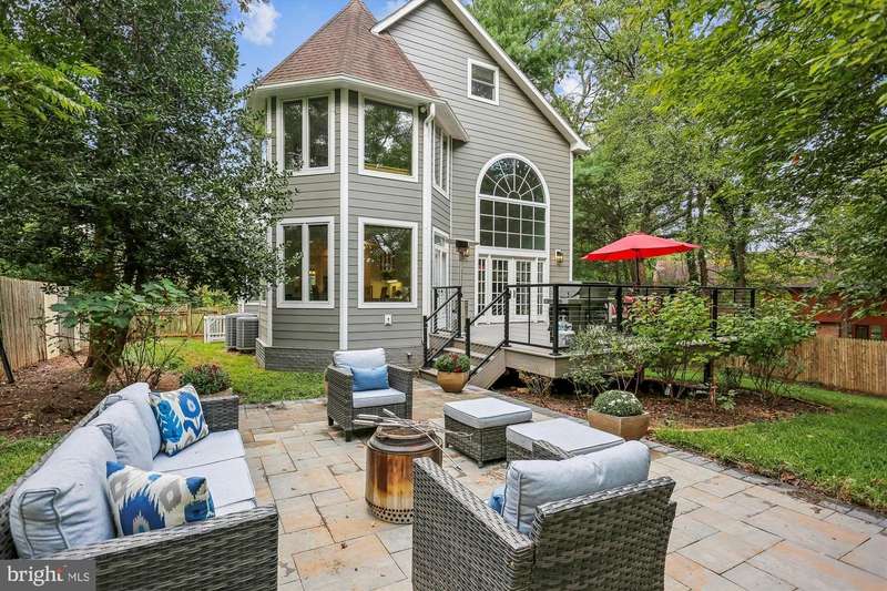 This incredible Victorian home is tucked away on a pipestem off Wilson Lane-set far from the road in a peaceful enclave. Nestled in a truly private setting with mature landscaping and ample parking, this striking contemporary residence offers over 4,500 square feet of living space, including five bedrooms and 3.5 bathrooms across three thoughtfully finished levels. Originally built in 1988, the home has been carefully updated over time, including new siding, new Trex deck, replacement windows, and a new dual-zoned HVAC system. Defined by dramatic ceiling heights, distinctive octagonal architecture, and stunning windows, this home offers a unique and inviting character. Inside, you'll find an entry foyer, a living room with crown molding, a large dining room with a China closet, a spacious kitchen with breakfast area, and a dramatic two-story family room. The sunlit kitchen features GE double wall ovens, solid surface countertops, recessed lighting, a GE Profile five-burner gas cooktop, a pantry, a built-in desk, and a fabulous octagon-shaped breakfast room with access to the Trex deck. The showstopping family room includes a soaring Palladian window, French doors to the deck, a marble wood-burning fireplace, and a built-in wet bar with glass display shelving. A powder room and coat closet complete the main level. Upstairs, the luxurious primary suite includes multiple closets with organizers-including two walk-ins-cathedral ceilings, a ceiling fan, and access to a spacious private loft. This versatile upper-level loft / retreat offers an office area with a balcony, fitness space, and a cedar walk-in closet. The primary bathroom includes a double vanity, a jetted soaking tub, and a separate shower. Two additional bedrooms, each generous in size and able to comfortably accommodate two beds, a hall bathroom, and a laundry closet complete the upper level. The walk-out lower level features a large recreation room with a fireplace and wet bar, two more bedrooms, a full bathroom, and a sizable storage room. Sitting on an extraordinary 22,559 square foot lot, the home's outdoor space includes a fenced backyard, a new Trex deck with cabled railing, a brick paver patio, a shed, a two-car garage, and additional surface parking. The home's architectural style beautifully integrates with the natural surroundings, creating a tranquil retreat with easy access to everything Bethesda has to offer. Just steps from Pyle Middle School and Whitman High School, and ideally located near Downtown Bethesda, local shopping, and the Capital Beltway-this is a rare opportunity not to be missed!