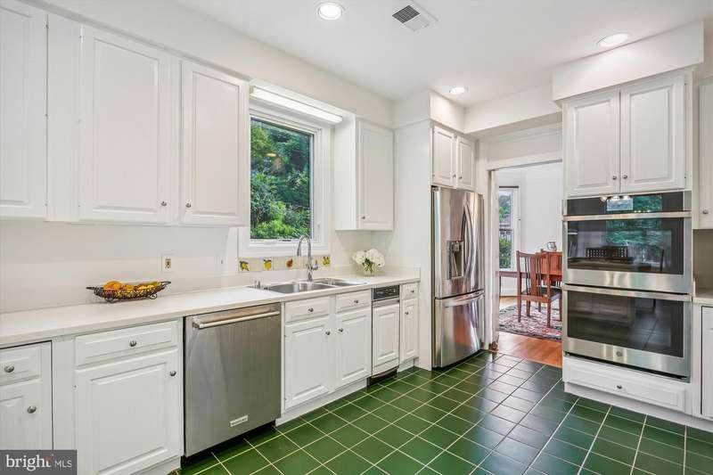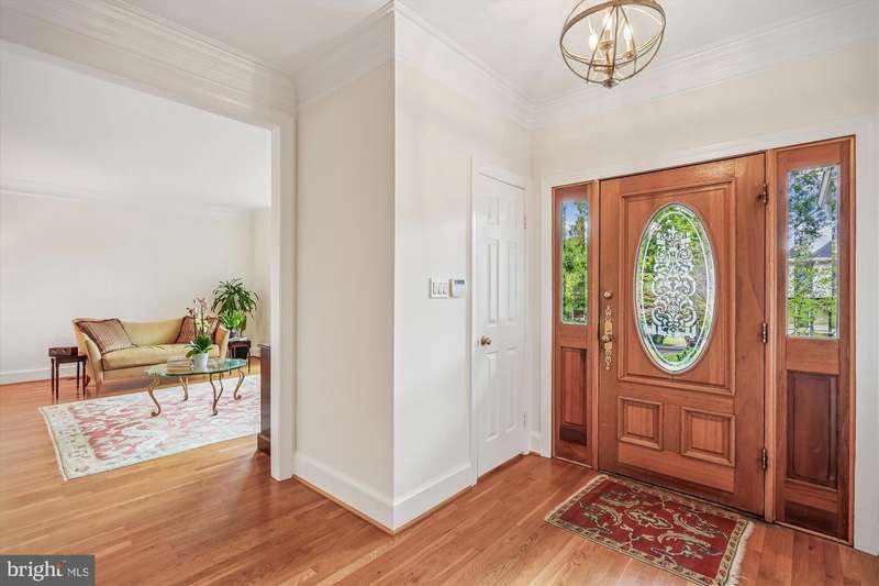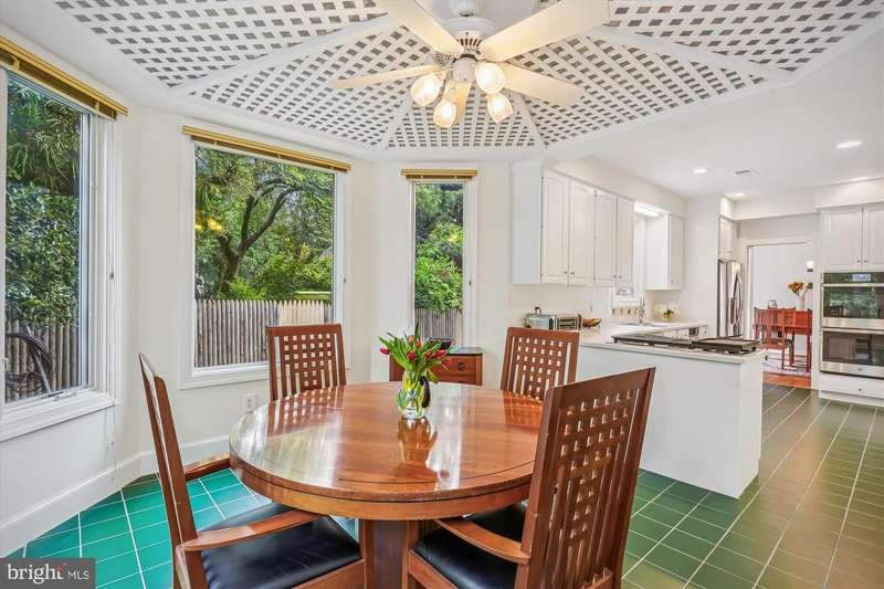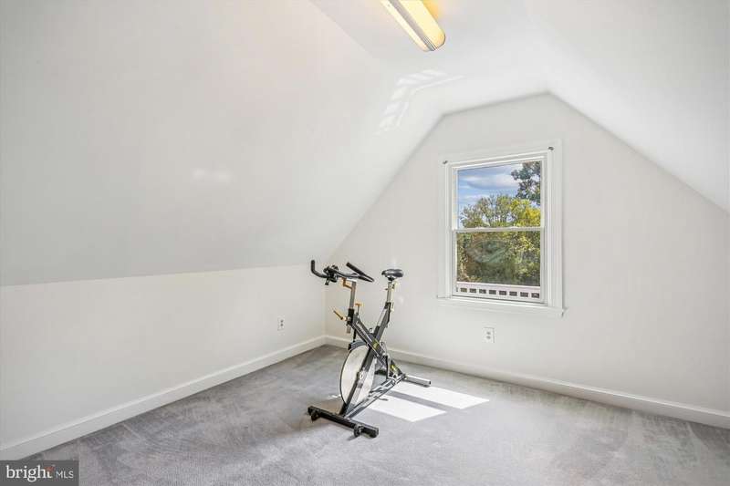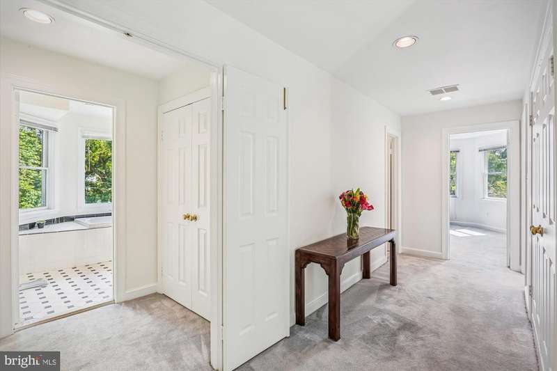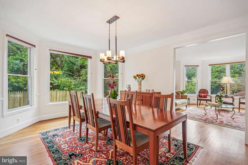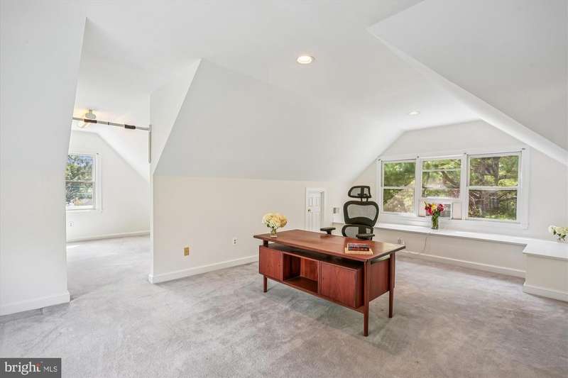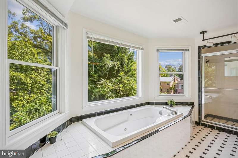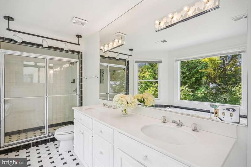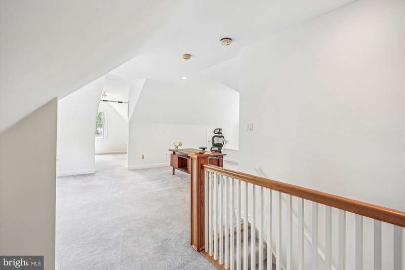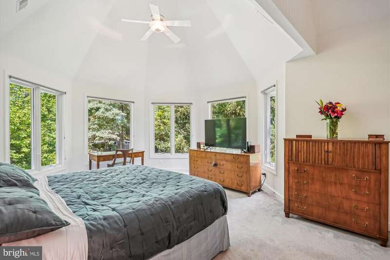 This incredible Victorian home is tucked away on a pipestem off Wilson Lane-set far from the road in a peaceful enclave. Nestled in a truly private setting with mature landscaping and ample parking, this striking contemporary residence offers over 4,500 square feet of living space, including five bedrooms and 3.5 bathrooms across three thoughtfully finished levels. Originally built in 1988, the home has been carefully updated over time, including new siding, new Trex deck, replacement windows, and a new dual-zoned HVAC system. Defined by dramatic ceiling heights, distinctive octagonal architecture, and stunning windows, this home offers a unique and inviting character. Inside, you'll find an entry foyer, a living room with crown molding, a large dining room with a China closet, a spacious kitchen with breakfast area, and a dramatic two-story family room. The sunlit kitchen features GE double wall ovens, solid surface countertops, recessed lighting, a GE Profile five-burner gas cooktop, a pantry, a built-in desk, and a fabulous octagon-shaped breakfast room with access to the Trex deck. The showstopping family room includes a soaring Palladian window, French doors to the deck, a marble wood-burning fireplace, and a built-in wet bar with glass display shelving. A powder room and coat closet complete the main level. Upstairs, the luxurious primary suite includes multiple closets with organizers-including two walk-ins-cathedral ceilings, a ceiling fan, and access to a spacious private loft. This versatile upper-level loft / retreat offers an office area with a balcony, fitness space, and a cedar walk-in closet. The primary bathroom includes a double vanity, a jetted soaking tub, and a separate shower. Two additional bedrooms, each generous in size and able to comfortably accommodate two beds, a hall bathroom, and a laundry closet complete the upper level. The walk-out lower level features a large recreation room with a fireplace and wet bar, two more bedrooms, a full bathroom, and a sizable storage room. Sitting on an extraordinary 22,559 square foot lot, the home's outdoor space includes a fenced backyard, a new Trex deck with cabled railing, a brick paver patio, a shed, a two-car garage, and additional surface parking. The home's architectural style beautifully integrates with the natural surroundings, creating a tranquil retreat with easy access to everything Bethesda has to offer. Just steps from Pyle Middle School and Whitman High School, and ideally located near Downtown Bethesda, local shopping, and the Capital Beltway-this is a rare opportunity not to be missed!