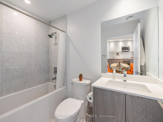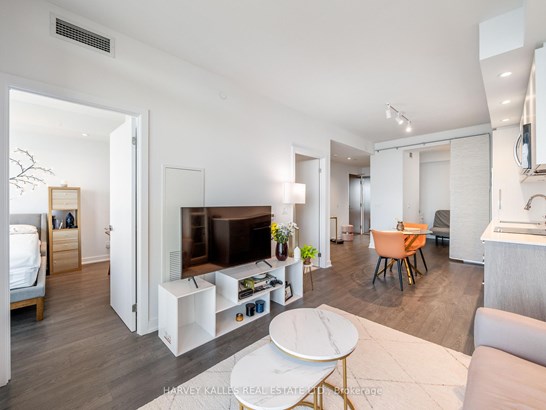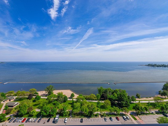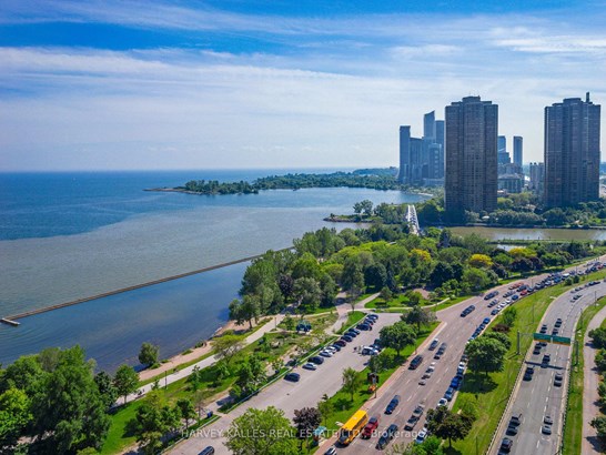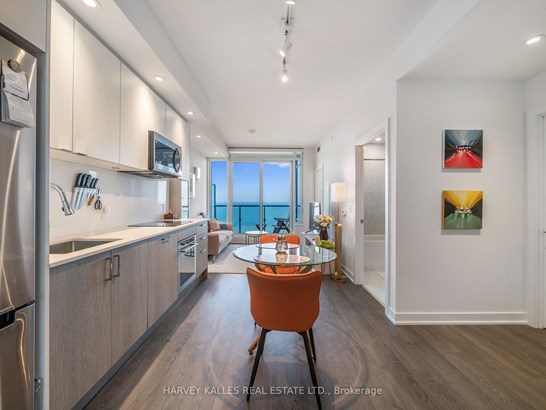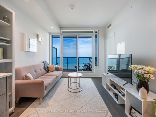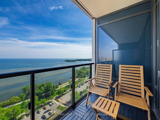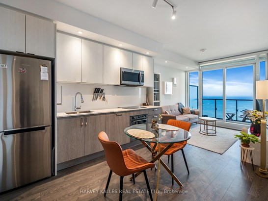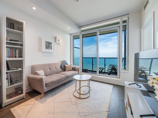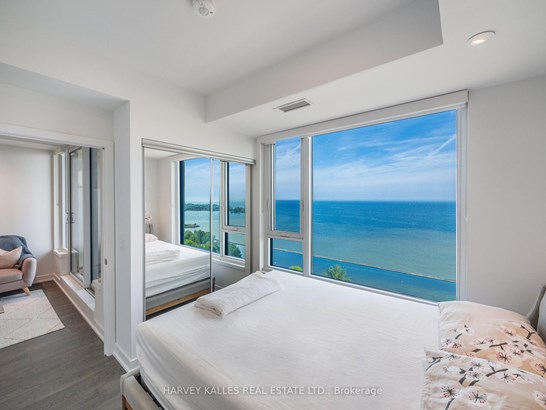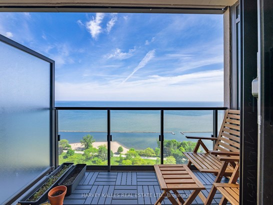 xperience Luxury living at Mirabella with Panoramic forever views of Lake Ontario, Toronto Skyline (CN Tower) and Humber Views. Enjoy these breathtaking views from every room, as well as the spectacular sunrise from the east on your private balcony. This 1 plus den (used as second bedroom) plus 2 full baths has everything to offer. The primary bedroom features a spa-like ensuite with a large contemporary mirrored closet, reflecting the beautiful lake views. The den is spacious enough to be used as a second bedroom and is separated from the main living space by a room divider. The unit boasts 9-foot ceilings with floor-to-ceiling windows, creating an open and airy feel. The Modern kitchen with two tone cabinets and stainless steel appliances, along with the undermount lighting and pot lights, add a touch of luxury. This building offers state-of-the-art amenities, including an indoor pool with unobstructed lake views and an exercise room overlooking High Park. If you love Nature this is the place to call home. It is conveniently located just a short walk away from High Park and the Sunnyside Boardwalk. Don't miss the opportunity to own a unit in this desirable location along the Lake Shore. Close to Gardiner Express and QEW and public transit.Extras: Upgraded stainless steel appliances including a refrigerator, stove, dishwasher, and microwave/hood range. Also included are a stacked washer and dryer, blinds, 1 PARKING spot