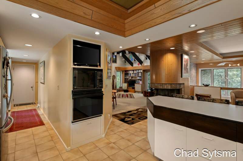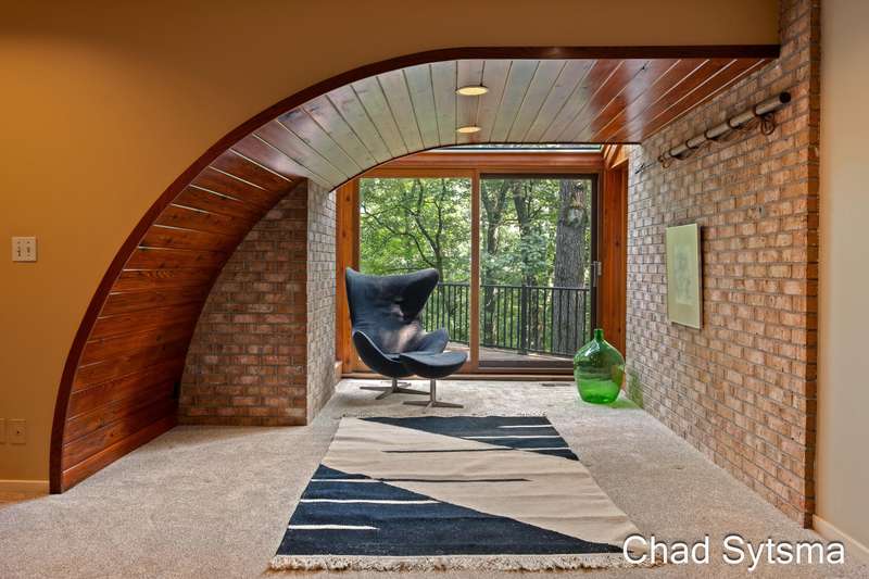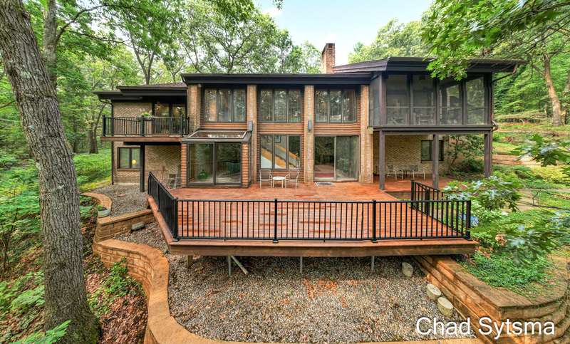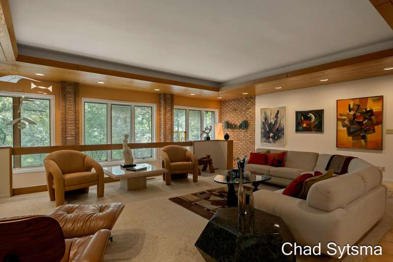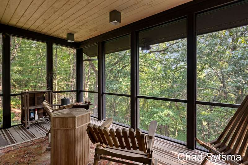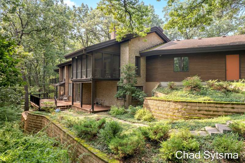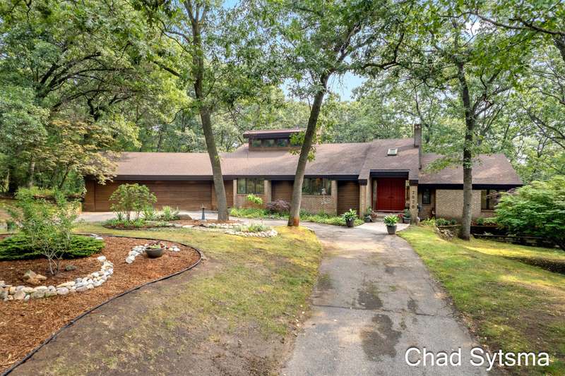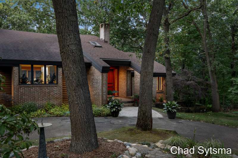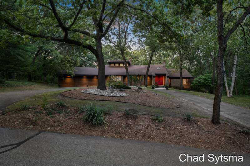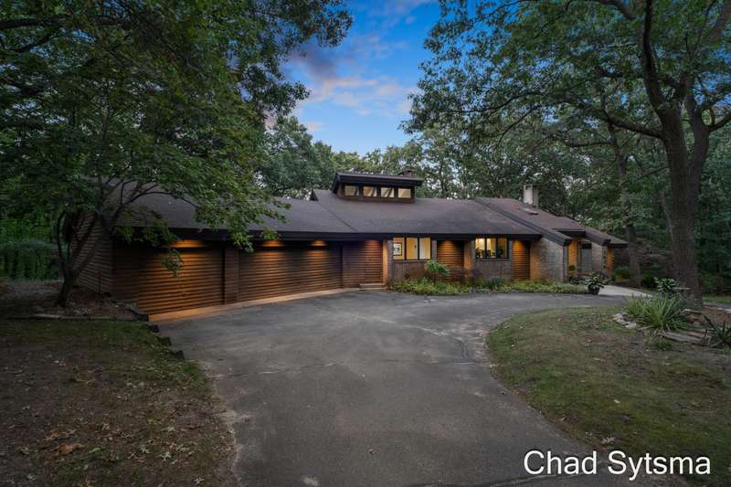 Design intent, sightlines and a spectacular natural setting come together in this rare Forest Hills property. Built to a high architectural standard, this singular home was custom designed to showcase the owner's art collection and furniture. The result is a livable gallery with curated lighting, exquisite woodwork and curvilinear architectural elements. Perched on a ridge in the treetops, the residence celebrates Frank Lloyd Wright both inside and out. Adding to its allure, the 11-acre property directly abuts a forest preserve with walking trails, extending your backyard into miles of natural beauty. This superbly maintained home balances comfort for everyday living with refined spaces for entertaining. Flexible floorplan, thoughtful sightlines and superb craftsmanship make it as practical as it is inspiring. This is a rare sanctuary in a sublime location, minutes from shopping, dining and downtown Grand Rapids.