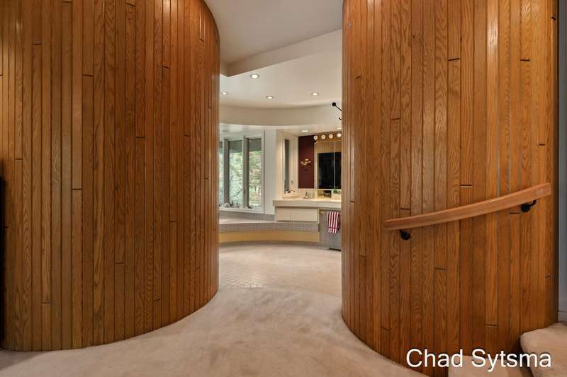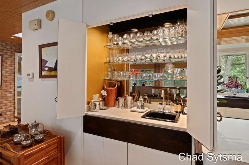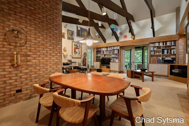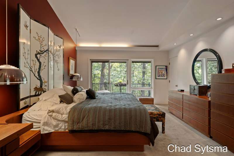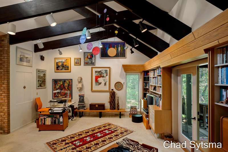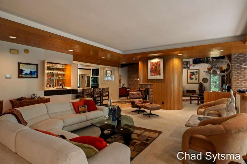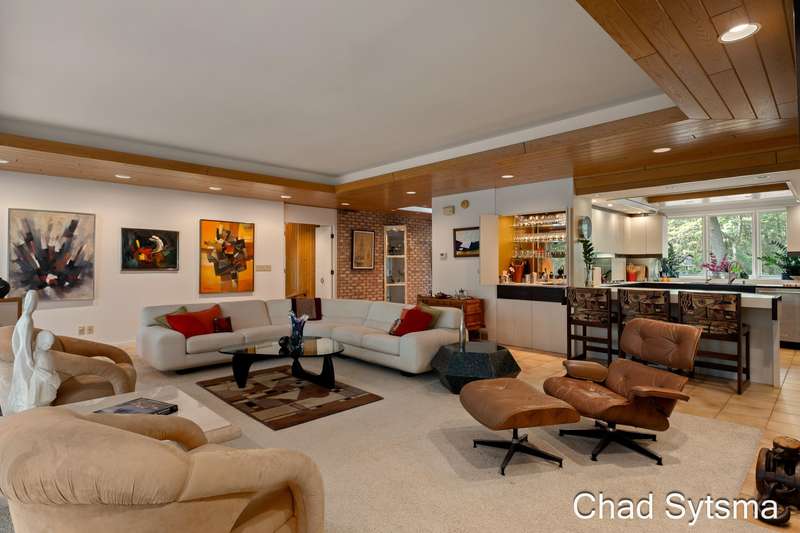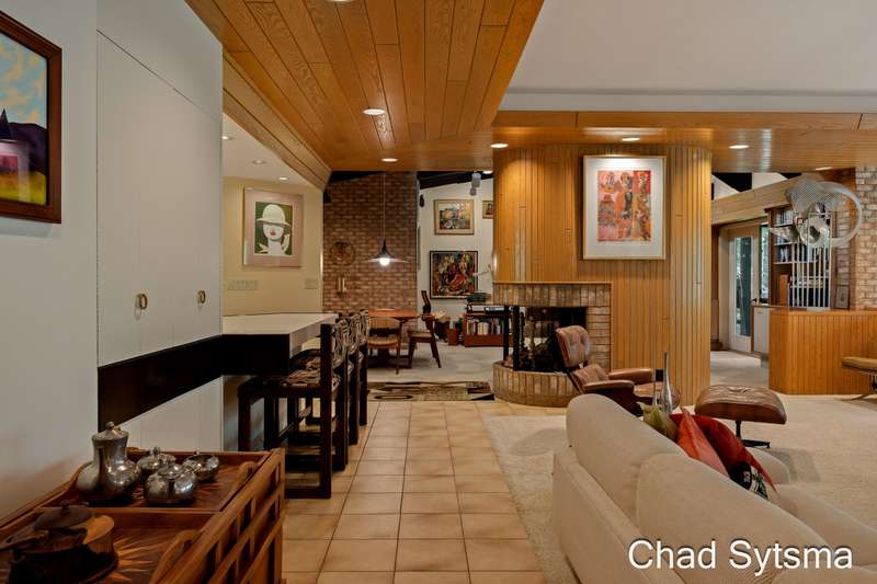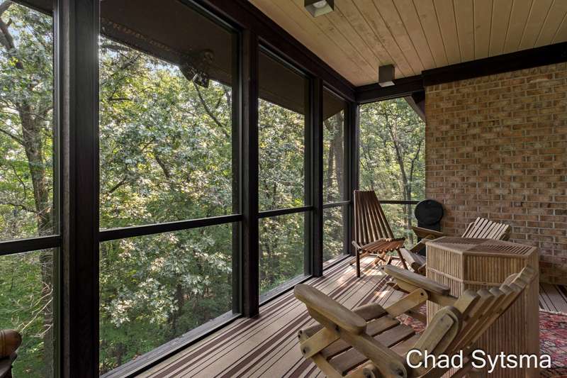 Design intent, sightlines and a spectacular natural setting come together in this rare Forest Hills property. Built to a high architectural standard, this singular home was custom designed to showcase the owner's art collection and furniture. The result is a livable gallery with curated lighting, exquisite woodwork and curvilinear architectural elements. Perched on a ridge in the treetops, the residence celebrates Frank Lloyd Wright both inside and out. Adding to its allure, the 11-acre property directly abuts a forest preserve with walking trails, extending your backyard into miles of natural beauty. This superbly maintained home balances comfort for everyday living with refined spaces for entertaining. Flexible floorplan, thoughtful sightlines and superb craftsmanship make it as practical as it is inspiring. This is a rare sanctuary in a sublime location, minutes from shopping, dining and downtown Grand Rapids.