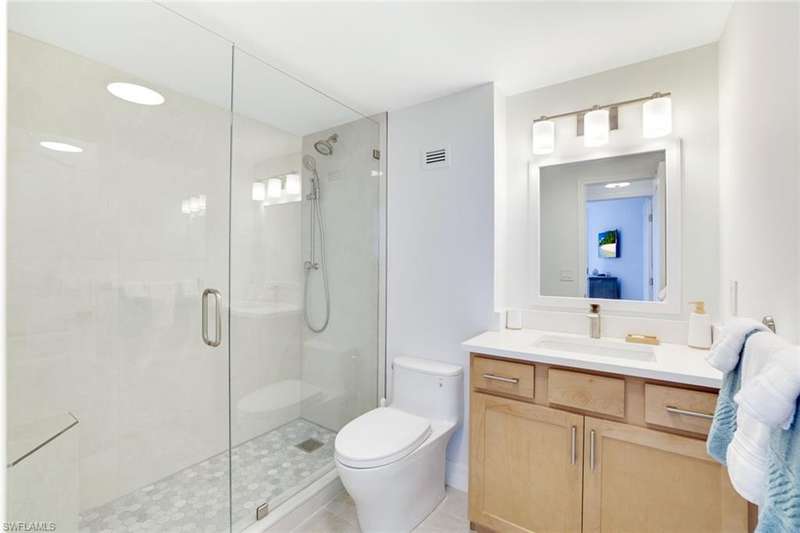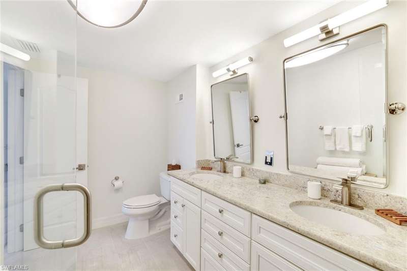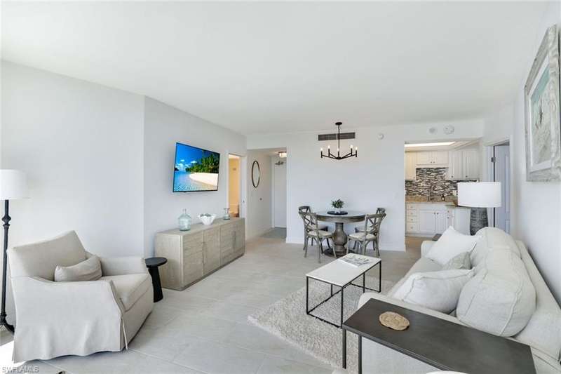 Experience resort-style living at its finest in this stunning beachfront condominium located directly on the powdered sugar sands of the Gulf of Mexico on beautiful Marco Island. Offering unobstructed western views of the turquoise waters and breathtaking sunsets, this residence is a true slice of Florida paradise. Step onto your private balcony and take in the expansive views through sleek glass railings, providing a clear, uninterrupted panorama down the entire beachfront, lush green space, and sparkling pool below next to Residents Beach offering rarely available views all the way down the beach to the soutnern tip at Cape Marco. Inside, this spacious two-bedroom, two-bath residence has been fully updated to blend coastal luxury with modern comfort. The kitchen features white cabinetry, granite countertops, and stainless steel appliances, while both bathrooms showcase frameless glass shower enclosures, contemporary tilework, and elegant vanities. The building offers pet-friendl