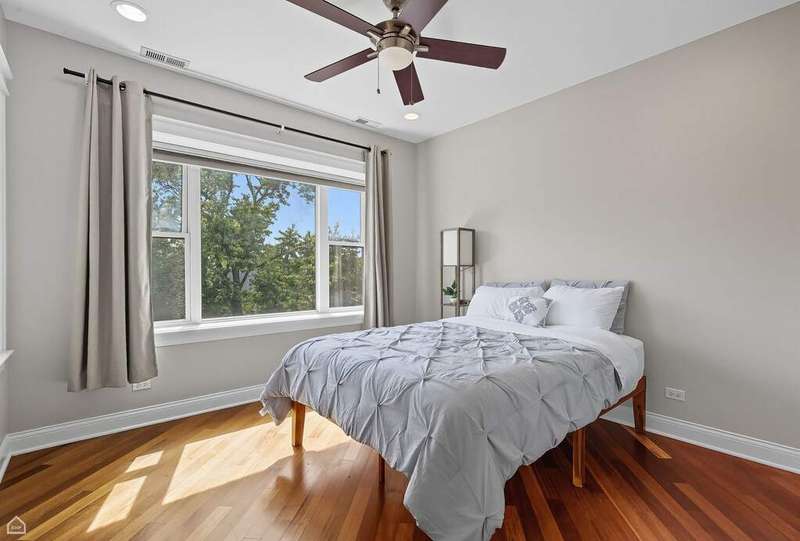 Move in ready penthouse in the heart of Logan Square! This bright and inviting 2 bedroom home sits on a quiet, tree-lined street and is flooded with natural light throughout. Hardwood floors, detailed millwork, and a skylight add charm and character to the spacious living/dining area. The open concept kitchen features stainless steel appliances, including a new fridge/freezer (2025) and newer oven (2022), granite countertops, and an oversized breakfast bar, perfect for entertaining. Step right out to the large covered balcony, an ideal spot to relax and enjoy the outdoors. The sun-drenched, south-facing primary bedroom offers a fully organized closet, while the generous second bedroom makes a perfect guest room, home office, or gym. The stylish bathroom boasts a custom sink and a shower/tub combo. Additional highlights include in-unit laundry with a newer washer/dryer (2022), and new AC (2025), extra storage, and a dedicated bike room. Street parking is plentiful and easy. All this in an unbeatable location, just a short stroll to Bucktown and Wicker Park's trendy shops, dining, and nightlife, as well as the 606 Trail, Lucy Flower Park, and the California Blue Line.