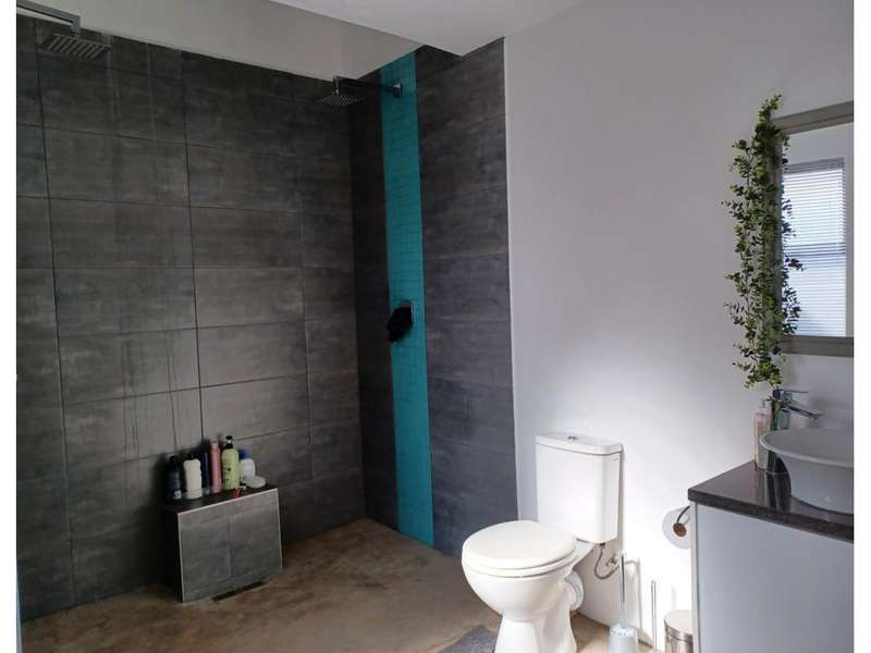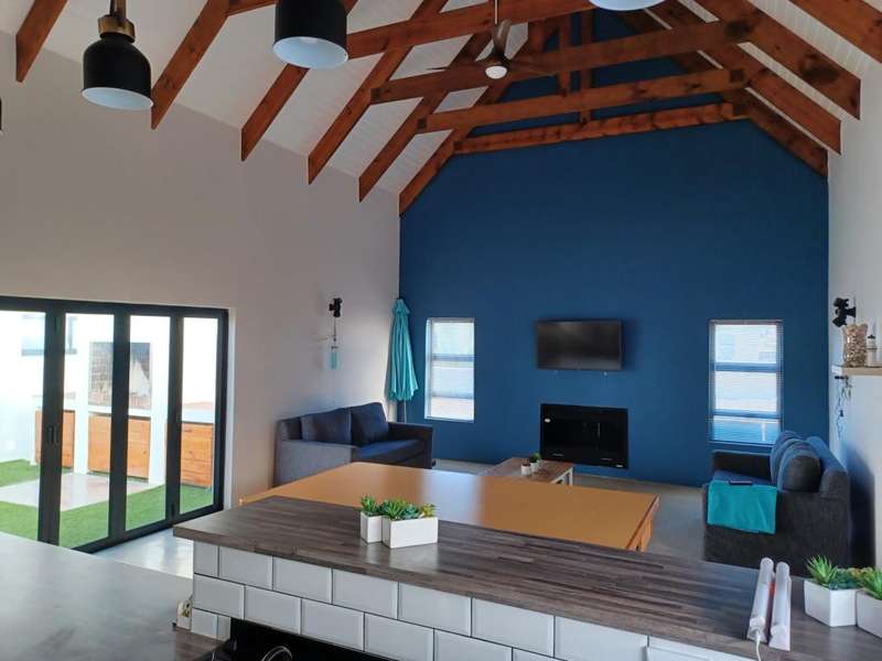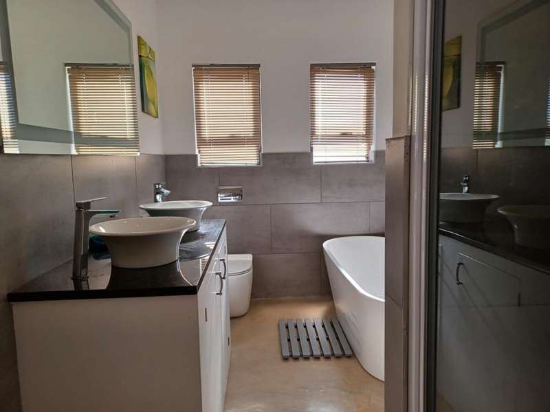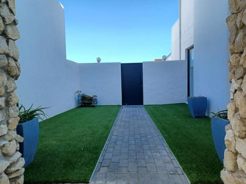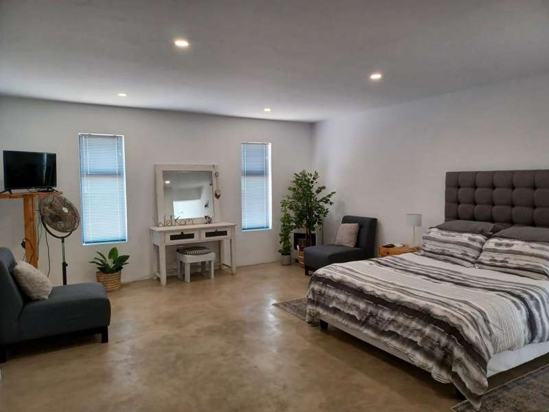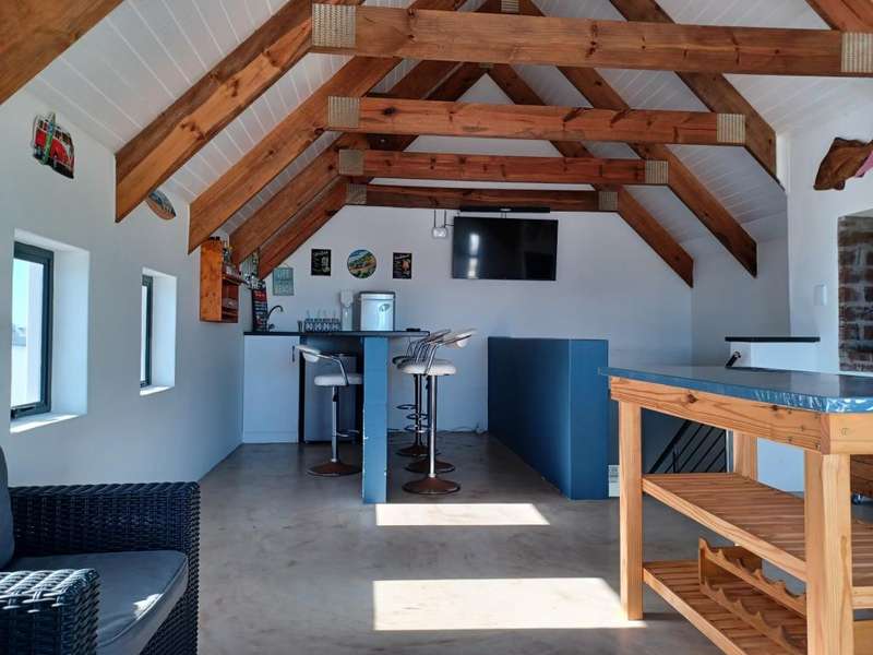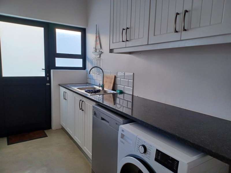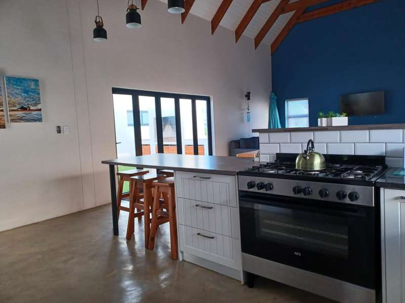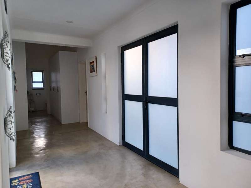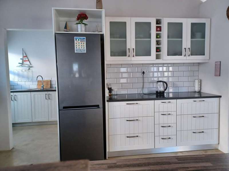 HUGE House in Dwarskersbos An upmarket 4-bedroom house within walking distance to the beach, is situated in the popular Kersbosstrand in Dwarskersbos. Entrance to the property is though an 1.8m enclosed courtyard for privacy and double security. Inside is an evergreen lawn with paved walk-way, stone-clad columns and a wood-slatted canopy. Access to the home is through a double front door into an entrance hall. Left to the bedrooms, and right to the guest loo and the open plan living design. Straight-ahead leads you through a second double door onto an open-air outside entertainment area that offers a jacuzzi, evergreen lawn, built-n braai and mingling space. An extra-large backyard allows for running space, sports or further property extensions. The home is modern in fittings and trimmings. The spacious double volume open plan living fits the kitchen, dining and lounge with a fire-place. You get a functional kitchen, with breakfast seating, and enough cupboard space. The granite tops extend to the scullery and laundry further back with space for a washing machine and a dish washer, and more cupboards. The back-door leads to a paved side and wash trough. There is an upstairs entertainment room which house a built-in braai, lounge and a fitted bar. It boasts a balcony and sea views. All 4 bedrooms have en-suites and sliding-door built-in cupboards. There are 2 extra-large main bedrooms and 2 sizeable guest bedrooms. Geysers are all gas-lit. The flooring of the house is cement-screed throughout. You access the automated double garage from the entrance hall. There are plans for a double carport in front of the garage. The house is walled on both sides and the back. It is worth a viewing and caters to large families and entertainers! Please contact me to set-up an appointment.