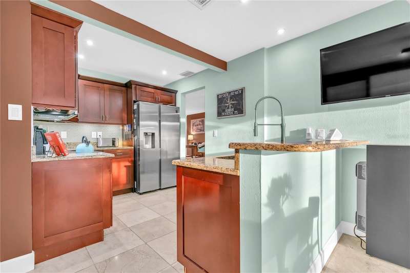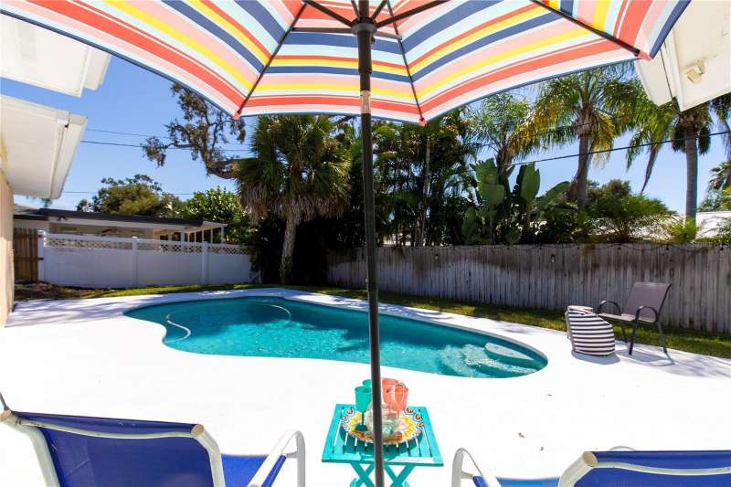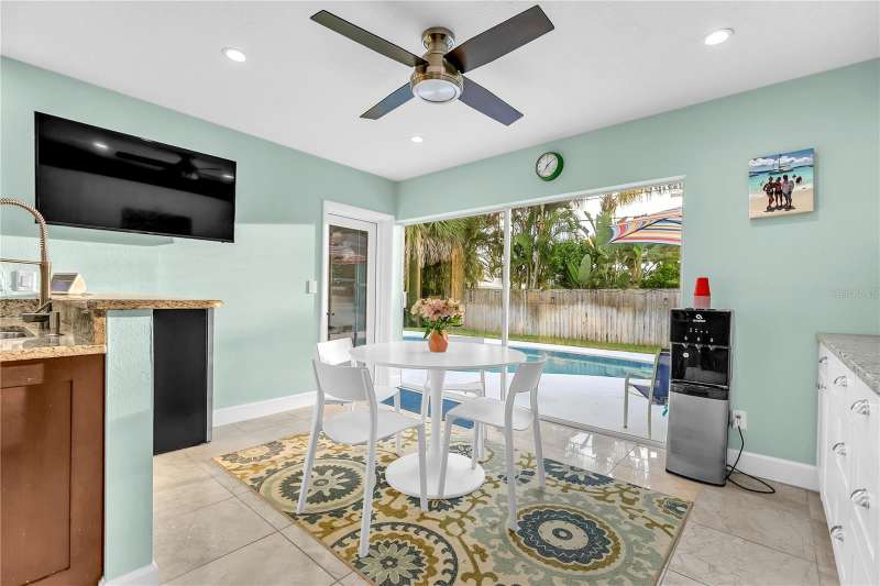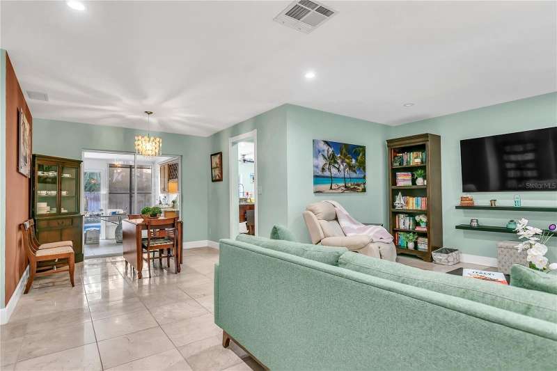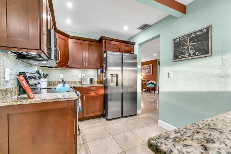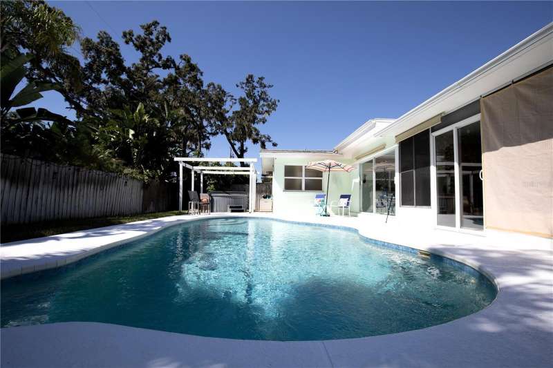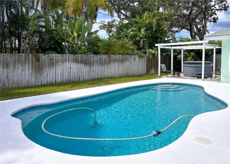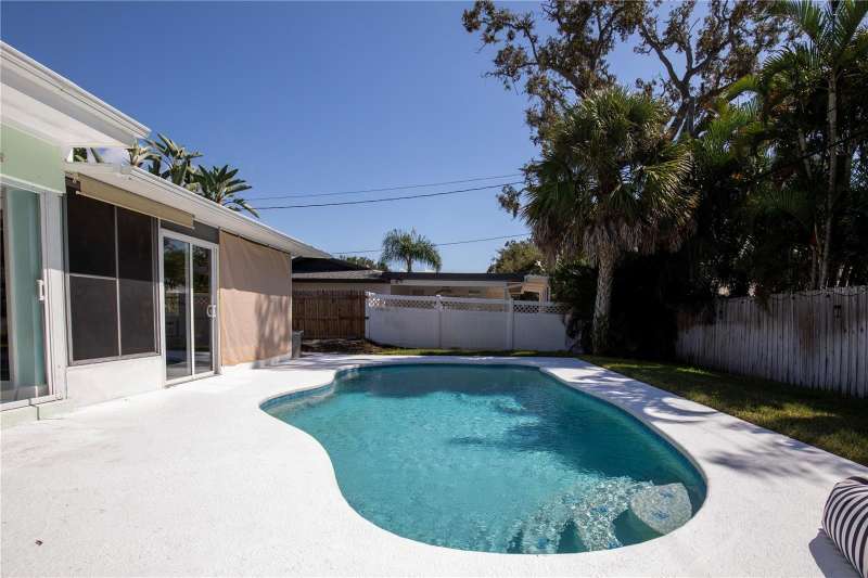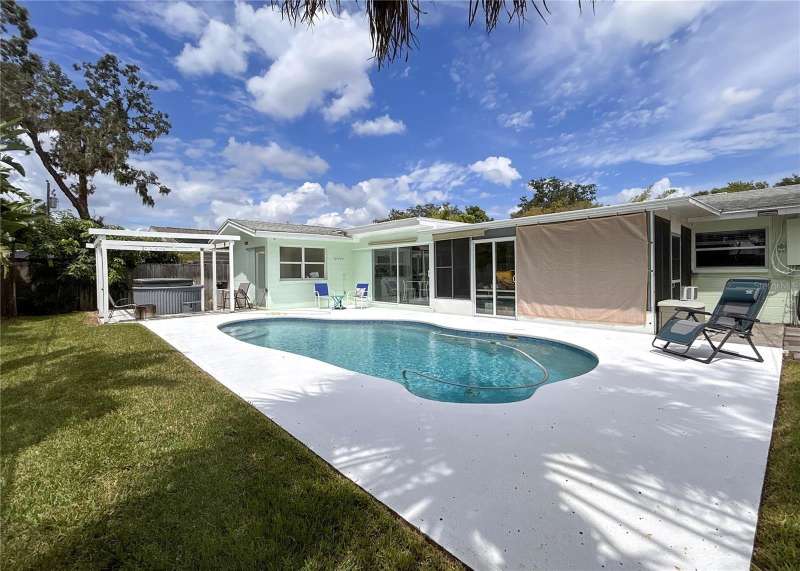 Under contract-accepting backup offers. Welcome to your next chapter in Dunedin’s Fairway Estates— Appraised within the last 30 days at $660,000, offers instant equity and unmatched value in today’s market, this updated, move-in-ready home embodies comfort, convenience, and Florida charm. Nestled in a non-flood / non-evacuation zone (Flood Zone X), it offers peace of mind alongside its prime location—just minutes from the beach, shops, restaurants, and the Dunedin Golf Club. Hop on your golf cart and explore the Art Center, quaint downtown, or cruise the neighborhood—everything’s close and accessible. Inside, you’ll find a fresh, thoughtfully renovated space featuring granite countertops, a sleek eat-in kitchen with ample storage, and stylish bathrooms. The split layout is ideal—low-maintenance yet spacious enough for hosting friends or relaxing with family. Picture mornings at the kitchen counter, coffee in hand, with soft-close drawers and stainless appliances at your fingertips. Out front, the porch and lush yard (hello, clumping bamboo!) create a peaceful welcome. Out back, the fully fenced yard is perfect for pets or privacy, and the saltwater pool and hot tub make entertaining effortless. You can step out to the pool from the kitchen, lanai, or primary bedroom—talk about flow. The 216 square foot air-conditioned lanai - not included in the total square footage - complete with a wet bar and built-in fridge, is ready for your next get-together or a quiet night in. With updates like a newer HVAC condenser, new water heater, updated windows, and garage door, the practical perks are covered too. This isn’t just a house—it’s a laid-back, well-loved home in one of Dunedin’s most desirable neighborhoods.