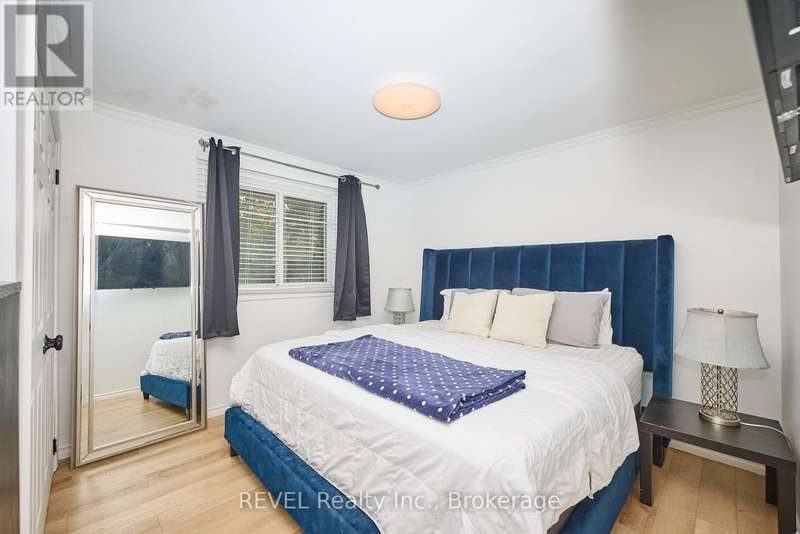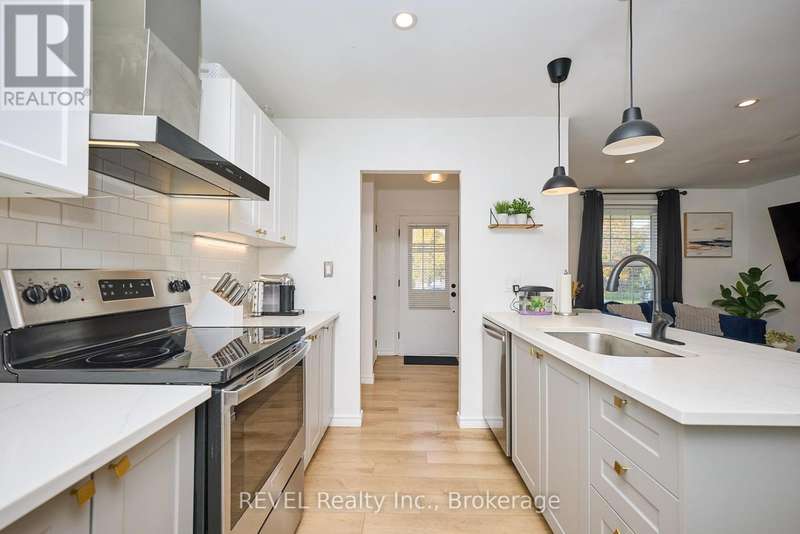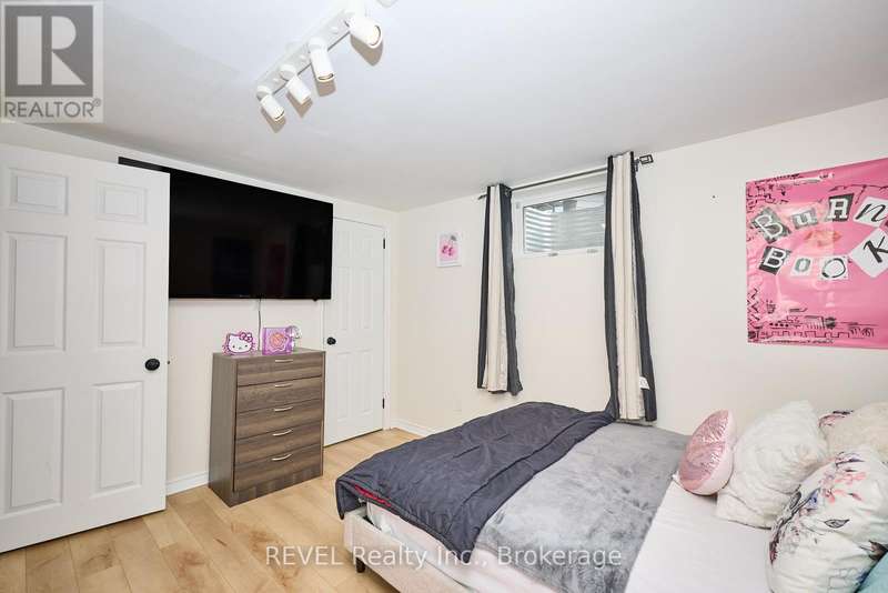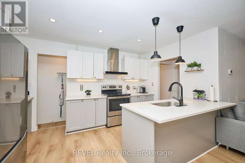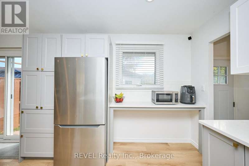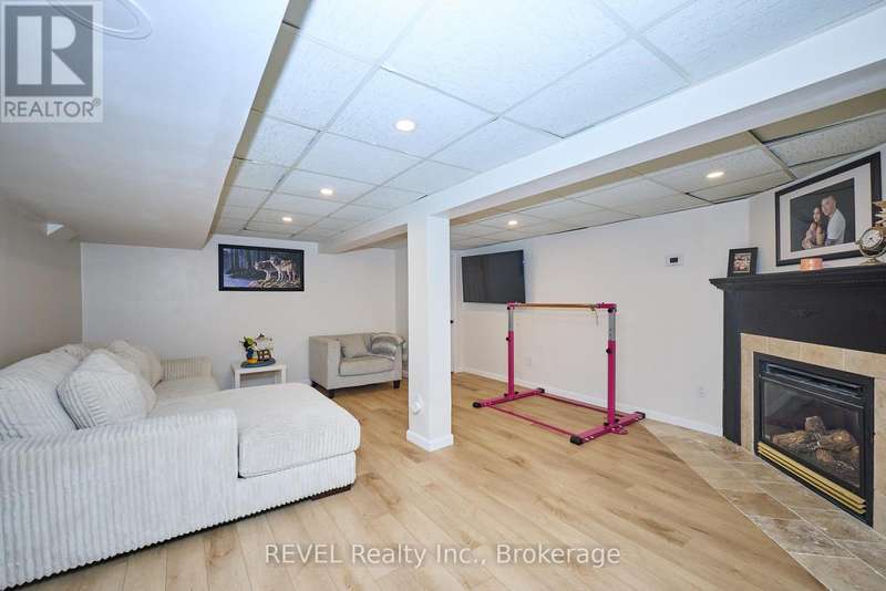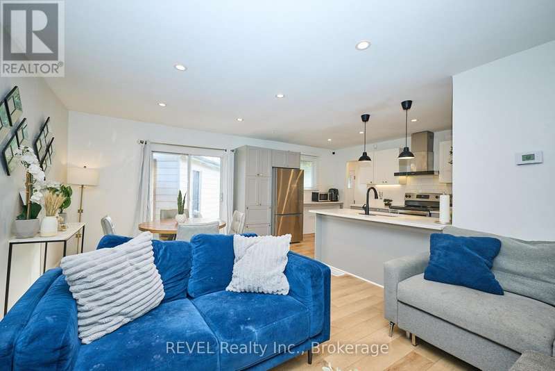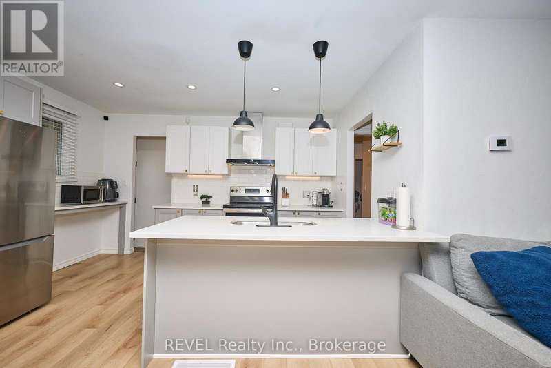 Welcome to this fully updated bungalow located in a quiet family friendly desirable north end location on a quiet dead end Crescent, close to A+ schools, highways, Niagara College, YMCA, and more! This fully updated bungalow is move in ready, with just under 2000 sq.ft of total finished living space top to bottom, featuring an open concept design and modern contemporary décor. Modern custom kitchen with new shaker style cabinets, quartz counters, stainless steel appliances, classic subway tile backsplash with island for bonus seating. There is a family sized living room/dining combo with patio doors leading you to the large rear yard with interlock brick patio to enjoy some peace & privacy. Three spacious bedrooms on the main floor with a custom main level bath with custom ceramic tub surround. The lower level features a separate entrance from the backyard for in-law suite, or extra income possibilities if desired.. Large Recroom to fit all the families needs, gas fireplace, a 4th bedroom and a second 4 piece bath with laundry. Deep oversized detached garage with hydro, this bungalow has it all at this price point! Other features and updates include; Garage roof (2025) Double wide Asphalt driveway (2023) Luxury vinyl flooring throughout both levels (2023) Roof/Facia/Soffit/Eaves (2021) Furnace/A/C, & Windows all replaced in (2021). 200 amp service, hydro in garage. All this on a large reverse pie shape Lot with truly nothing to do but move in and enjoy! (id:7434)