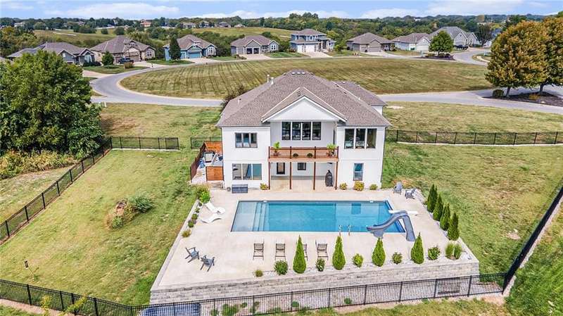 This one has it allspace, style, and an entertainers dream backyard. With 4 bedrooms, 3 full bathrooms, and approximately 3,400 finished square feet, this reverse 1.5-story home offers an open concept layout and thoughtful upgrades throughout.Inside, the heart of the home features a spacious kitchen that flows seamlessly into the dining space and family room. A stone fireplace flanked by custom built-ins anchors the living area, while the kitchen and dining room offer direct access to a covered deckperfect for morning coffee or evening relaxation. The primary suite is a retreat in itself, complete with an oversized bathroom boasting a walk-in shower, soaking tub, and a massive closet that conveniently connects to the laundry room. A second bedroom and full bathroom are also located on the main level, making the layout ideal for guests or a home office. The lower level is designed for gathering, with a huge family room/recreation area and walkout access to the backyard. Two generously sized bedrooms and a full bathroom are tucked downstairs, along with two separate unfinished spacesone thats ready to be transformed into a home office or fitness room, and another with endless possibilities for storage or finishing out to your needs. Step outside and discover your private resort. The heated in-ground pool is complete with a diving board, water slide, and plenty of room to entertain. The sellers spared no detail with custom concrete work, lush landscaping, and a fenced yard. To top it off, they purchased additional lot space to the north and south, creating an oversized lot with added privacy and room to spread out. This homes location is hard to beatenjoy access to Piper Lake, fireworks views on the 4th of July, award-winning Piper Schools, and quick highway access. Golf enthusiasts will love being just a short golf cart ride away from Dubs Dread Golf Course. This home truly checks every boxinside and out.