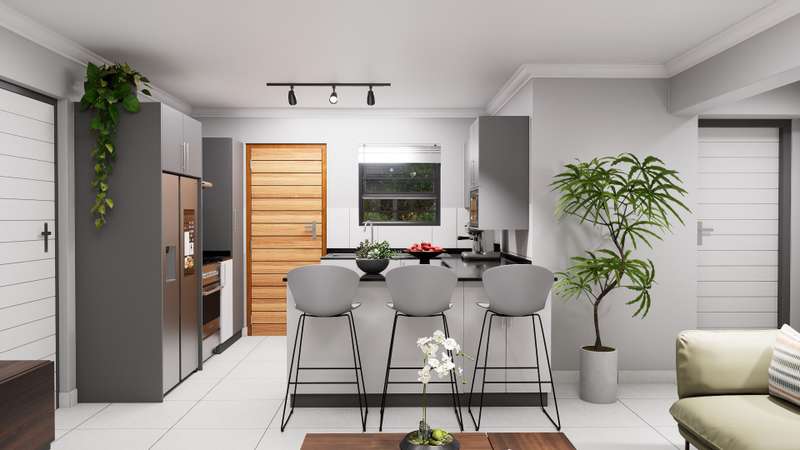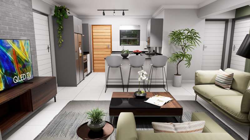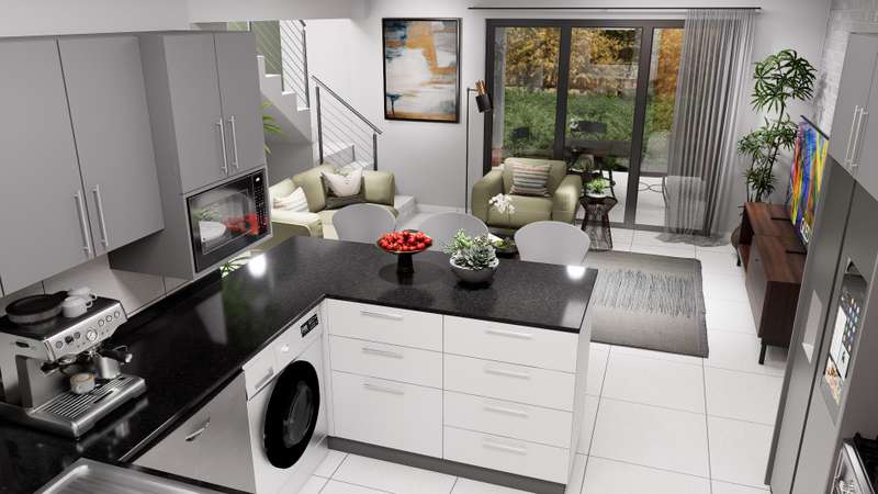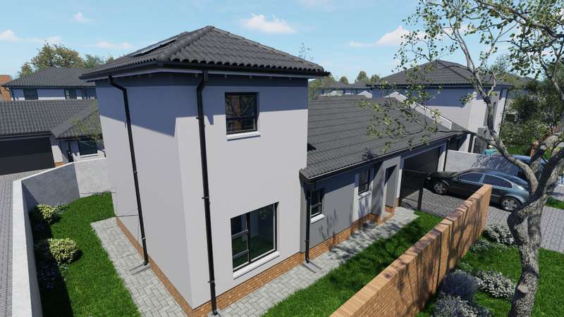 Discover the perfect balance of space, comfort, and contemporary style in this full-title home, set within a secure, family-focused estate. Nestled on a 357 sqm stand, this semi-double-storey residence offers 103 sqm of thoughtfully designed living space. Smart Design, Comfort & Privacy Upstairs sanctuary: A luxurious main bedroom with a full ensuite bathroom. Downstairs living: Two spacious bedrooms sharing a bathroom, ensuring convenience and comfort for the whole family. Everyday Living Made Easy Open-plan lounge flowing seamlessly onto a covered patio with a built-in braai – perfect for year-round entertaining. Stylish kitchen featuring Quartz countertops, breakfast counter and a premium 4-burner gas stove, designed to inspire effortless cooking. Practical Features to Suit Your Lifestyle Choice of double garage or double carport. 1.8m high boundary wall with pedestrian gate for added privacy and security. Family-Friendly Estate Living Landscaped communal garden spaces for relaxation. Dedicated children’s play area for carefree outdoor fun. Energy-Efficient & Cost-Inclusive 200L solar flat panel split system for energy-efficient hot water. No hidden costs – the price includes: NHBRC registration. VAT. Attorney & admin fees. Interim bond interest. Water & electricity connection fees & deposits. Finishes Tailored to Your Taste Select from a variety of finishes to make your home uniquely yours, including: Floor tiles. Kitchen cupboards, splashbacks & countertops. Built-in bedroom cupboards. Bathroom wall tiles & vanities. Exciting progress on site! ? Estate roads are now complete, making access smooth and convenient. Inside the show house, tiling has been completed, and bedroom cupboards are fitted. Work is currently underway on the kitchen installation, bringing us closer to the final finish. Stay tuned for more updates as we move towards showcasing the completed unit!