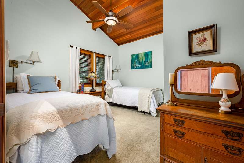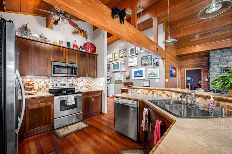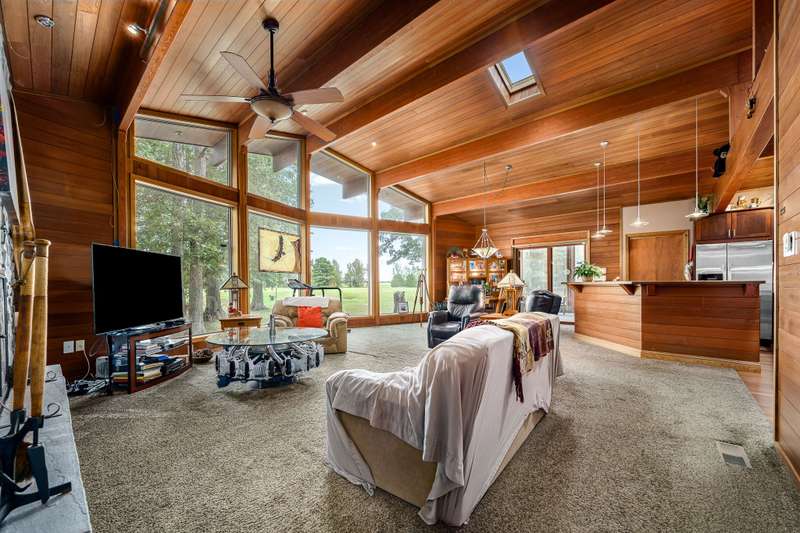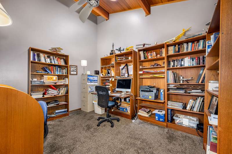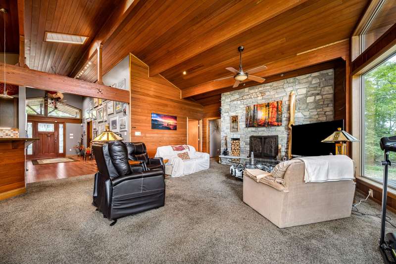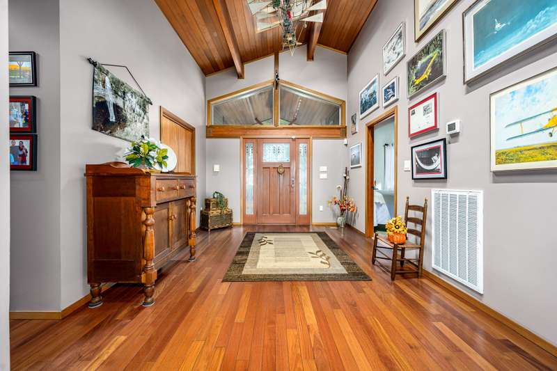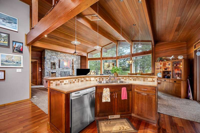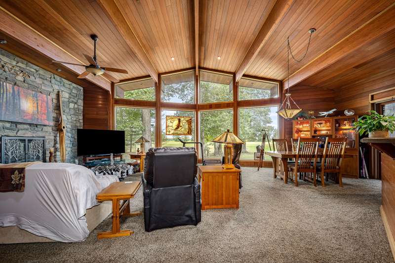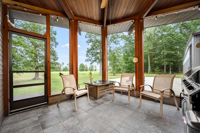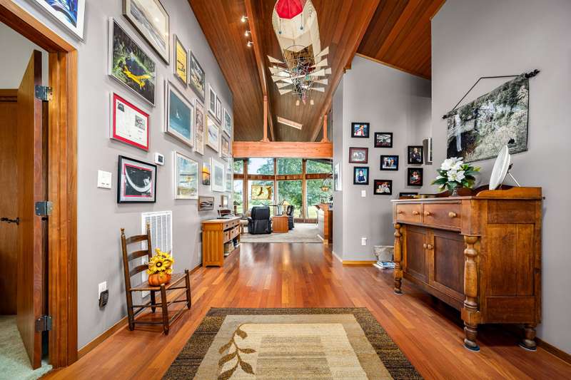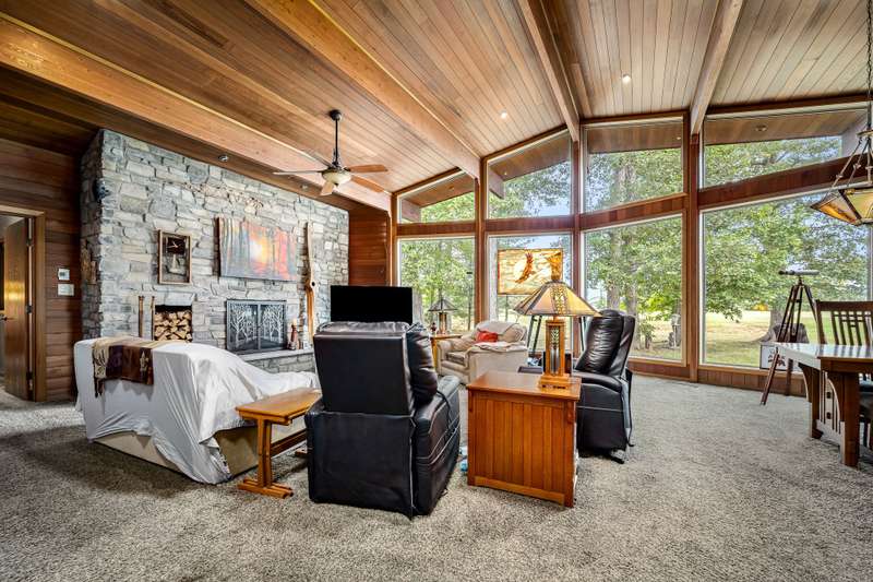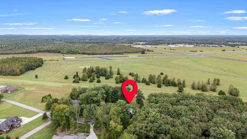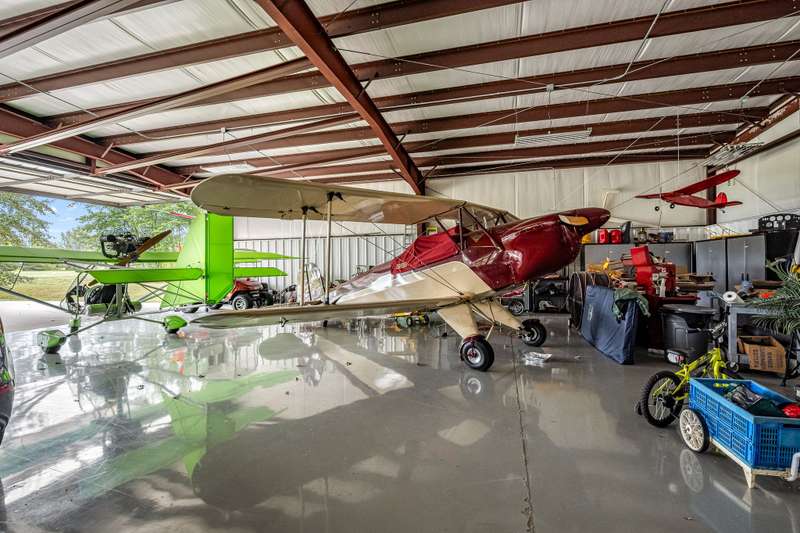 IDEAL FOR AVIATION ENTHUSIASTS, this home sits on 1.34 acres with breathtaking views of the grass strip KHTA 9/27 from all main living areas. Enter the custom built home through a skylighted foyer and into soaring red cedar vaulted ceilings and beams by Lindal Homes. A rugged stone fireplace anchors the open Living Room and Kitchen/Dining area. Kitchen features a wraparound bar, perfect for entertaining. From the Kitchen step onto the covered screened porch overlooking the grass strip and hangar apron which serves as a perfect place for entertaining friends and watching the sunset or an impromptu air show! The primary bedroom suite offers vaulted ceiling w/skylight, while the luxurious bath boasts striking ruby red wash bowls brought from Japan, a soaking tub, tiled shower and heated tiled floors. Home also has a large office with walk-in closet for storage. Two guest bedrooms, each with their own bath ensure comfort and privacy. Outside you'll find a massive 50' x 60' hangar w/12' clearance. Hangar also serves as a grage for vehicles with front entry garage door.