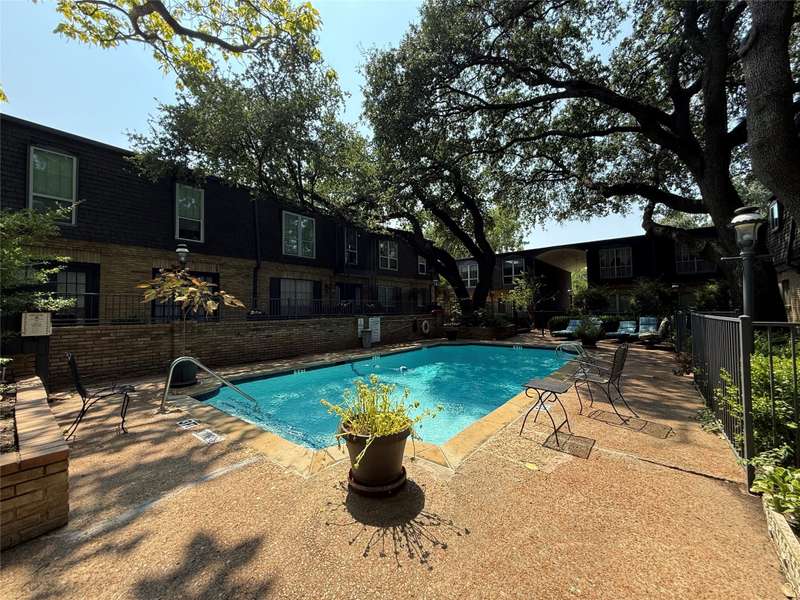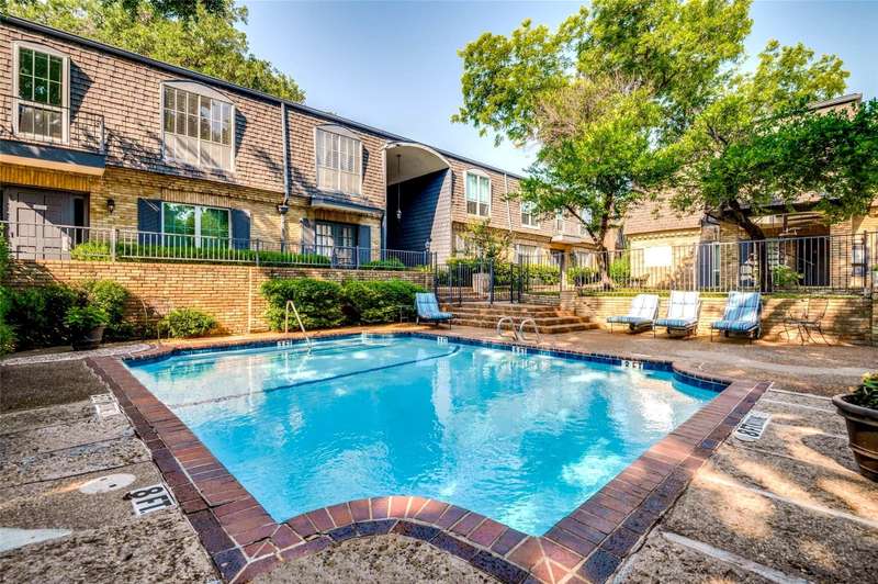 This beautifully refreshed first-floor condo puts you in the heart of it all, just minutes from Uptown, Oak Lawn, Love Field, and the Dallas North Tollway. Bright, open living and dining spaces are filled with natural light and a neutral palette that complements any style. The kitchen blends style and function with granite counters, subway tile backsplash, and stainless steel Frigidaire appliances including a 5-burner range, refrigerator with ice maker, microwave, and dishwasher. A flexible study nook adapts to a home office, reading spot, or extra dining area. The spacious bedroom overlooks landscaped courtyards and a peaceful gazebo and features a walk-in closet and full-size stackable washer and dryer. The inviting bathroom and new HVAC air handler combine character with year-round comfort and efficiency.. One of the rare highlights at this price is a private fenced patio with a built-in pet door, perfect for morning coffee, evening entertaining, or pets. Low HOA dues of $456 per month cover electric, water, trash, and exterior maintenance. Residents enjoy two sparkling pools, manicured courtyards, and plenty of guest parking. With modern updates, valuable extras, and an unbeatable location near the citys dining, nightlife, and entertainment hubs, this condo offers style, convenience, and effortless Dallas living.