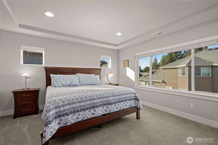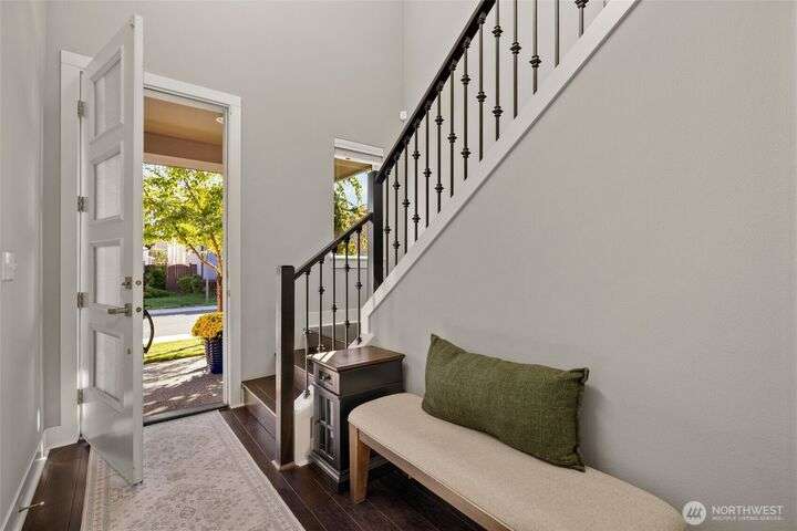 Built in 2018, this contemporary Ryan Park home welcomes you with radiant natural light and rich espresso-toned hardwoods that sweep across the open main floor. A sleek kitchen with quartz countertops, full-height tile backsplash, and pantry flows effortlessly into the dining area and fenced backyard—an inviting setting for al fresco entertaining. The living room’s stacked-stone fireplace forms a warm centerpiece, while upstairs, a spacious bonus room and tranquil primary suite offer everyday retreat. With over $65K in upgrades, the home showcases expanded hardwoods, backyard hardscaping, and an upgraded garage with epoxy floors and custom storage. Just steps from a community park and within the sought-after Northshore School District.