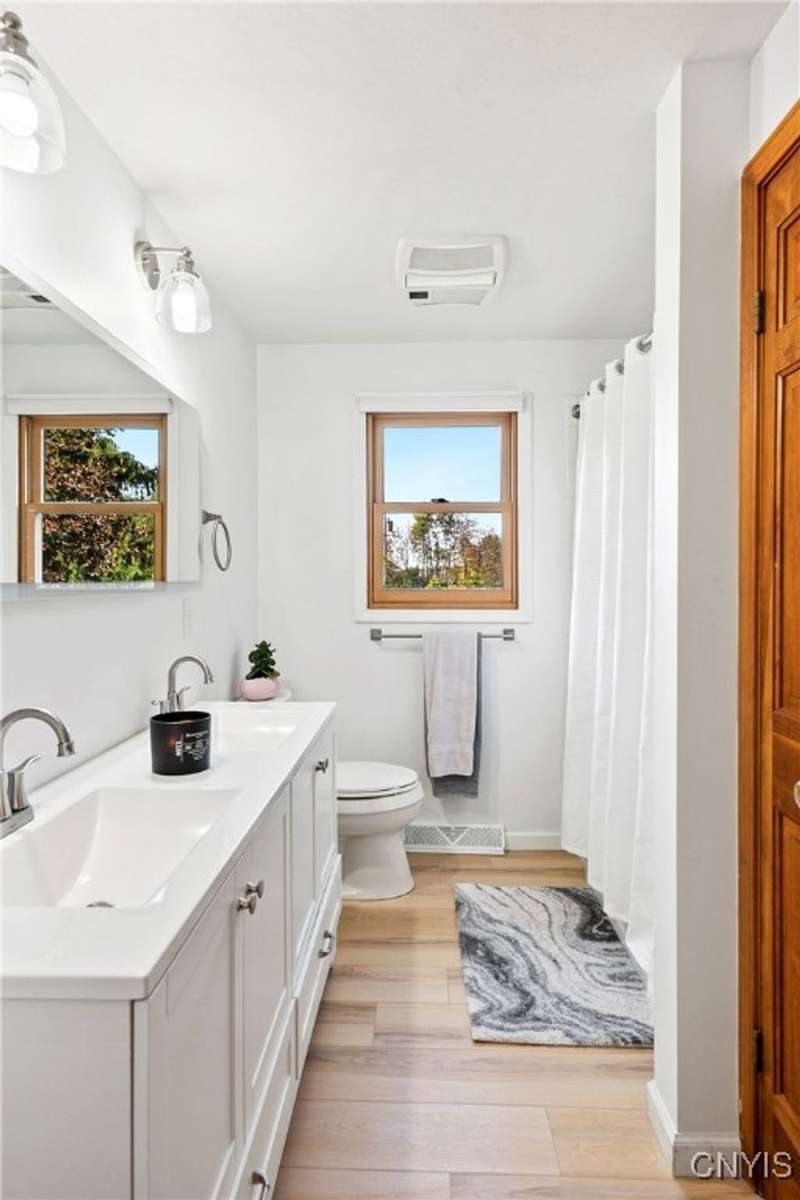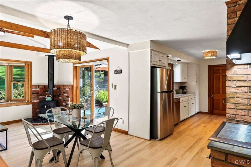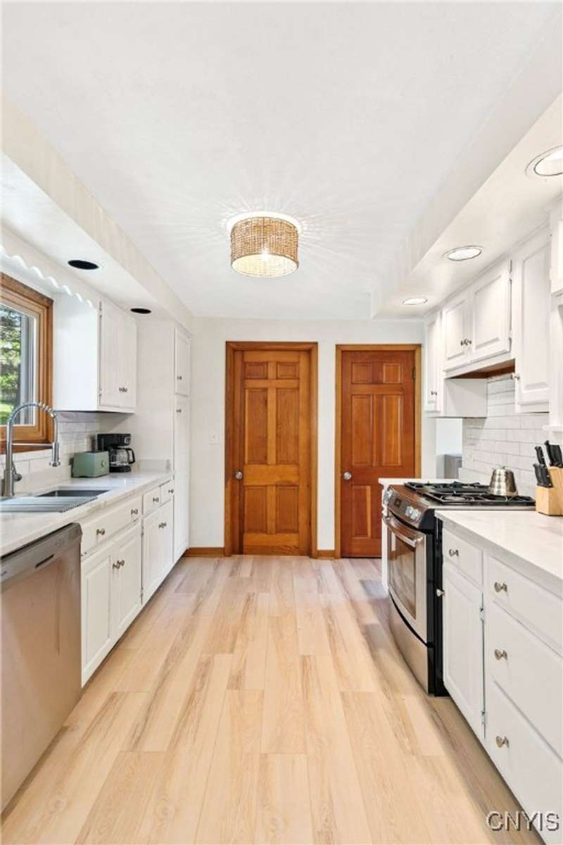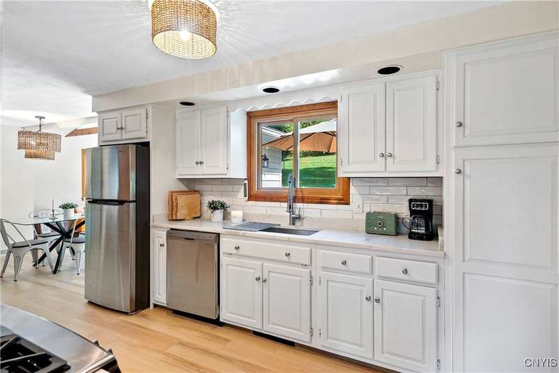 This well-maintained ranch home boasts charm, offering three bedrooms, and two full baths. The interior features hardwood floors, modern windows that let in ample natural light, a formal dining room, family room, and living room. The kitchen has been recently renovated with new countertops, a subway tiled backsplash, stainless steel appliances, and updated lighting. Step outside onto the lovely deck that overlooks the beautifully landscaped yard surrounded by trees. Additionally, enjoy 20 feet of lake access across the street on Locust Lane and convenient proximity to the village center. Located in the renowned Skaneateles School District, this home offers the perfect combination of comfort and convenience.