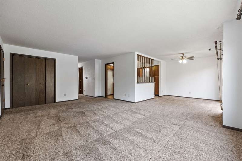This spacious 2 bed, 2 bath 2nd floor condo is priced right allowing you to choose your own updates to cosmetically make it your own. It features an open floor concept, walk around kitchen, with a dining space for entertaining along with a deck that has new floor covering. This unit also features it's own laundry room, appliances included. Not all the condos in this building offer extra storage, but this one does, with two large hall storage closets (located in front and back), and room for more in the garage. The furnace is 2 years old, central air conditioner (5yrs) and the roof is 5 years old. H.O.A. dues cover lawn maintenance, snow removal, water and garbage. Pets need to be approved by the H.O.A. No rentals. Great quiet location close to entertainment, shopping and restaurants. The seller is selling it "As Is", see attached addendum, and will provide a One Year, HSA Home Warranty to the new buyer's. Seller will pay to replace the window in one bedroom and the one in the living room, with a professional contractor, prior to closing.