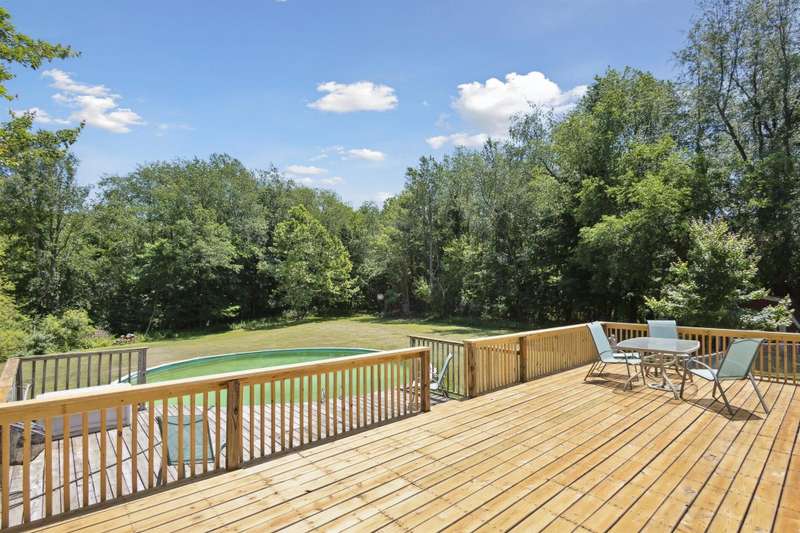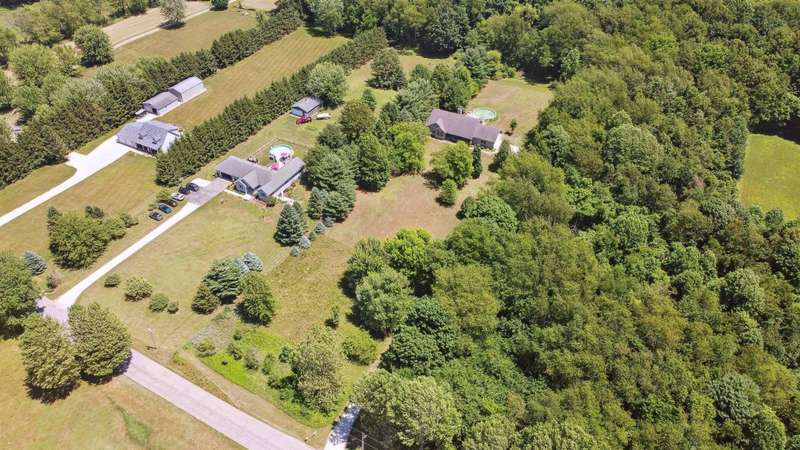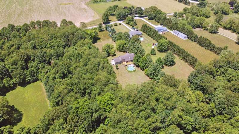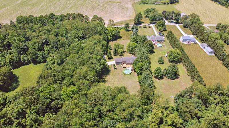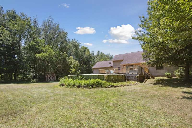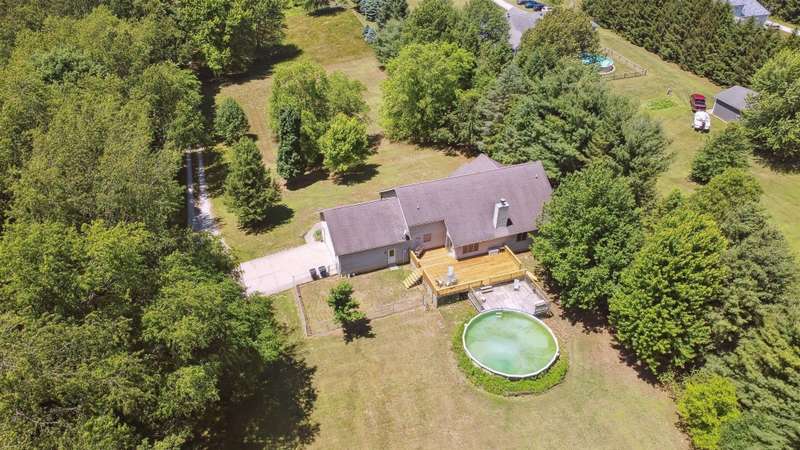Escape to peaceful country living with this beautifully maintained rural retreat, offering comfort, space, and scenic surroundings on 2.5 acres! This spacious 3-bedroom, 2 full and 2 half bath home has everything you need for everyday living and entertaining. Step inside to a welcoming great room featuring a cozy fireplace and soaring ceilings that open to a dining area and spacious kitchen. You'll love the added convenience of a second kitchen and den in the finished basement--perfect for multi-generational living, hosting guests, or creating your ideal hobby space. The primary bedroom offers a private ensuite, and all bedrooms are generously sized with ample closet space. Enjoy morning coffee on the inviting covered front porch or unwind by your above-ground pool, complete with plenty of room for outdoor seating and summer fun. The 2-car attached garage adds convenience, while the acreage provides privacy, space to roam, and endless potential for gardening, recreation, or even a small hobby farm.Whether you're relaxing indoors by the fireplace or enjoying nature outside under the stars, this home blends rural tranquility with modern comfort. It's a must-see for buyers seeking both space and serenity in a country setting--don't miss your chance to make this your forever home!