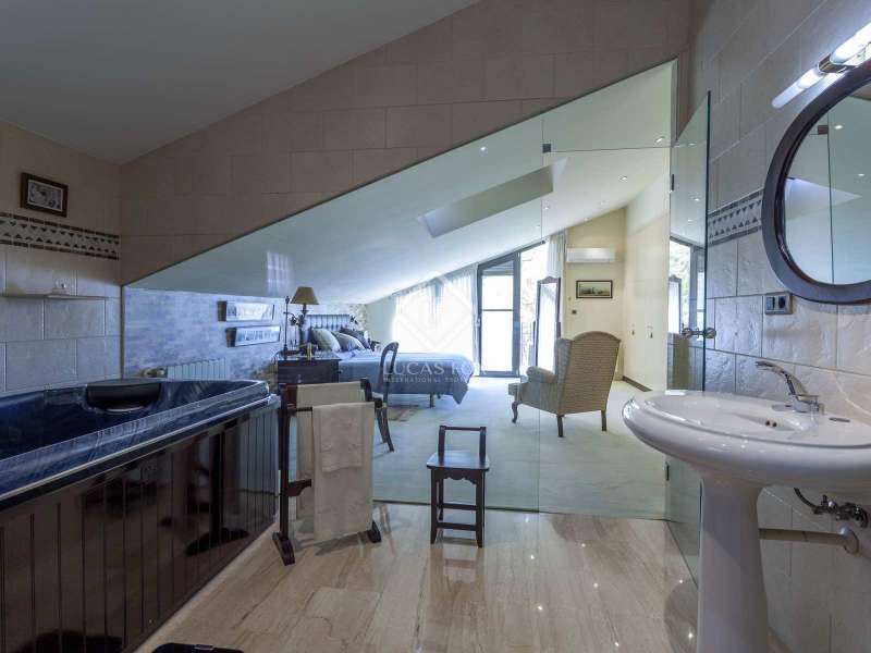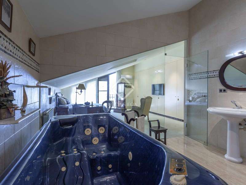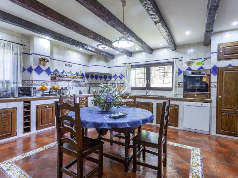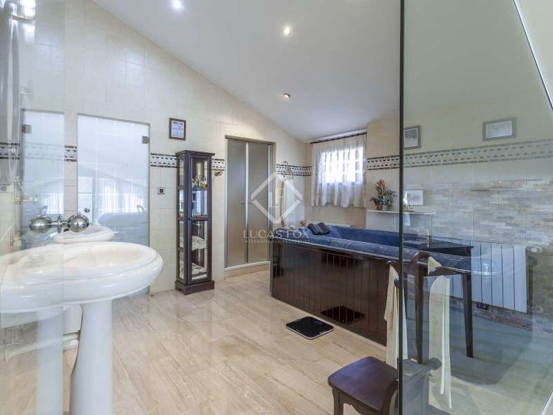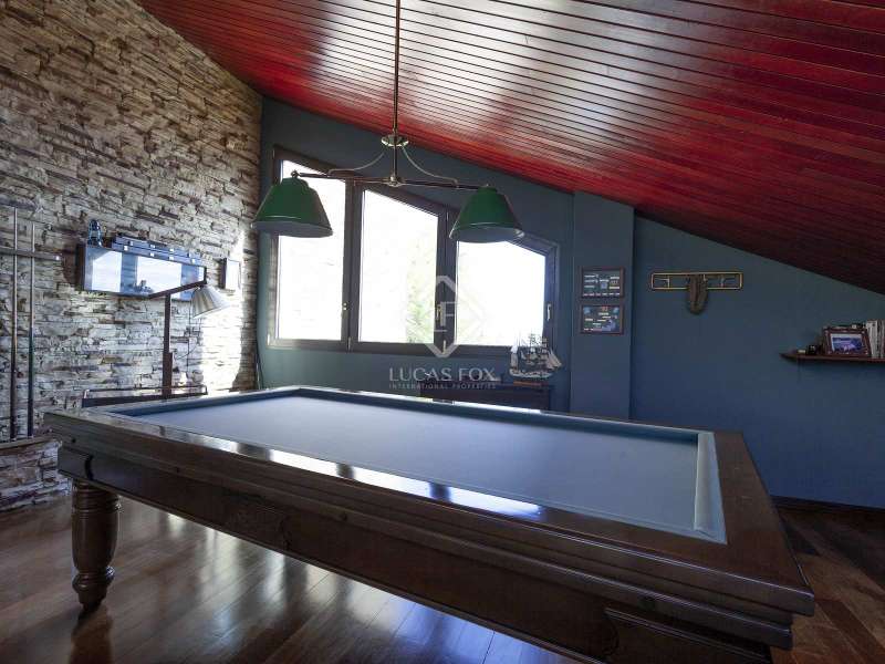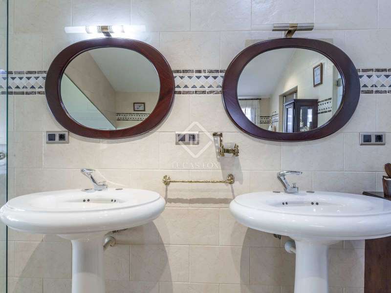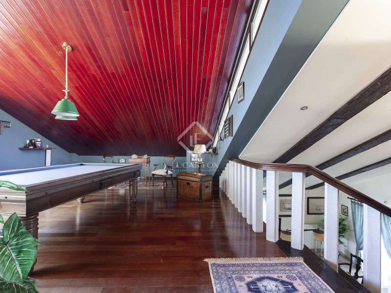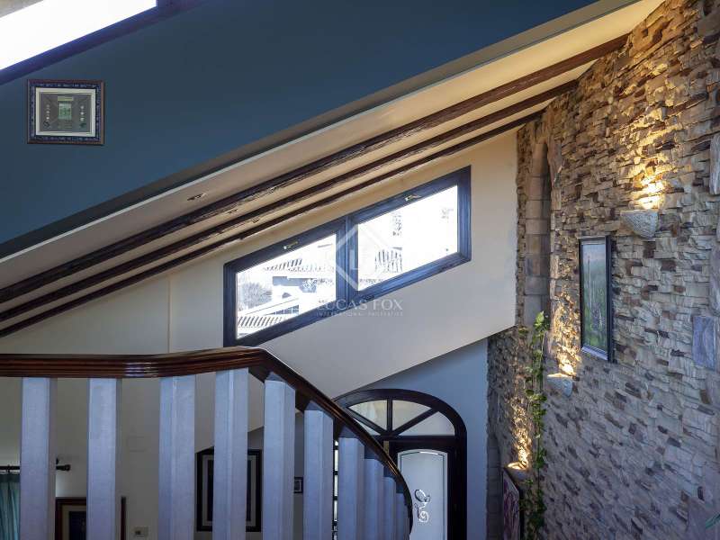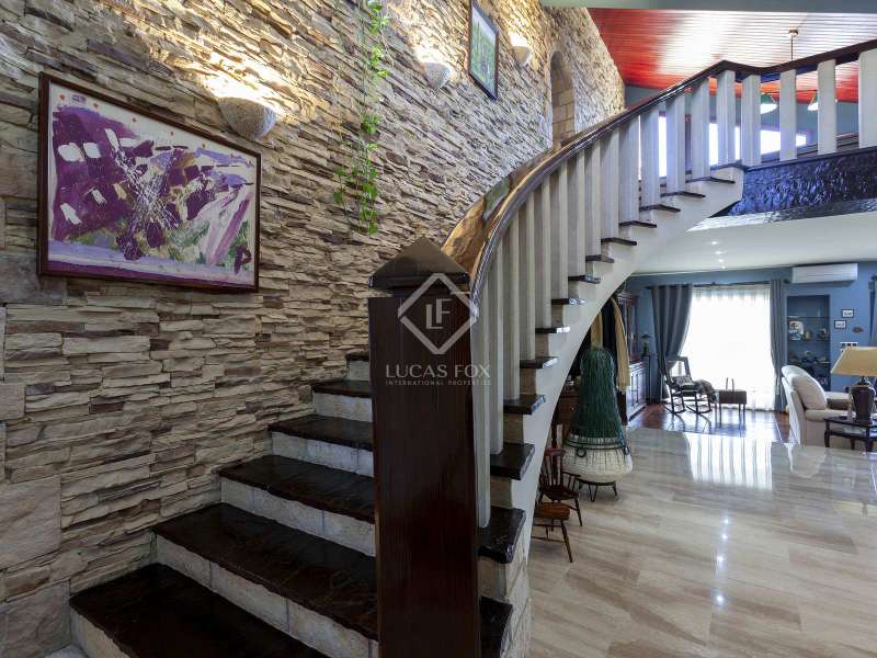 In one of the quietest streets of Alfinach we find this unique property featuring an impressive stone wall that divides the day and night areas. A wide staircase gives access to the main floor, where we have a terrace and a large double-height space that is occupied by the living room area. This has direct access to the terrace with wonderful views of the skyline of Valencia, and finished off by the pool and garden. Next to this is a spacious kitchen with a pantry and 2 bedrooms and a bathroom. A marble staircase with hand-carved wooden banisters, leads to the upper floor, where we find a living room that is used as a billiard room and then the master bedroom with an en-suite bathroom equipped with a jacuzzi. Another bedroom and a bathroom clad with slate complete this floor. In the basement we have a large garage for at least 3 cars.
