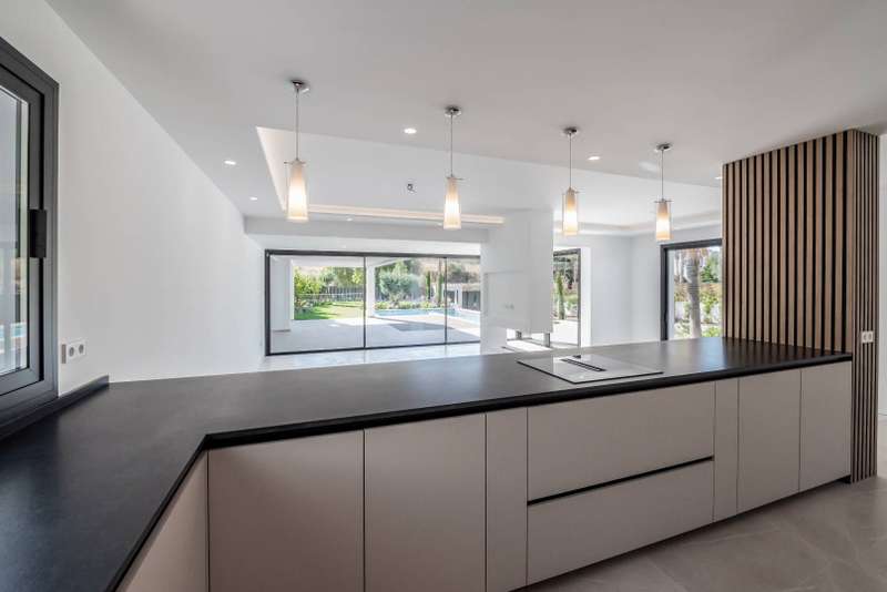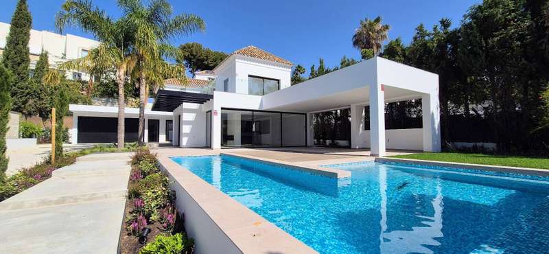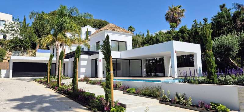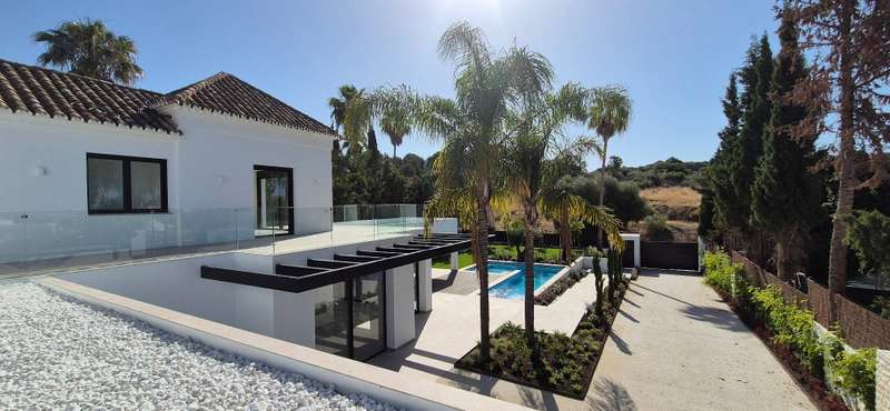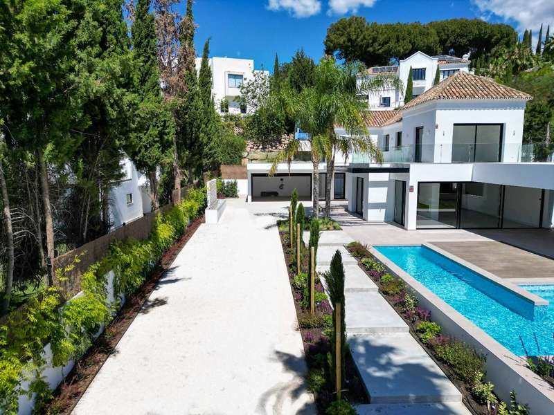 Discover Villa Camelia the villa of your dreams in the heart of exclusivity, surrounded by golf courses, in the El Paraiso - Benahavís area. This stunning newly built villa redefines luxury and comfort with its excellent quality finishes. With a layout designed to maximise comfort and elegance, it has 5 bedrooms, each designed to offer privacy and a welcoming ambience. The 5 modern bathrooms are equipped with the best materials and advanced technology, providing an incomparable space for relaxation and wellbeing. The villa includes a private swimming pool, perfect for enjoying the sun and relaxing in a peaceful and exclusive environment. The beautiful garden, carefully designed, becomes a green oasis that offers a perfect space for relaxation and tranquillity, ideal to enjoy with family and friends. The spacious terraces are another attraction of this property, providing open spaces ideal for al fresco dining, social gatherings or simply relaxing in the tranquility of the surroundings.