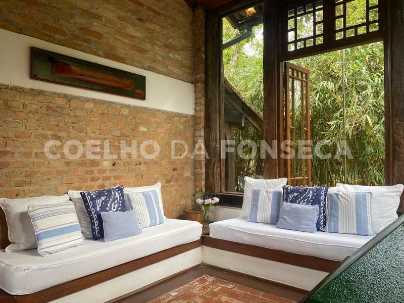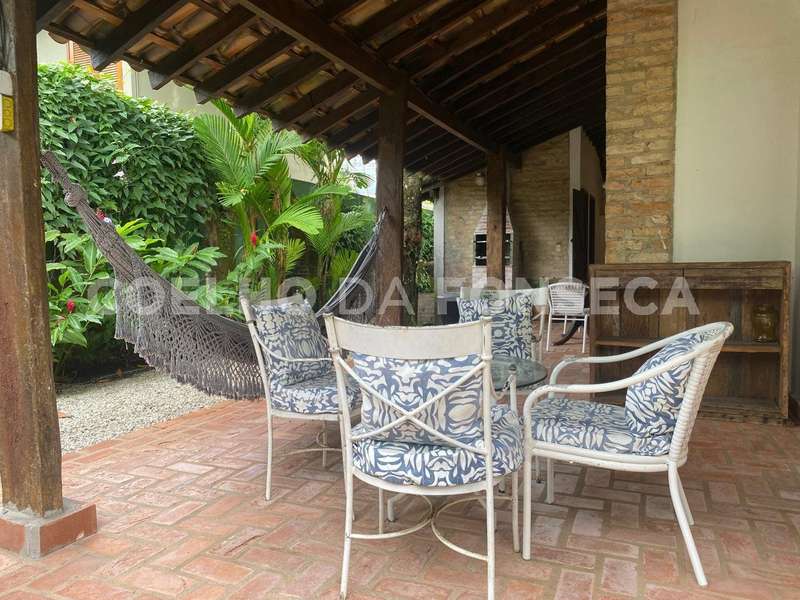Casa em Condomínio no bairro Camburi com 298m² área construída, 4 dormitório(s), 4 suíte(s), 4 vaga(s), 4 banheiro(s), esquina, depósito, mobiliado (a), rua sem saída, ar condicionado, dep. de empregados, pé na areia, varanda, imóvel para temporada, pé direito duplo.