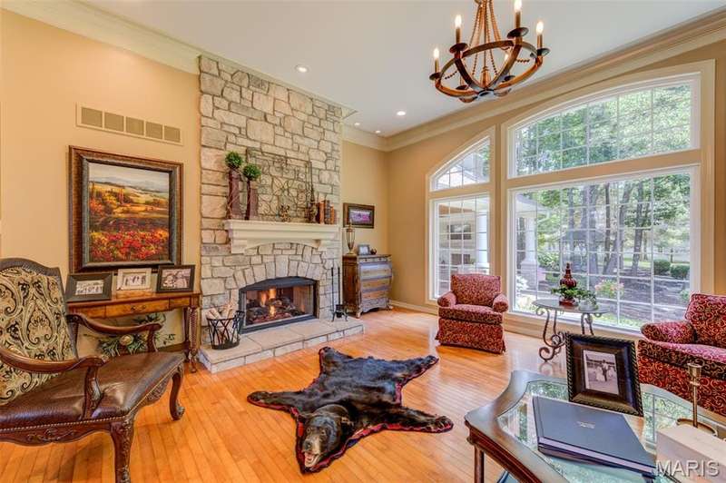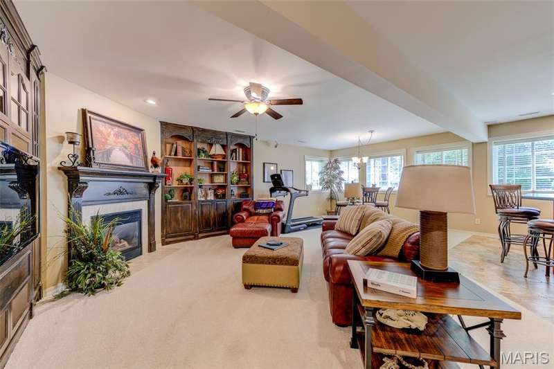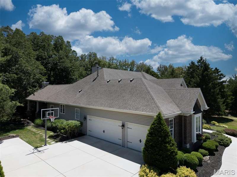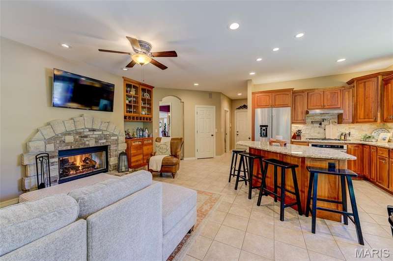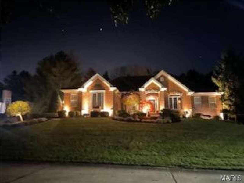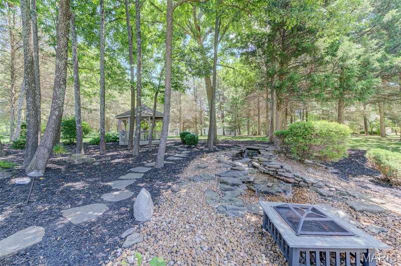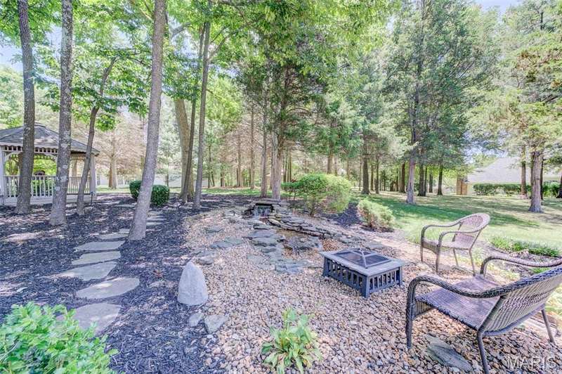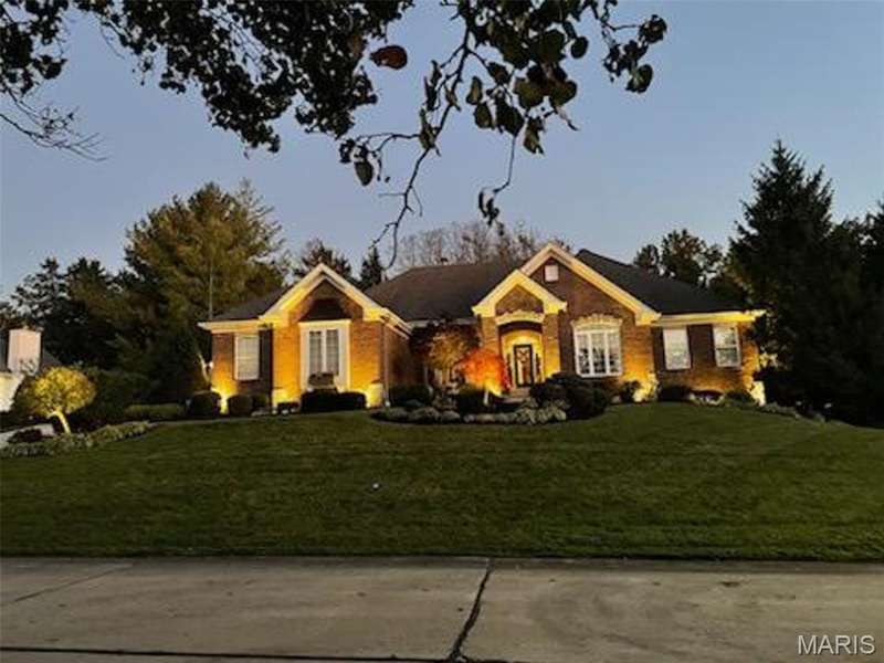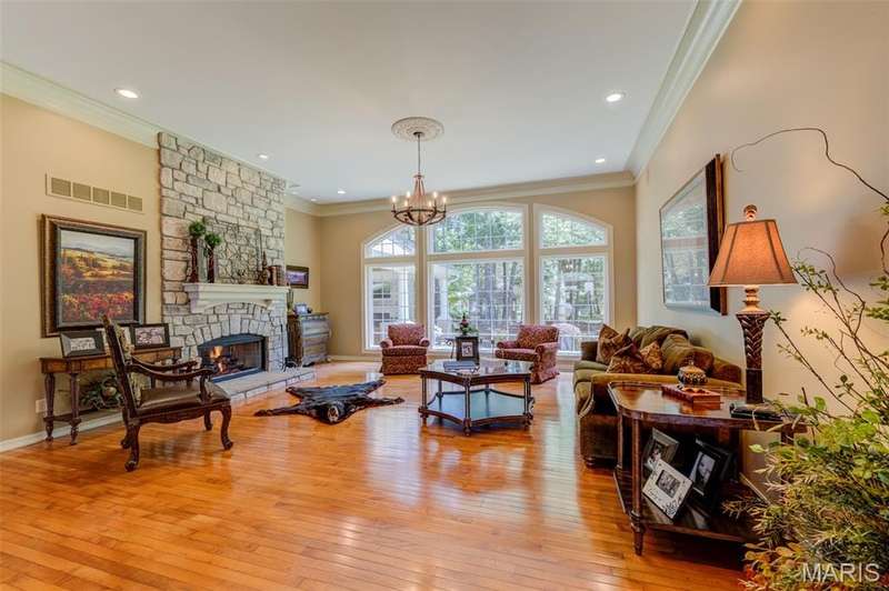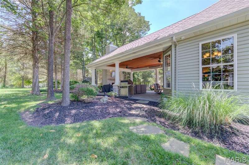 ONE OF A KIND sprawling ranch, 4200+ sq ft. with FINISHED LOWER LEVEL, backing to PRIVATE WOODS, & WATERFALL Elegant private covered patio w/built in Gas Stone Fireplace, Updated landscape lighting, Audio, & Heaters, Gazebo and Firepit. Spectacular area for entertaining guest. FULL LAKE RIGHTS / RESORT-STYLE AMENITIES: 685 acres of lakes, Boating, Fishing, Clubhouse, Pool, Golf, clubhouse, & Events. Step in to Stunning Great Rm. w/soaring gas fireplace, Pella- wall of windows, hardwood floors & Wynn Sound System. Formal dining, Exceptive Office / Bedroom. A Chef's kitchen with granite butterfly center island, hearth rm, 42 Cabinets, Pot filler, Stainless Appliances, Including the built in Refrigerator, Stone FP & sizeable sized breakfast room windows and bay. Relaxing primary suite, Spacious W/I closet & Luxury bath w/dual vanities & separate tub/shower. Finished LL includes 2 bedrooms, Lg. Bath, & huge Rec. rm w/built in entertainment cabinet & wet bar. 3 car side entry garage w/cabinets & newer openers. Also Included 5 mounted TV's & camera system throughout. This home is truly Magnificent and 2 miles to the Big Lake.