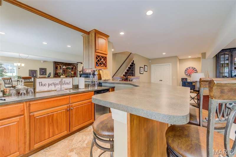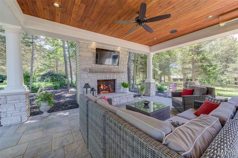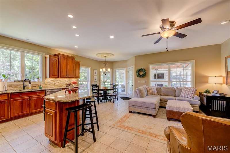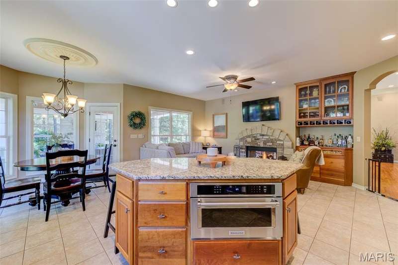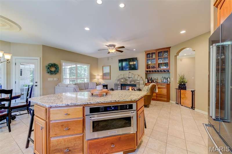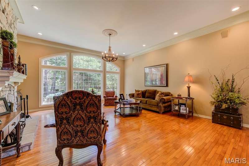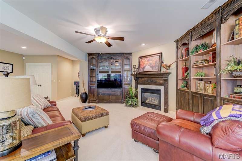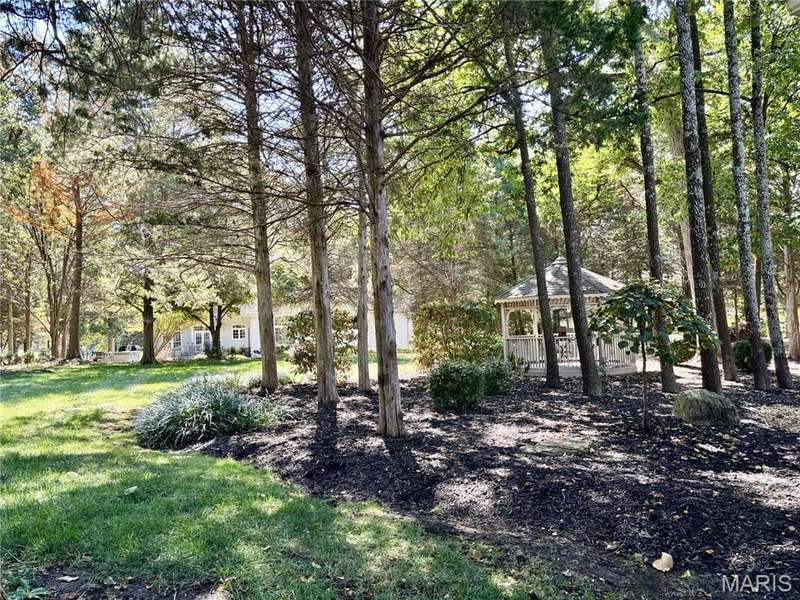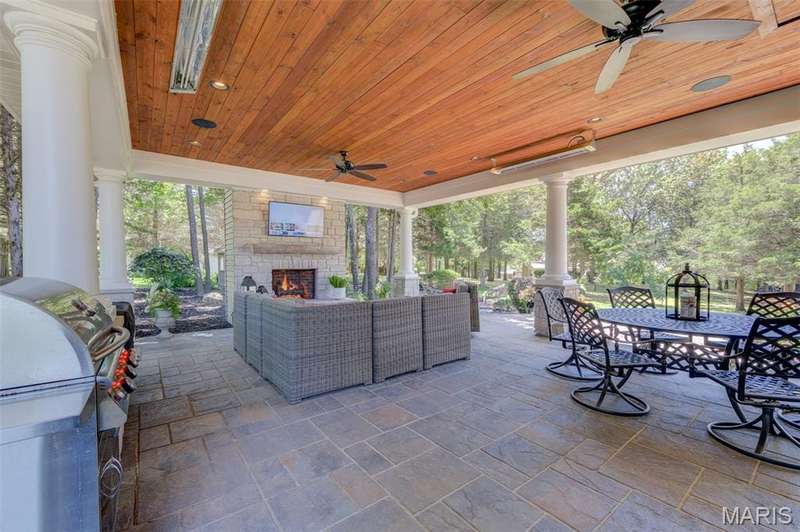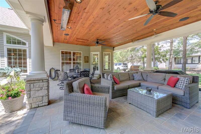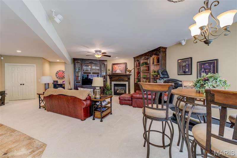 ONE OF A KIND sprawling ranch, 4200+ sq ft. with FINISHED LOWER LEVEL, backing to PRIVATE WOODS, & WATERFALL Elegant private covered patio w/built in Gas Stone Fireplace, Updated landscape lighting, Audio, & Heaters, Gazebo and Firepit. Spectacular area for entertaining guest. FULL LAKE RIGHTS / RESORT-STYLE AMENITIES: 685 acres of lakes, Boating, Fishing, Clubhouse, Pool, Golf, clubhouse, & Events. Step in to Stunning Great Rm. w/soaring gas fireplace, Pella- wall of windows, hardwood floors & Wynn Sound System. Formal dining, Exceptive Office / Bedroom. A Chef's kitchen with granite butterfly center island, hearth rm, 42 Cabinets, Pot filler, Stainless Appliances, Including the built in Refrigerator, Stone FP & sizeable sized breakfast room windows and bay. Relaxing primary suite, Spacious W/I closet & Luxury bath w/dual vanities & separate tub/shower. Finished LL includes 2 bedrooms, Lg. Bath, & huge Rec. rm w/built in entertainment cabinet & wet bar. 3 car side entry garage w/cabinets & newer openers. Also Included 5 mounted TV's & camera system throughout. This home is truly Magnificent and 2 miles to the Big Lake.