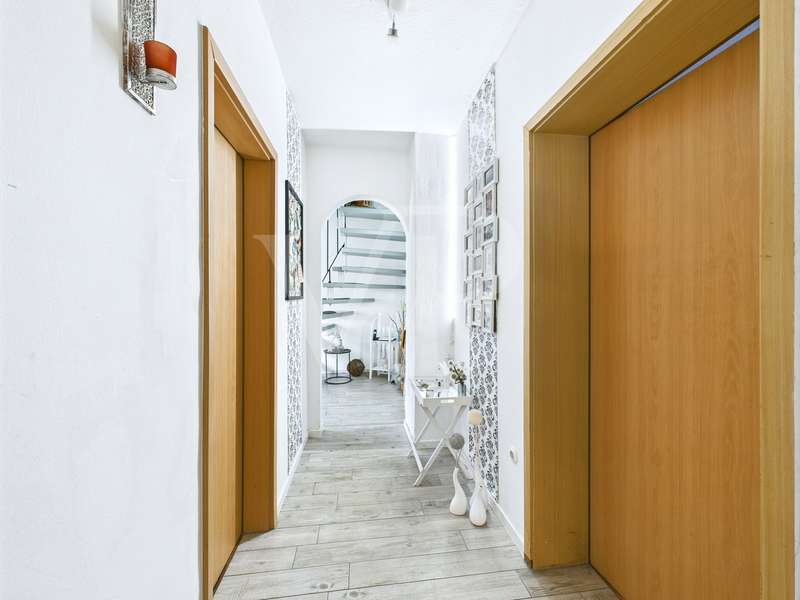 In a rural location in Großheide, this charming remaining farm presents itself as a versatile property with great potential on a plot of over 4 hectares. The original house was built in 1939 and has been continuously modernized over the years. Two extensive partial renovations in 1980 and 1995 as well as the renewal of the barn's roof in 2014 ensure that the property is in a well-kept overall condition. The property offers a total of two separate residential units, generous usable areas, a barn measuring approx. 350 m² and a spacious garden area. The living space of the remaining farmhouse is approx. 190 m². Important note: There is moisture damage in the living area of the large residential unit, which still needs to be professionally inspected. The first apartment welcomes you with a practical entrance area. From here, you enter a hallway on the right-hand side, which connects all the rooms on the first floor. The bathroom is located directly to the right of the hallway. Opposite on the left is a versatile room that is ideal for use as a pantry or storage room. At the end of the hallway is the bright, spacious kitchen, from which there is easy access to the adjoining living room. A staircase leads from the entrance area to the upper floor. A central hallway awaits you there, from which all rooms are easily accessible. Directly to the right is a large bedroom, which offers plenty of space for individual furnishing ideas. To the right is a small guest WC. Opposite the staircase are two further large bedrooms, which are ideal for use as a children's room, study or guest room. To the left of the hallway is another living room, which offers additional possibilities for use. The property is complemented by generous usable areas. The approx. 350 m² barn offers plenty of space for hobbies, workshops or agricultural use. The garden areas around the house offer space to relax or for horticultural activities. The existing terrace invites you to spend cozy hours outdoors on sunny days. This remaining farmhouse combines rural living with plenty of space, a practical room layout and versatile usage options. Ideal for families, craftsmen or anyone looking for life in the countryside with plenty of space for their own ideas.