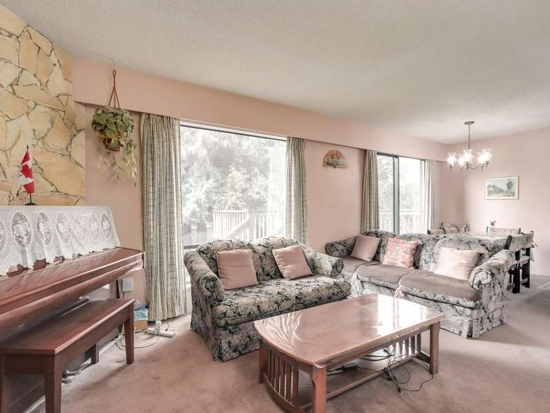 Price is approx. 200,000 below assessment. This charming home, nestled in a quiet and desirable North Vancouver neighborhood, sits on a generous 10,000 sq.ft. lot and boasts a 2,805 sq ft., offering endless possibilities for renovation or a custom dream home. The SW-facing backyard is fully fenced and backs onto a peaceful walkway, providing privacy and a serene setting. Inside, the main floor features a formal dining room, a kitchen with a breakfast nook, a Family with a cozy fireplace, a Den, and a unique vaulted sunken Living Room with a second fireplace, perfect for gatherings. Upstairs, you'll find 3 well-designed Bedrooms, offering plenty of space for a growing family, plus additional space in the Basement.