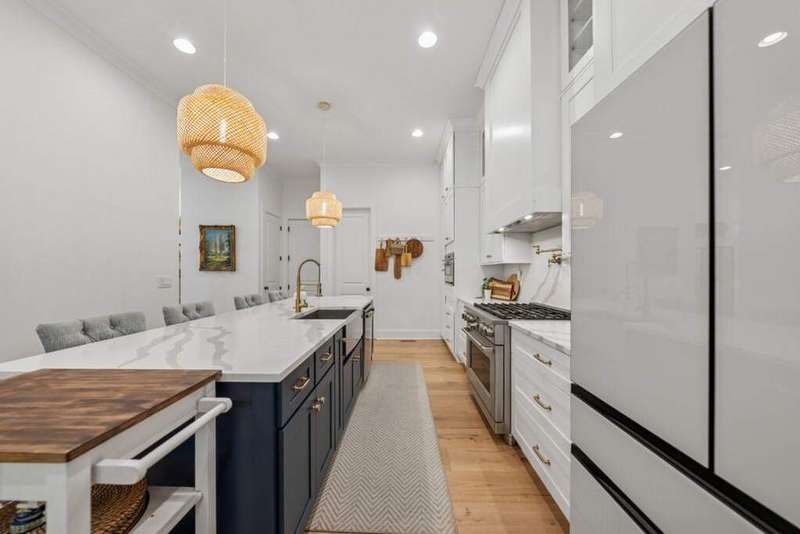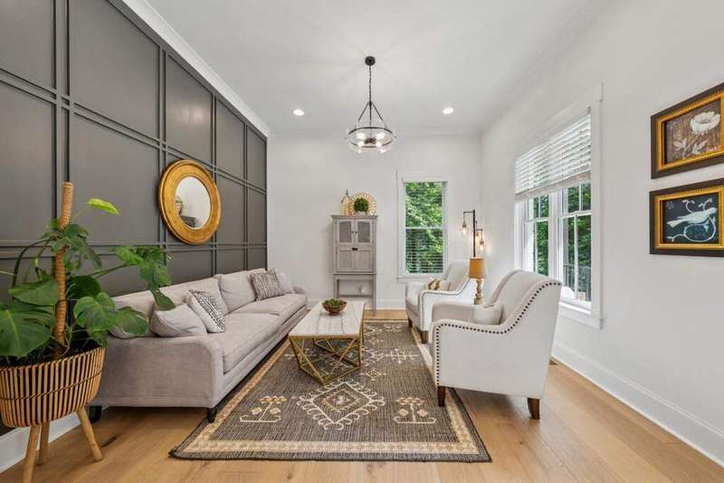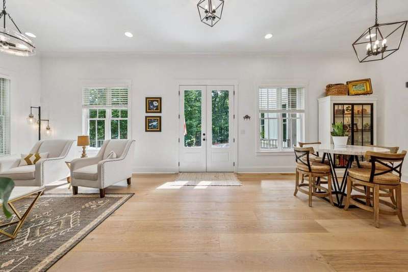 Suburban living has never looked better in this gorgeous Alpharetta masterpiece-a true gem boasting a charming rocking chair front porch within Milton High School district! Warm hardwoods flow throughout the expansive open floor plan, paired with a bright neutral palette that radiates warmth. Elegant wainscoting and refined trim throughout will delight you, adding a touch of timeless charm. The cozy living area, accented by an inviting fireplace and overlooking a serene wooded backyard, creates a positively chic space perfect for lively gatherings or quiet evenings at home. The chef's kitchen shines with a large island, sleek quartz counters, a stylish dry bar, and stainless steel appliances, ideal for whipping up your favorite meals or hosting festive get-togethers. Four spacious secondary bedrooms offer ample room for family, guests, or hobbies, while the stunning owner's suite boasts a huge walk-in closet with built-ins, an island, and a gorgeous ensuite featuring double vanities, a soaking tub, and a large shower for ultimate relaxation. In addition, there is a fantastic loft/bedroom that is perfect for a kid's playroom or office. A full, finished basement adds versatility with a bedroom, full bathroom, and cozy living area-perfect for movie and game nights or accommodating visitors. More than 5,700 sq ft of space, ready to be yours! You'll find idyllic suburban living within two miles of coveted Downtown Alpharetta, Avalon, and just minutes from local parks and shopping nearby, plus easy access to GA 400. Zoned for prestigious Milton High School, this home perfectly complements your lifestyle. Schedule your showing today and discover the life within Alpharetta you've been dreaming of!