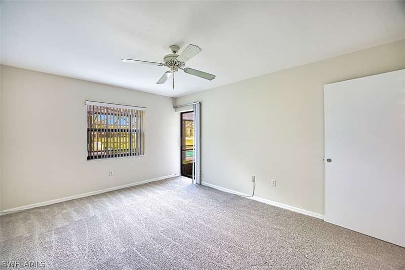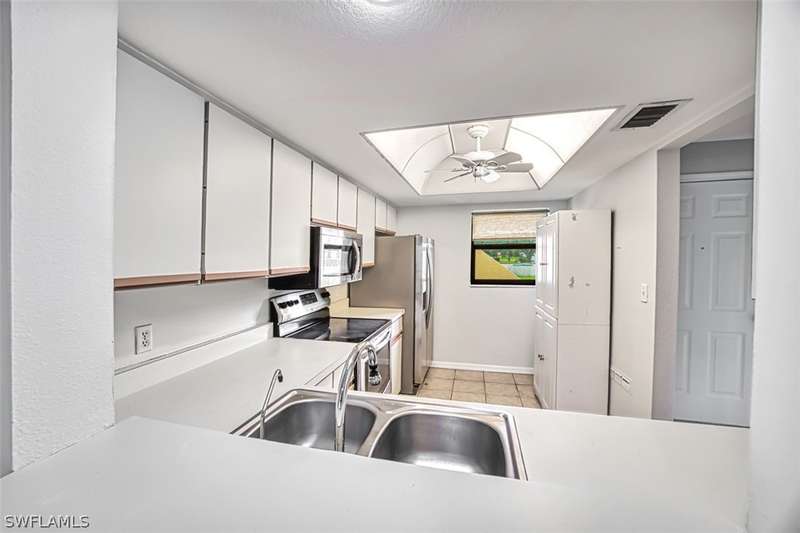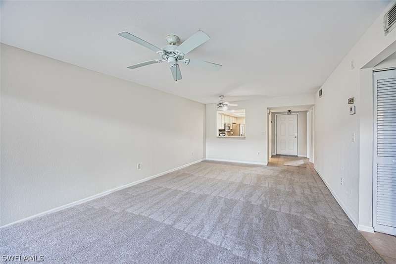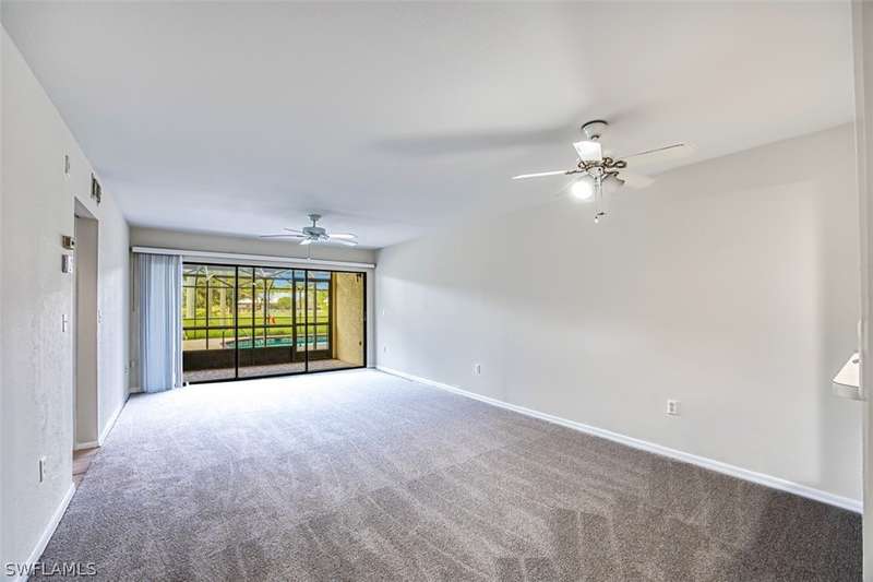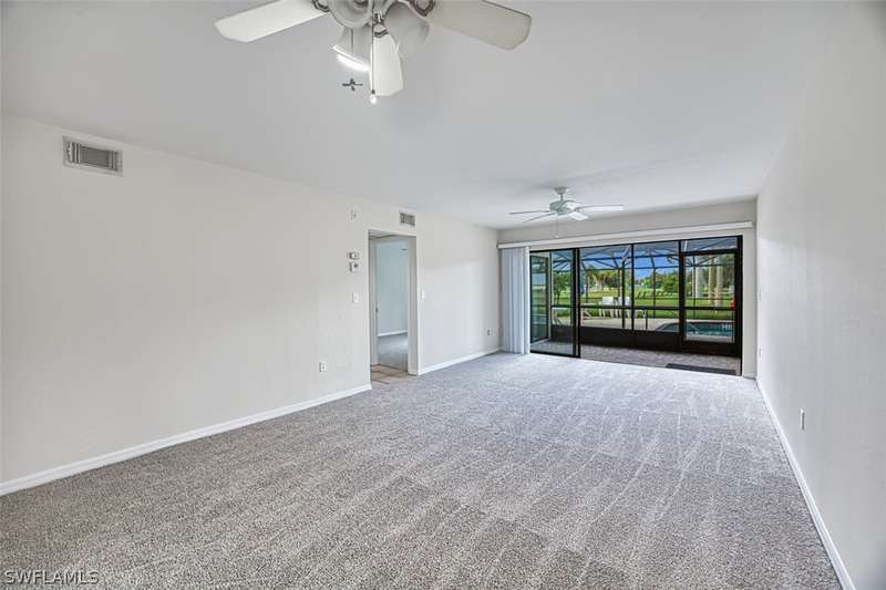 Huge Price Reduction! Looking for an affordable condominium close to all that SW Florida has to offer? This 2 bed/2 bath first floor condo home features fresh paint, new carpet and a spacious, open floorplan. Upon entering, you'll find a well-appointed kitchen with stainless steel appliances. Opening to spacious living/dining room, you'll be immediately drawn to the nice-sized screened lanai overlooking the community pool and golf course beyond. The primary suite includes a access to the lanai, a large walk-in closet and en-suite bathroom with shower. Stackable laundry closet and carport also included for your convenience. Located adjacent to the Deep Creek Golf Club, a championship public course right in your back yard! Priced to sell, this condo is ready for a new owner.