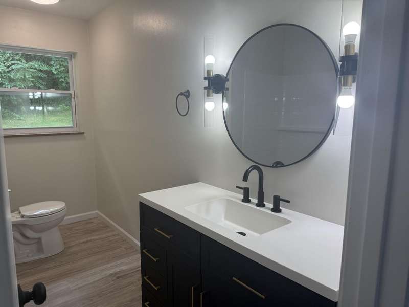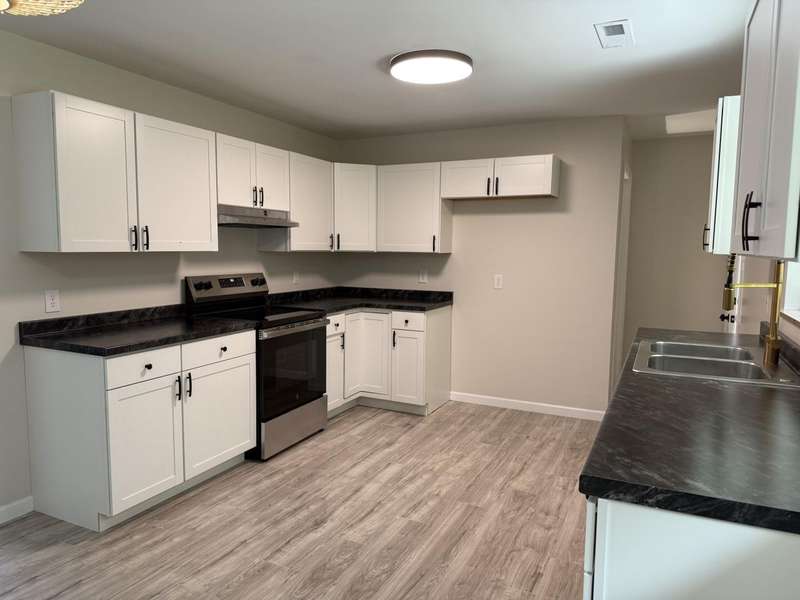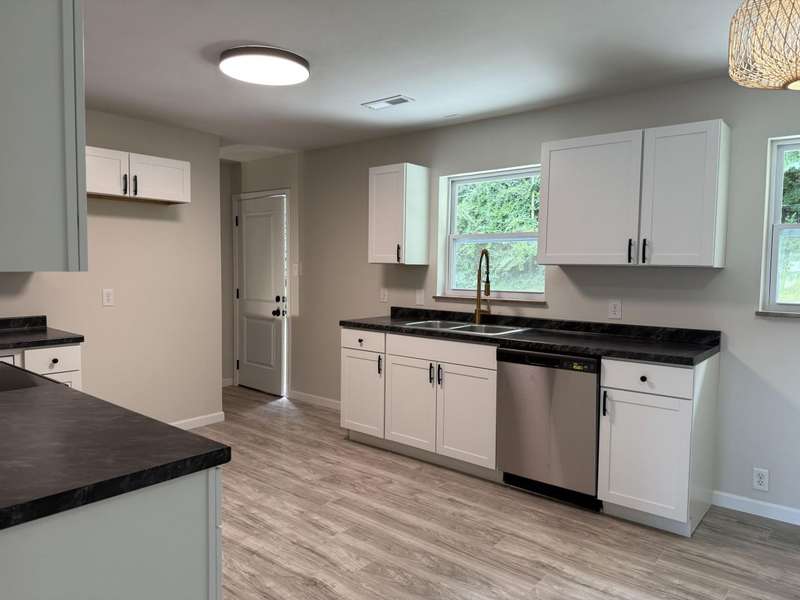 Completely remodeled 3 BR 2 BA home with nice private level back yard. Improvements include new kitchen and baths, new flooring, new electric and plumbing, new light fixtures. Great corner lot.
