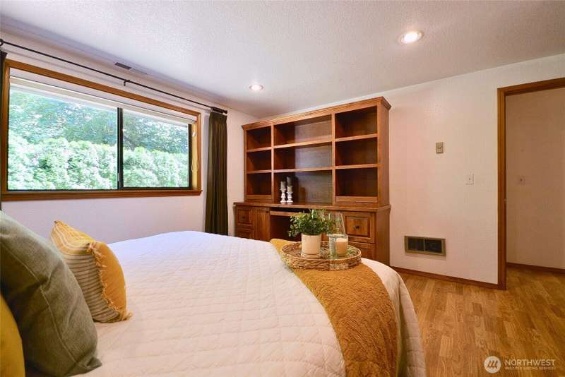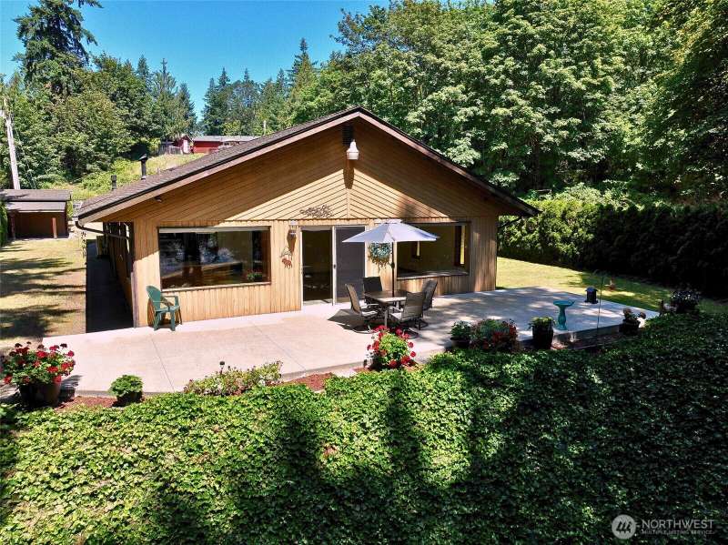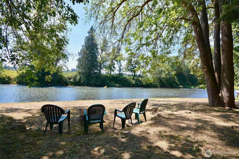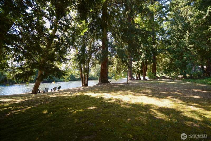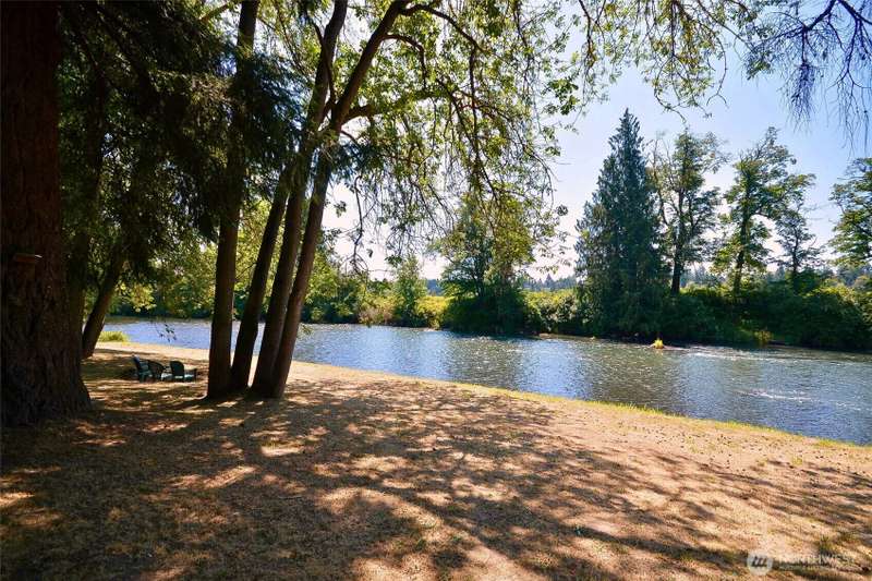 Tucked away at the end of a quiet road, where the Nisqually River flows gently by, you'll find a hidden gem—your peaceful riverfront retreat. This custom home sits on just under half an acre with 109 ft of private shoreline. Step through the gated entry to find cozy charm and thoughtful details: two spacious bedrooms, one bath, two living rooms, a flex space & lg safe w/work bench & cabinets, a spacious laundry room w/shelves cabinets. Picture windows frame the water views throughout the home, while custom shades, built-ins, and upgraded appliances add luxury throughout. Outside, a large concrete patio & walkways, fenced yard,& a metal carport w/stacked firewood invite you to stay a while also A/C to keep you cool. Come experience the calm.