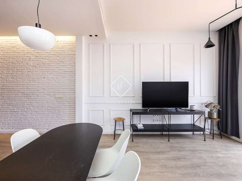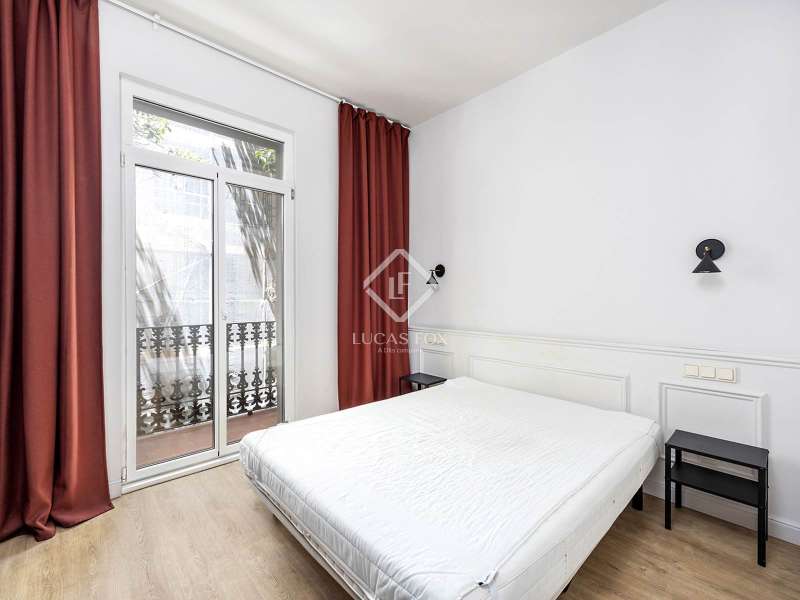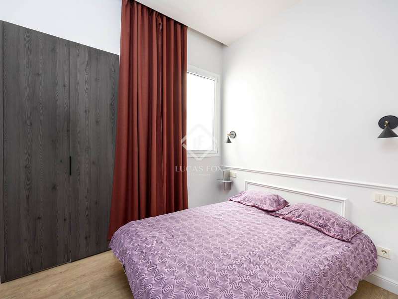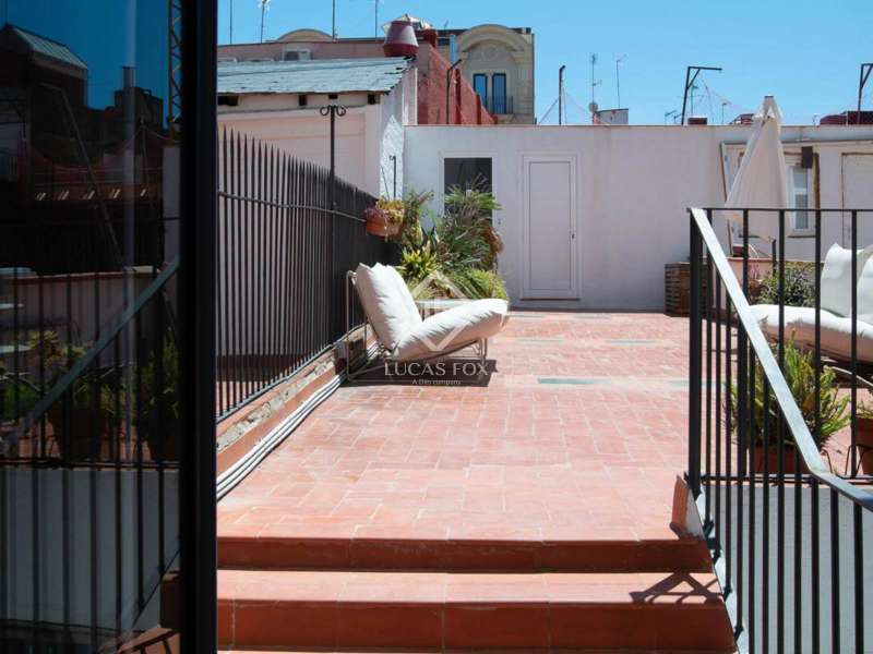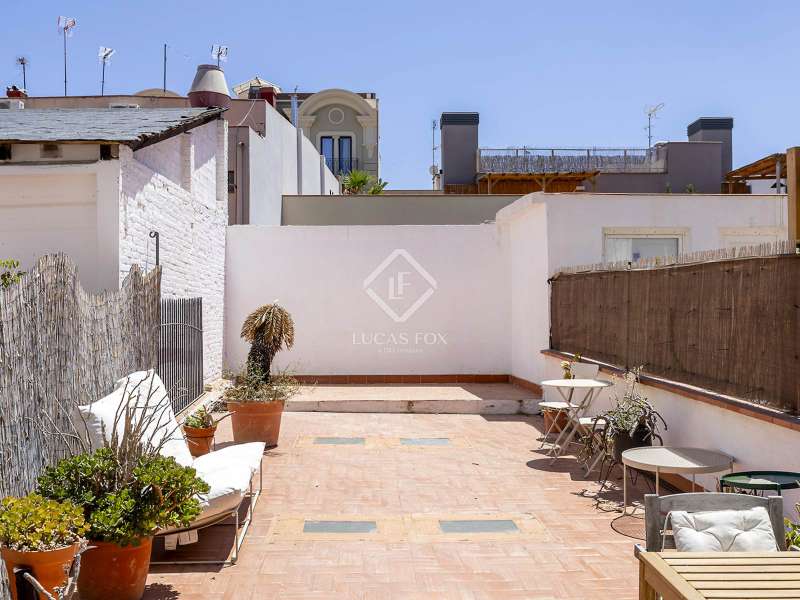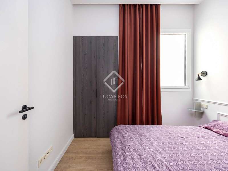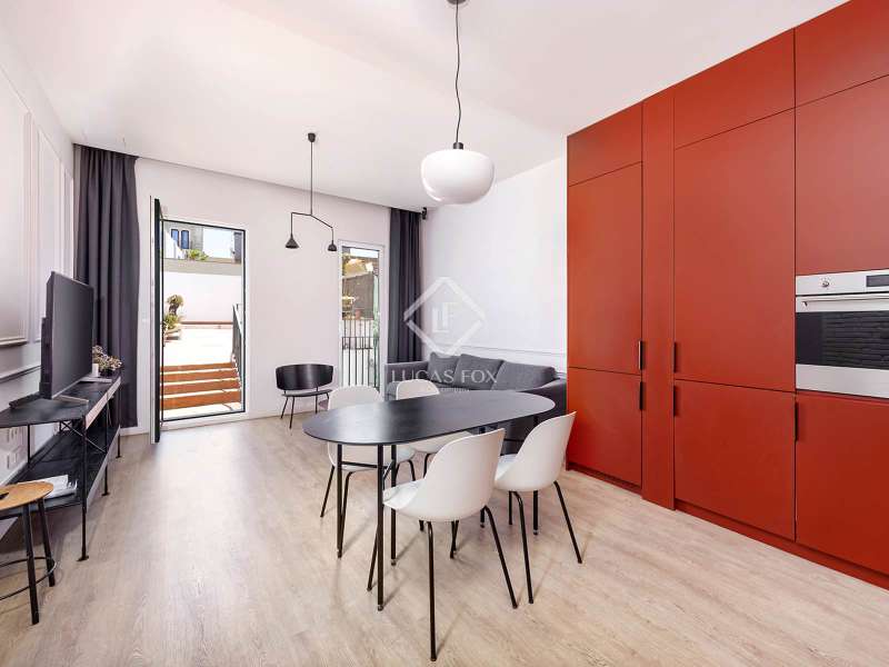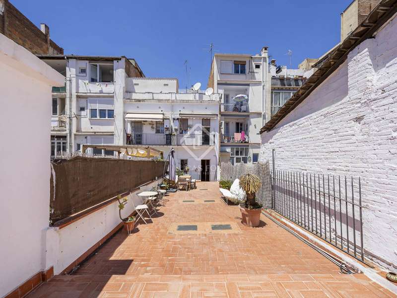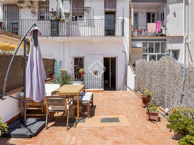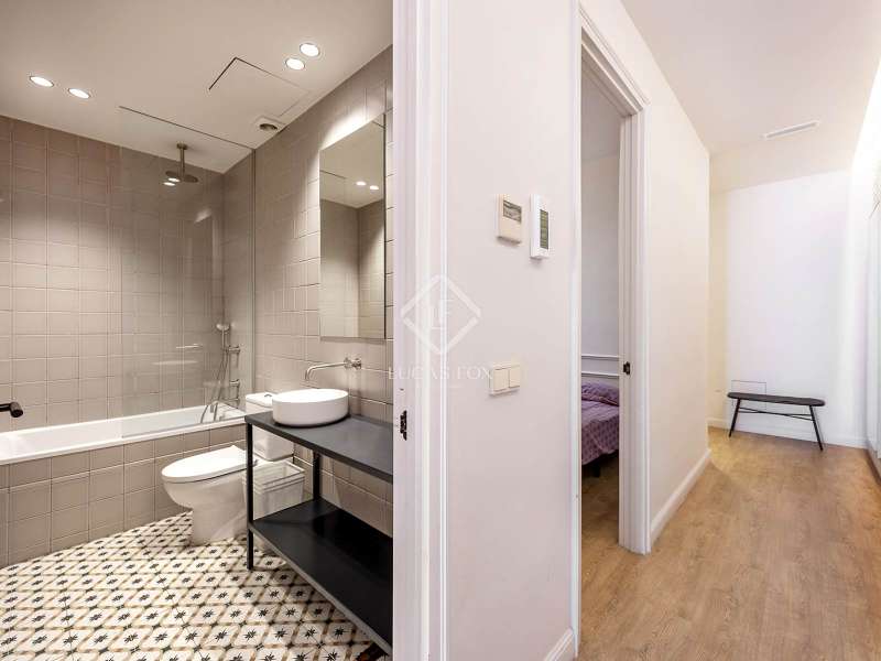 Completely renovated apartment for sale in Vila de Gràcia, close to the best restaurants, shops and bars in this fashionable neighbourhood of Barcelona. Only one flight of stairs takes us right to the apartment. On the left, we find the main bedroom exterior with a private bathroom. Down the hall to the right, we find the second double bedroom and a second bathroom. The living room has a modern and open kitchen, indirect led lighting and access to the large terrace. The property has impeccable finishes, air conditioning, heating, alarm system, appliances, and high quality finishes. Contact us today to arrange a visit to this excellent home for sale in Gràcia, Barcelona.