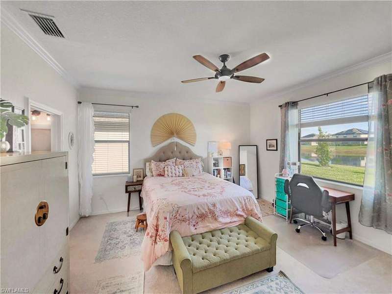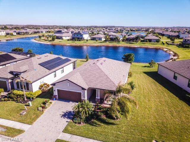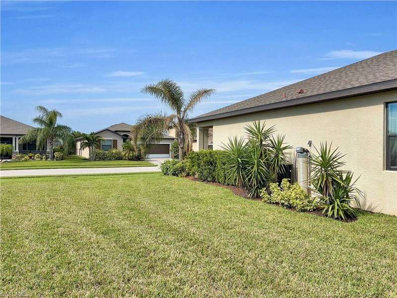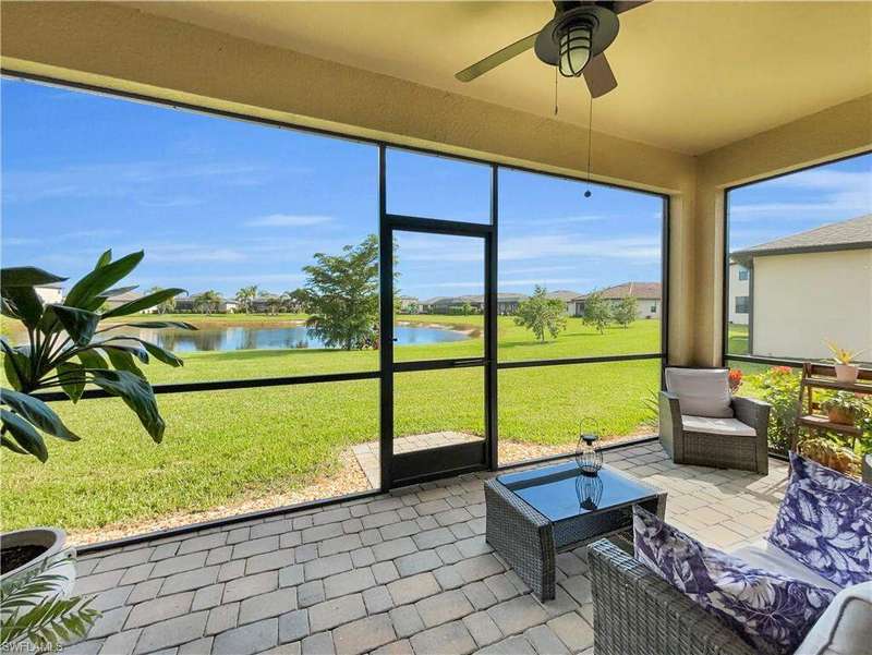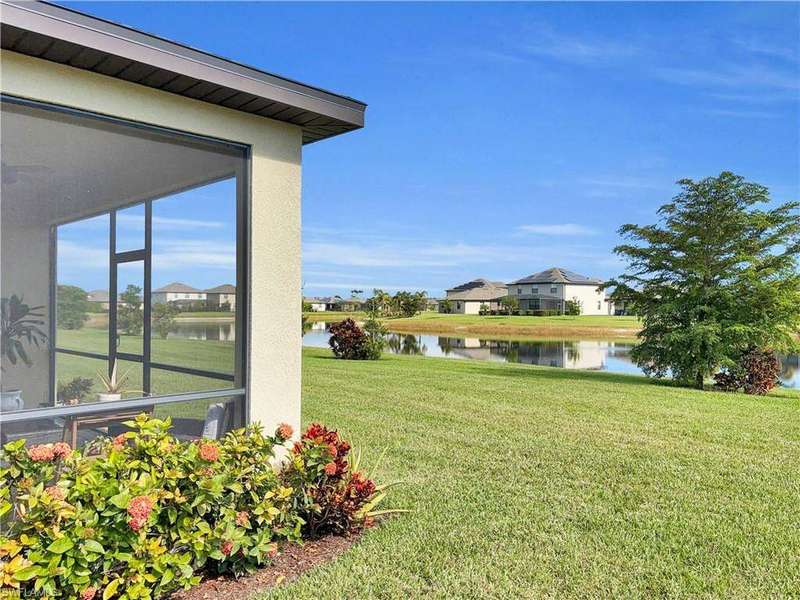 STUNNING LAKE VIEW HOME ON OVERSIZED LOT! OPEN FLOOR PLAN + MANY UPGRADES! Discover the allure of this beautiful 3 bedroom / 3 bathroom Venice model by Lennar, nestled in the vibrant and family-friendly Portico community in Fort Myers. This gorgeous property seamlessly blends modern luxury with functional design, creating a true sanctuary for families, professionals, and retirees alike. It includes a covered front porch, a 2-car garage, smart home technology, energy-efficient appliances, and high-quality finishes throughout. You will love the open living concept of this home! The great room flows effortlessly into the dining area and gourmet kitchen, making it perfect for hosting gatherings or spending quality time with loved ones. The kitchen is a chef's dream, feat. stainless-steel appliances, ample cabinet space and a large counter (granite) with breakfast bar seating. Retreat to your luxurious owner's suite, complete with two large walk-in closets and a spa-inspired en-suite bathroom w/dual vanities and an oversized walk-in shower. Two additional bedrooms, each with their own private bathroom and thoughtfully designed with comfort and privacy in mind, can easily be transformed into guest rooms, home offices, or playrooms, accommodating your family's unique needs. Tall sliding glass doors lead from the living room to the covered and screened-in lanai, which is a perfect place to enjoy amazing lake and nature views - an oasis for cozy outdoor relaxing! The lovely backyard has plenty of room to add a pool. And to top it all off, this spectacular home comes with MANY VALUABLE UPGRADES, including a Whole House Generator (for which the house is already wired), a Whole House Water Filtration System, glass insert in front door, cabinet system in laundry room, epoxy garage floor and more. This gem is ready for you to move in and enjoy your very own SW Florida paradise! NO FLOOD INSURANCE REQUIRED! PORTICO is a very popular, access-controlled community w/Low HOA fees. Residents enjoy resort-style amenities, including a clubhouse, community pool, gym, yoga/exercise room, tennis, pickleball, basketball + play area. Pets, Fences & LSVs permitted! Great location, short drive to I-75, shopping, dining & more!