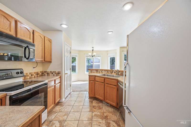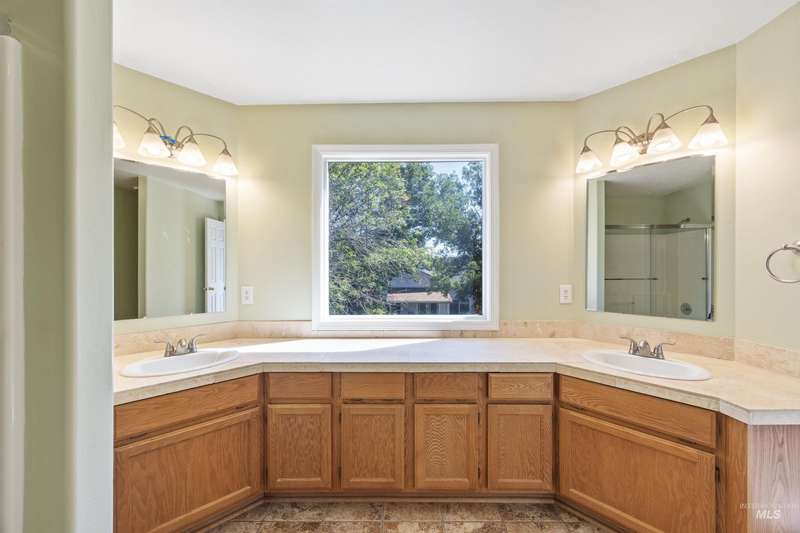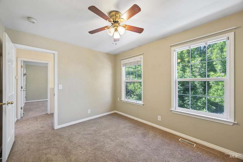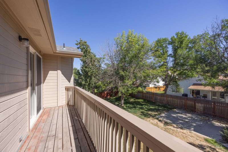 New roof to be installed!! Discover comfort and convenience in this spacious home located in a highly desirable Southeast Boise neighborhood—just minutes from local parks, the freeway, airport, Micron, and more. Step inside to find a well-designed layout featuring both a cozy living room and a separate family room with a warm gas fireplace, plus a formal dining area perfect for gatherings. The kitchen is equipped with a breakfast bar, pantry, and easy-to-maintain tile flooring. Upstairs, the primary suite offers a true retreat with vaulted ceilings, a private walk-out deck, dual sinks, and a large walk-in closet. Enjoy newer upgrades including an AC and water heater for added peace of mind. Outdoor living is just as inviting with a welcoming front porch, a covered back patio ideal for entertaining, a spacious backyard shaded by mature trees, and a handy storage shed.