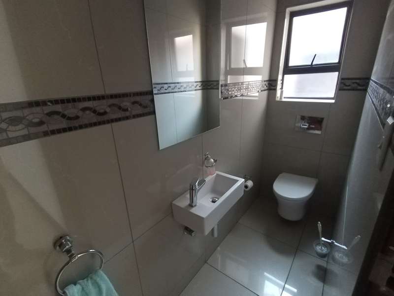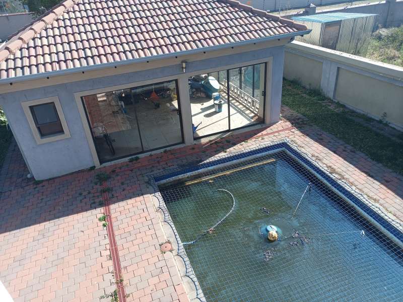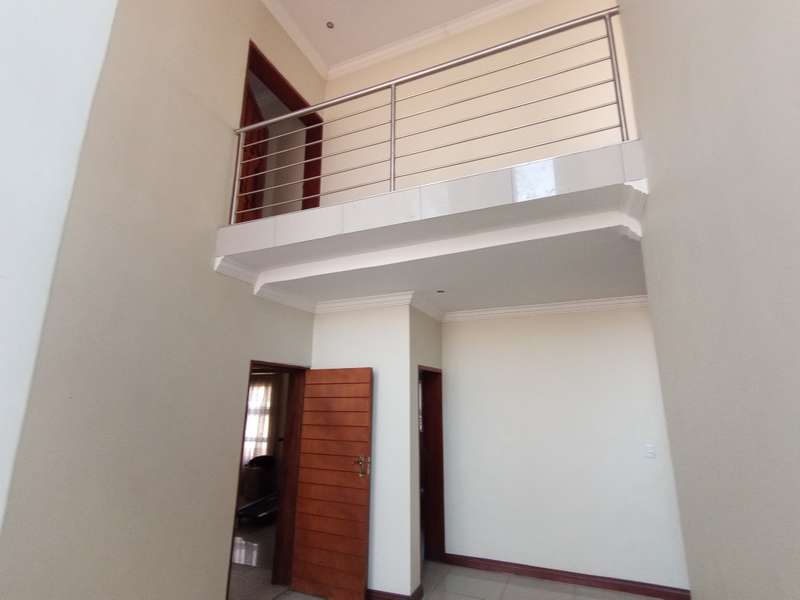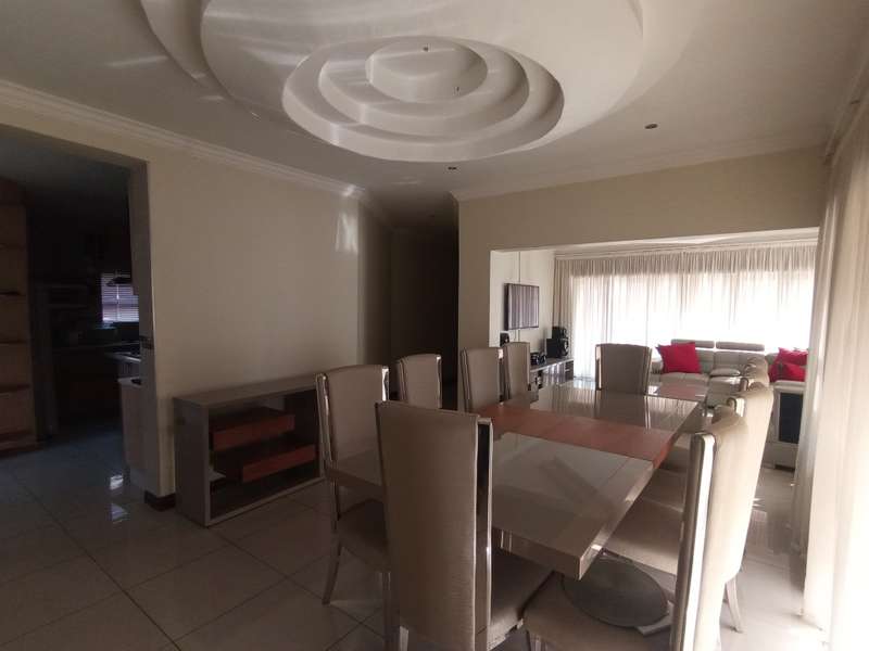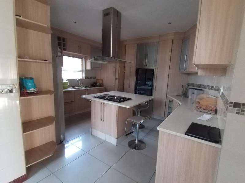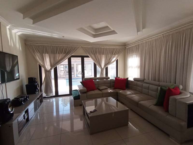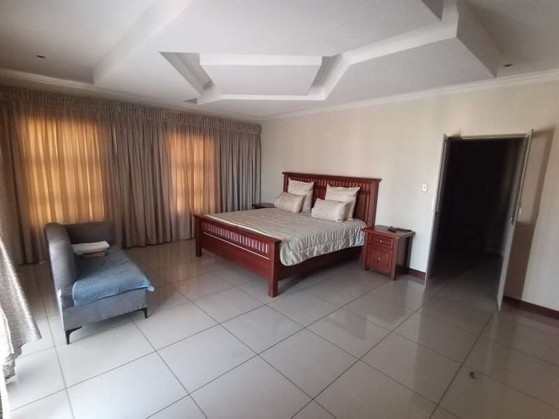 Elegant 5-Bedroom Executive Home Nestled in a sought-after estate, this exquisite 6-bedroom residence effortlessly combines luxurious living with timeless elegance. From the moment you step through the grand entrance, you’re welcomed into a home designed for comfort, style, and entertaining. The master bedroom is a true sanctuary, featuring a private balcony with tranquil views, a spacious walk-in closet, and a deluxe en-suite bathroom. Each of the additional bedrooms is generously sized, offering built-in cupboards and natural light throughout. Upstairs, a cozy pajama lounge opens onto its own balcony, perfect for quiet evenings or morning coffee with a view. Downstairs, two expansive lounges create inviting spaces for family gatherings and relaxed living, flowing seamlessly into an open-plan dining and kitchen area. The designer ceilings throughout the home add a touch of executive sophistication. The modern kitchen is a chef’s dream, complete with a separate scullery and dedicated laundry area for added convenience. A private study with extensive cupboard space offers a peaceful work-from-home environment. Step outside into a beautifully designed entertainment area, boasting a sparkling pool, lapa with built-in braai, and ample space for hosting guests all year round. Additional features include: 4-car garage with ample storage space Back up inverter system Guest toilet Versatile extra room, ideal for a gym, second office, or hobby studio High-end finishes throughout Servant quaters for added convenience This home is the epitome of upscale estate living—offering privacy, security, and every amenity needed for a modern lifestyle. Your dream home awaits.