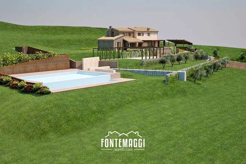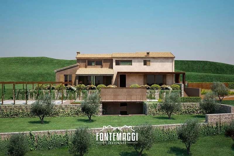 Colli al Metauro (PU) Saltara. In a panoramic position, overlooking the hills of the Marche, just 2 minutes from the services and the town, and 15 km from the Adriatic Sea. We offer for sale villa with park of about 700sqm. The property was built according to the construction criteria of recent years, using the best building materials on the market. The villa was designed to be the main residence and to be comfortably inhabited by a family of 4 people, and the rooms were organized to be comfortable and livable. The 250 sq m property is arranged on two floors. On the ground floor we find the living area with an entrance hall, living area, study, and eat-in kitchen. All rooms have French doors with access to the outside. On the second floor we find the sleeping area consisting of: two double bedrooms with en-suite bathroom, master bedroom with bathroom, walk-in closet and terrace. The basement of over 200sqm was born as a room usable by the whole family, where we find a large garage, tavern, wine cellar and changing room for the pool. The outdoor space of 7000sqm can be equipped as a park with swimming pool. The villa is ideal for those seeking a panoramic, quiet and green location with neighboring services. Customizable according to needs, it is sold "in the raw state". Request: 430,000.00 Tratt.