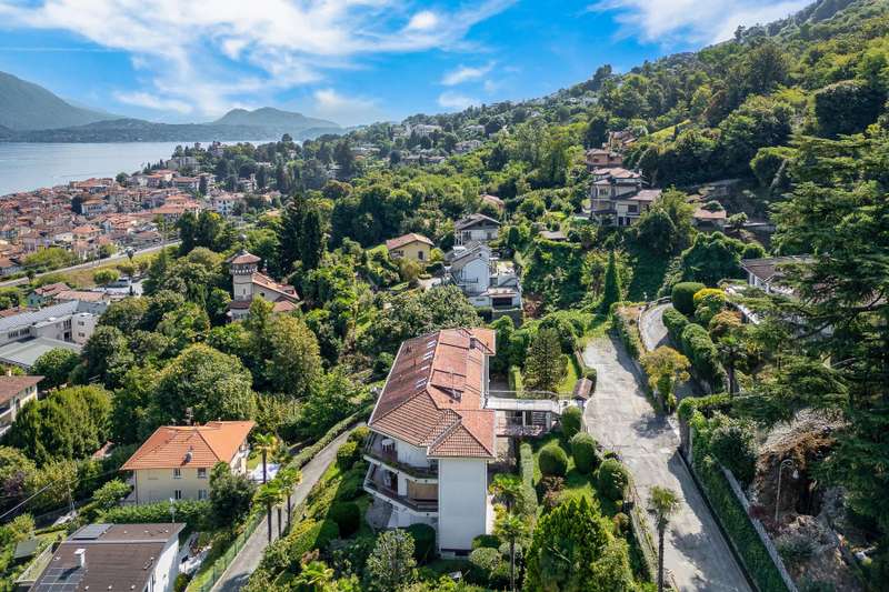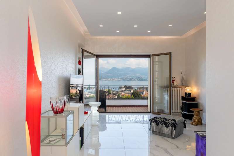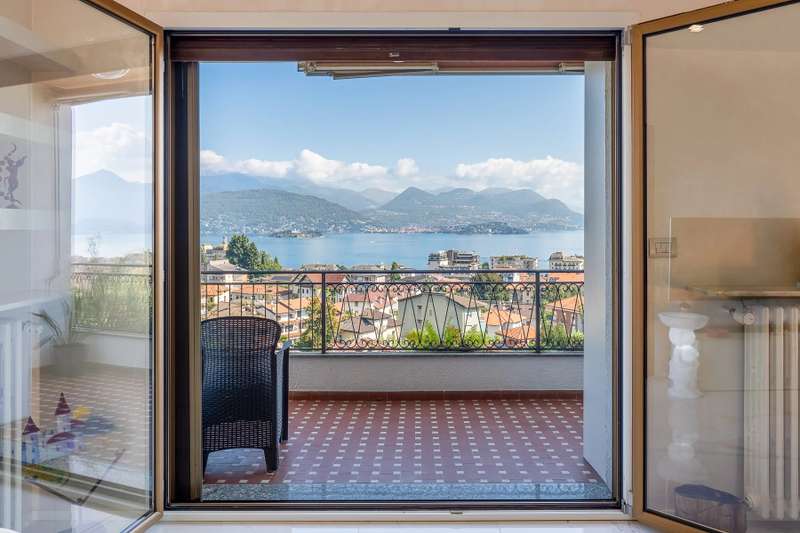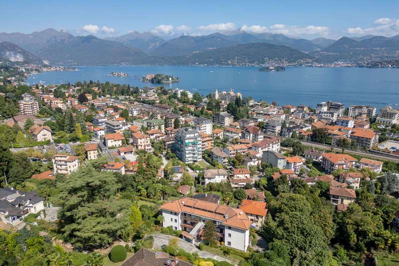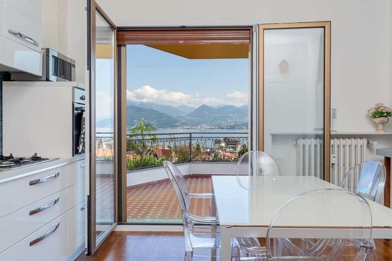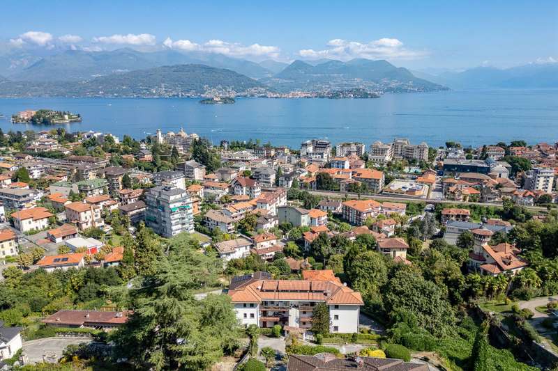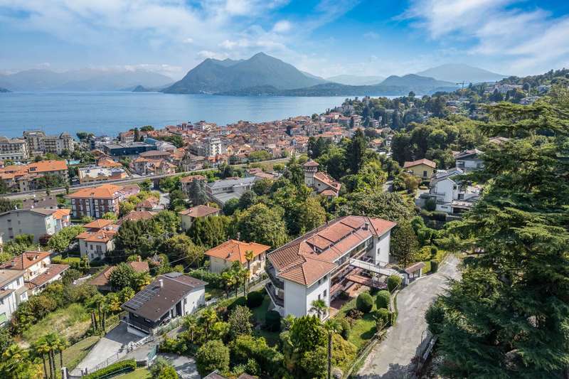 In a prime location, just a few steps from the center of Stresa, charming apartment located on the top floor of a building consisting of only six units. Although on the third floor, the apartment is reached from street level, with three steps at the entrance. The center of Stresa is easily reached on foot via a pedestrian street. The three-room property enjoys a wonderful panoramic view of Lake Maggiore and the Borromean Islands, visible from all main rooms. Originally the apartment consisted of a living room, kitchenette, two bedrooms, and two bathrooms. During the total renovation in 2020, one of the bedrooms was converted into an eat-in kitchen, and the kitchenette was converted back into a practical walk-in closet. With just a few changes, however, it is possible to restore the original distribution of space. The main feature is the large terrace, which embraces two sides of the apartment and allows exit from every room: an ideal space for outdoor dining and moments of relaxation, enjoying a unique pa-norama over the lake. On the upper floor is an attic, which can be used as a guest room, study or TV room. Numerous upgrades have been made: the roof has been completely redone and insulated, and the entrance has been closed with aluminum window frames, creating a buffer greenhouse that improves thermal insulation. Features include double-glazed aluminum windows, radiators with remotely adjustable thermostatic valves, and an integrated home automation system that allows remote management of the house's main functions. In the basement, the property has two car garages. The condominium boiler, replaced about two years ago with a state-of-the-art model, ensures energy efficiency. Condominium expenses include heating costs. The perimeter fence ensures privacy and security.