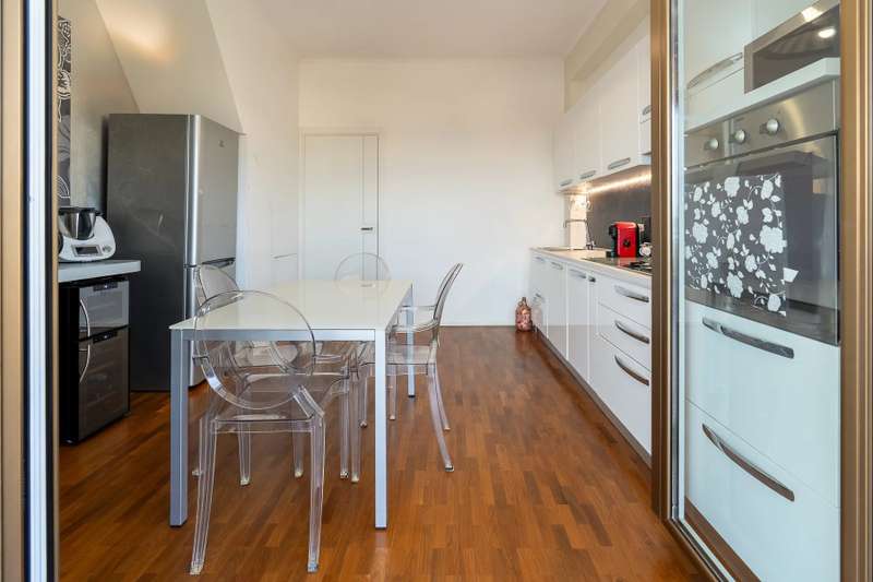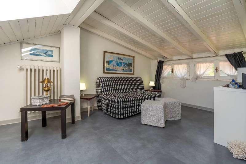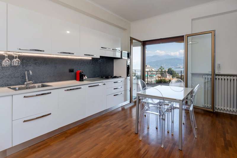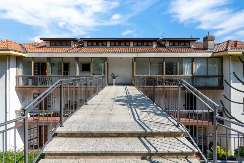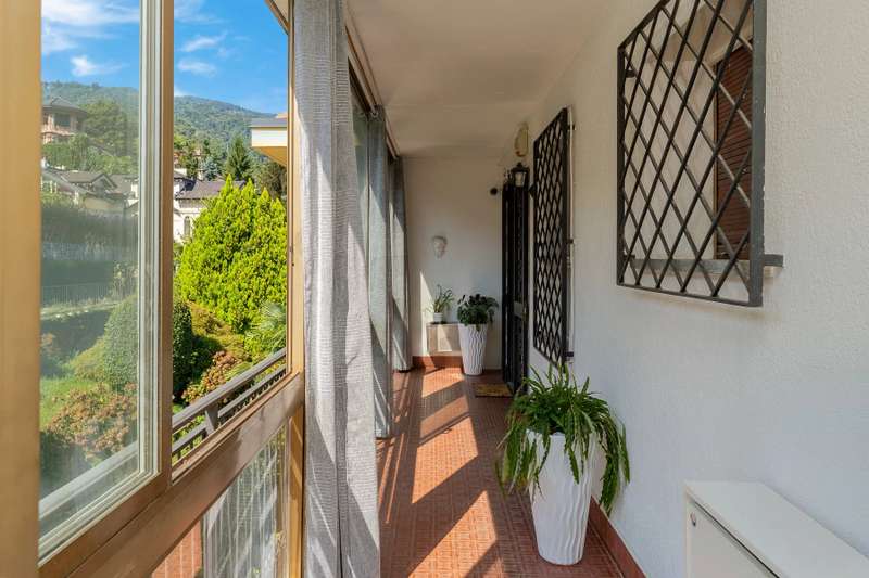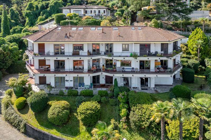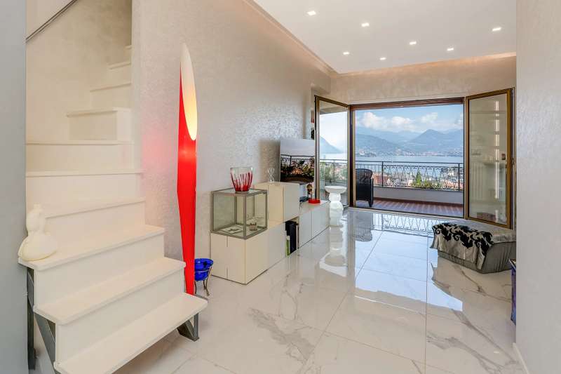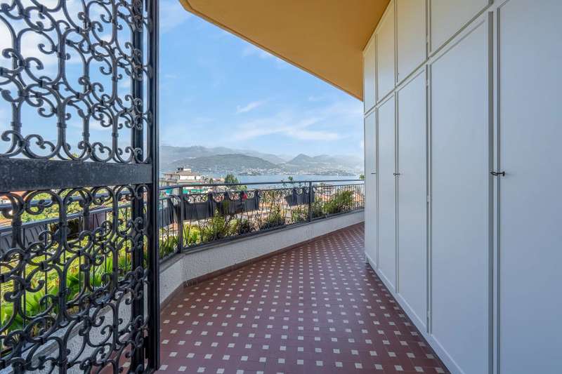 In a prime location, just a few steps from the center of Stresa, charming apartment located on the top floor of a building consisting of only six units. Although on the third floor, the apartment is reached from street level, with three steps at the entrance. The center of Stresa is easily reached on foot via a pedestrian street. The three-room property enjoys a wonderful panoramic view of Lake Maggiore and the Borromean Islands, visible from all main rooms. Originally the apartment consisted of a living room, kitchenette, two bedrooms, and two bathrooms. During the total renovation in 2020, one of the bedrooms was converted into an eat-in kitchen, and the kitchenette was converted back into a practical walk-in closet. With just a few changes, however, it is possible to restore the original distribution of space. The main feature is the large terrace, which embraces two sides of the apartment and allows exit from every room: an ideal space for outdoor dining and moments of relaxation, enjoying a unique pa-norama over the lake. On the upper floor is an attic, which can be used as a guest room, study or TV room. Numerous upgrades have been made: the roof has been completely redone and insulated, and the entrance has been closed with aluminum window frames, creating a buffer greenhouse that improves thermal insulation. Features include double-glazed aluminum windows, radiators with remotely adjustable thermostatic valves, and an integrated home automation system that allows remote management of the house's main functions. In the basement, the property has two car garages. The condominium boiler, replaced about two years ago with a state-of-the-art model, ensures energy efficiency. Condominium expenses include heating costs. The perimeter fence ensures privacy and security.