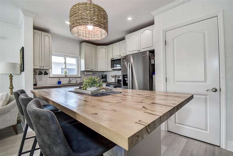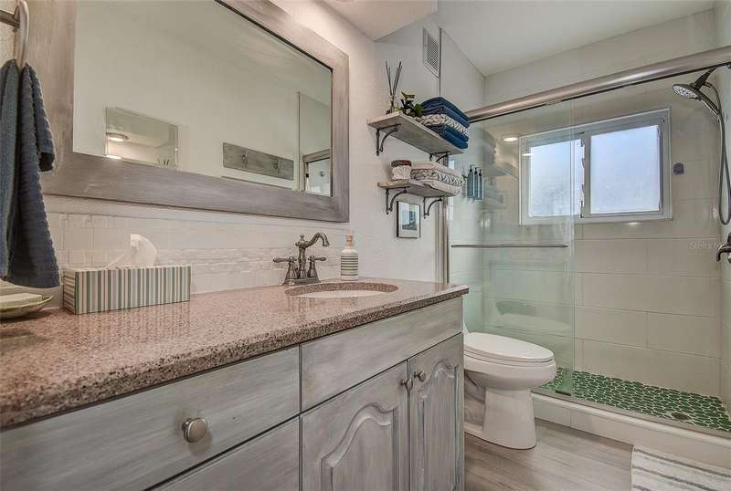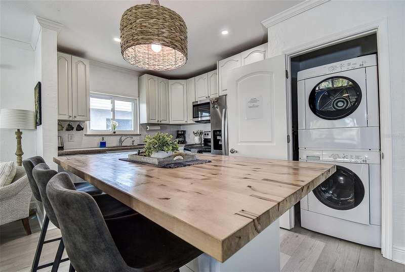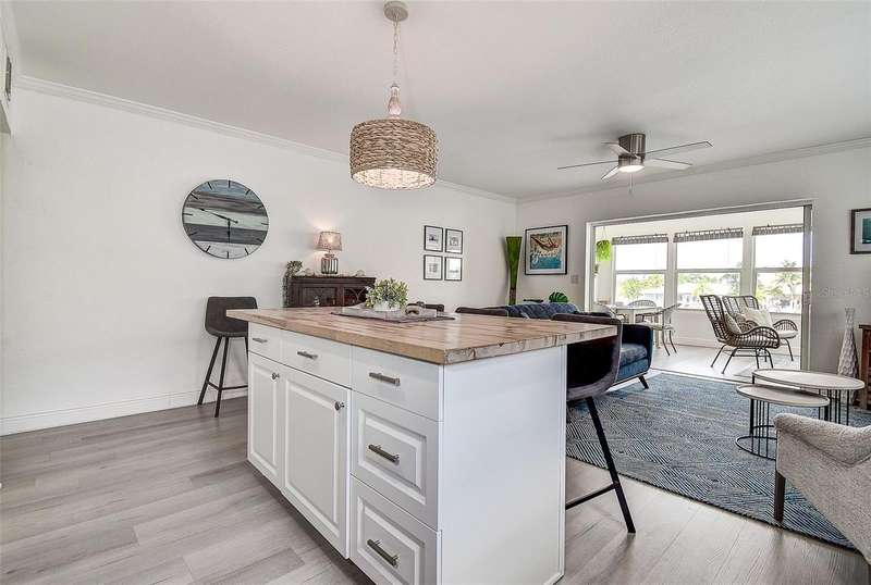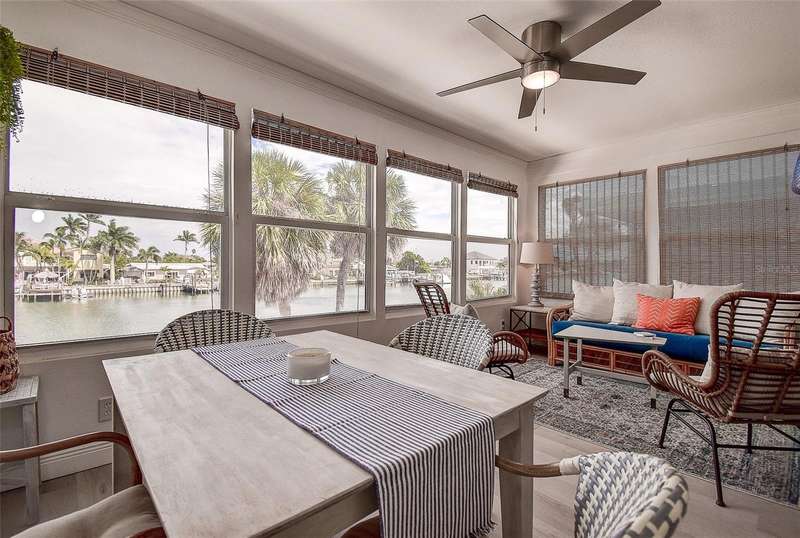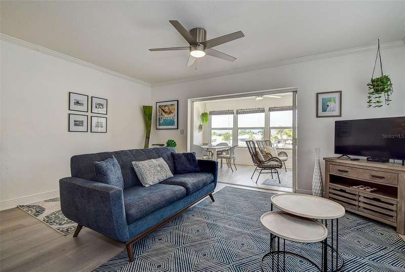 Enjoy waterfront living at Capri of Treasure Island—just a short walk or bike ride to the beach! This fully renovated 1 bedroom 1 bath corner condo unit features an open floor plan with beautiful water views, updated bathroom w/ walk-in shower and updated kitchen with new island/breakfast bar—perfect for entertaining. The dining / living room area opens to a bright bonus 159 sq ft enclosed sunroom (not included in heated sq ft) with lots of windows and natural light to enjoy the sunrise and water views. Also impact resistant windows, newer water heater and AC, new refrigerator, dishwasher and luxury plank vinyl flooring throughout. Capri of Treasure Island is also close to a community boat slip and park with playground, tennis and pickleball courts. There are also many restaurants and shops nearby and just a short drive to vibrant downtown St Pete. This unit comes with 1 assigned parking space. Furniture and furnishings are negotiable – most furnishings included. Make an appointment today!