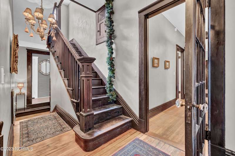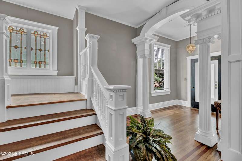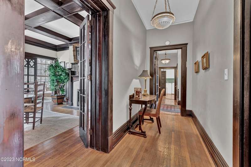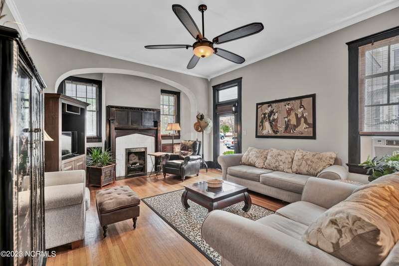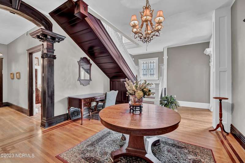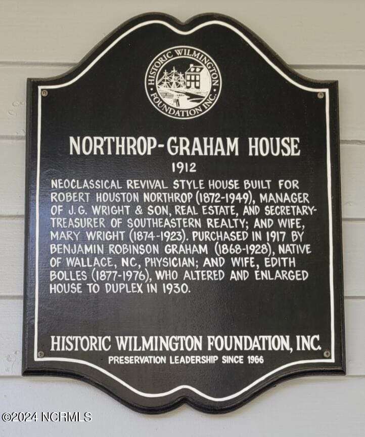 Step into the past at the Northrop-Graham House, an exemplary Neoclassical Revival-style residence that captivates with its grand 2.5-story facade. Welcoming you is a wrap-around front porch, setting the tone for an inviting entry into the home. Step through the front door to discover an impressive foyer, complete with a breathtaking oversized entry hall that is sure to enchant all your guests. The house boasts original features, including hardwood floors with intricate inlaid details, three sets of functional double pocket doors, and a single door gracing the living areas. The formal dining room, adorned with a coffered ceiling, is adjacent to the original solarium. Eight fireplaces with detailed mantels add to the historic charm. Over the years, the current owner has meticulously restored many features, and now, they are ready to pass the torch to a new owner. This presents a wonderful opportunity for someone with a passion for preserving and appreciating historic homes. This residence has borne witness to decades of history, and now it's your turn to create lasting memories in this living piece of Wilmington's past.The location is unbeatable, offering a short stroll through the Historic District to the revitalized Riverwalk and downtown area. Here, you'll find a plethora of restaurants, shops, as well as music and theatrical venues, providing an enriching cultural experience right at your doorstep. Ask about great short term (AirBNB/VRBO rental income potential.