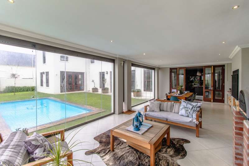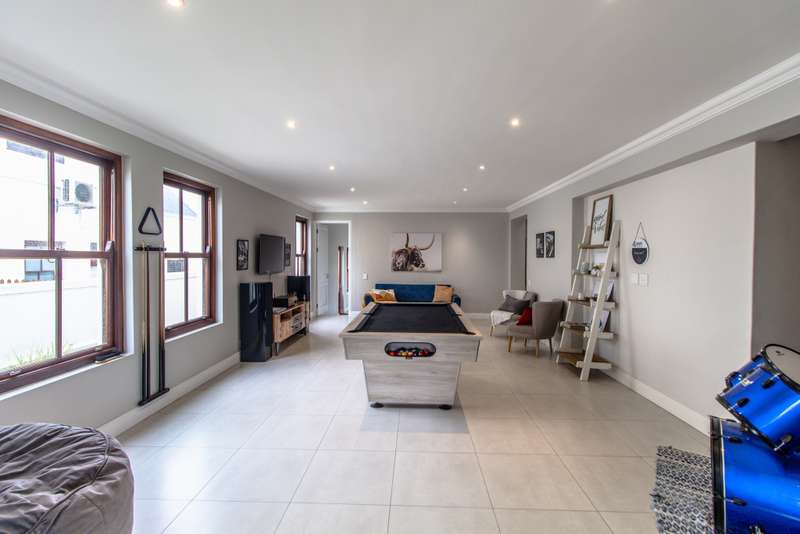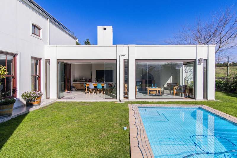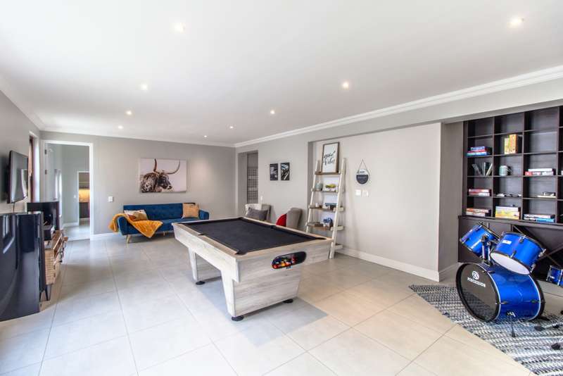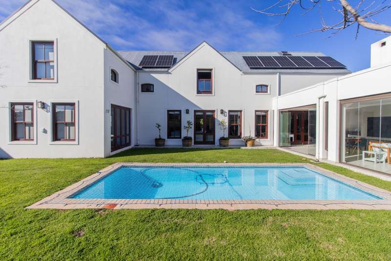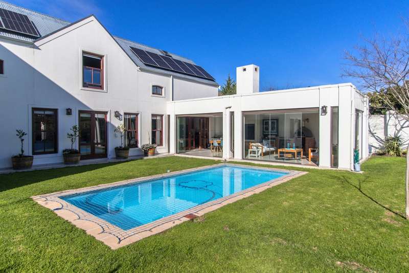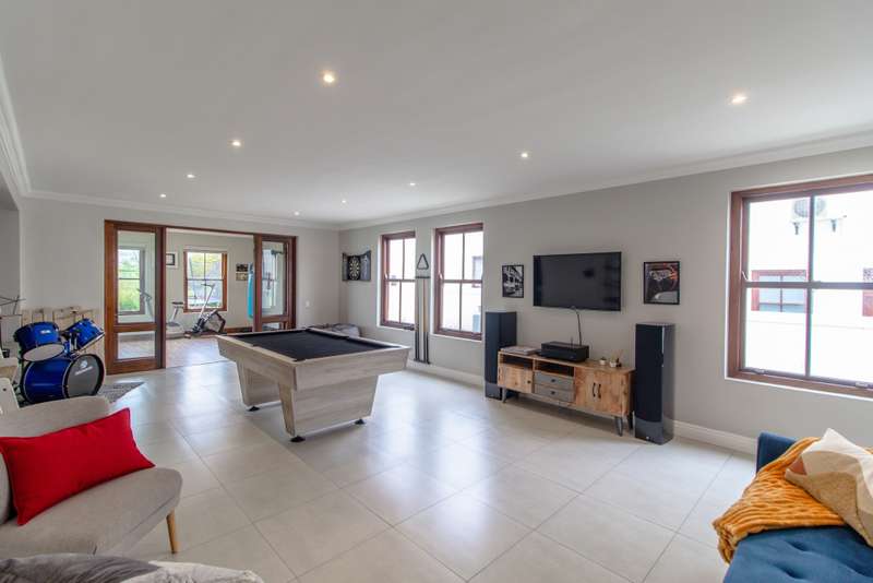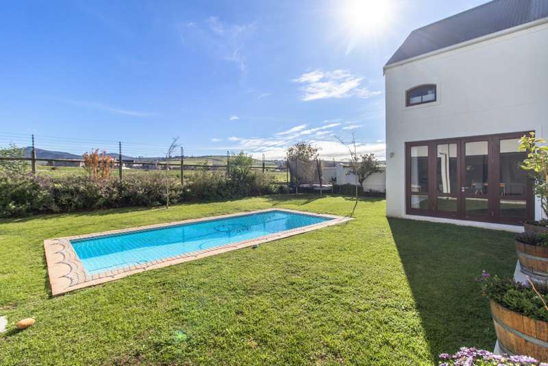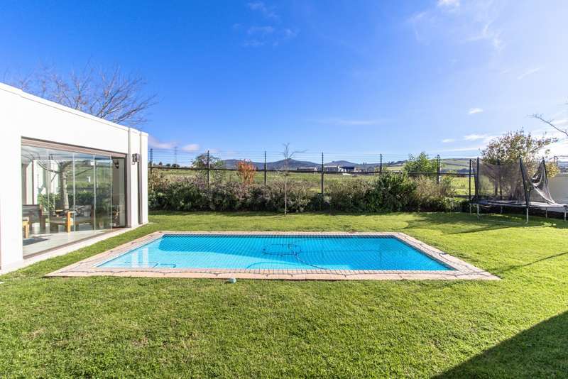 5 Bedroom House for Sale in Digteby Estate Erf Size: 1000 m² Property Features: 5 spacious bedrooms, including two en-suite downstairs rooms with kitchenettes and three upstairs bedrooms 4.5 modern bathrooms 2.5 garages Open-plan kitchen with electric oven, gas hob, and extractor fan (all included) Living areas with gas fireplace and underfloor heating Games room/ GYM and large study Air conditioning in main bedroom, children’s bedrooms, study, living room, and one downstairs bedroom Fibre installed (Herotel, 20mbps) 2 x self-contained 30m² flatlets with private entrance downstairs – ideal for extended family or rental income Energy & Water Efficiency: 8kW DEYE solar inverter, 15kW battery capacity, 8kW of solar panels (installed 2023) Approx. 20 hours backup power during outages 2 geysers, including a gas backup system for one Irrigation system and borehole-supplied water tank top-up (weekly) Pool with heat pump and safety net Security & Estate: 24/7 manned security with patrols Electric fencing and perimeter cameras Alarm system and outdoor beams (not in use) Pet-friendly in accordance with estate rules This immaculate property is just minutes from central Stellenbosch, offering the perfect blend of tranquility, convenience, and high-end living. Situated in the heart of the Winelands, this exquisite 5-bedroom, 4-bathroom home offers an exceptional lifestyle in the secure and exclusive Digteby Estate. Perfectly designed in a U-shape around a central pool and expansive entertainment patio , the layout maximizes privacy, light, and seamless indoor-outdoor flow. Frameless glass doors open up to the covered patio with built-in braai and wood-fired pizza oven – perfect for entertaining. Located just outside Stellenbosch, Digteby Estate offers a peaceful and secure lifestyle surrounded by vineyards and olive groves. The estate features a spacious park, a clubhouse for residents, and breathtaking views of five mountain ranges, including the Stellenbosch, Helderberg, and Simonsberg mountains. With its natural beauty, open spaces, and timeless charm, Digteby is ideal for those seeking a quiet, country setting close to town. ?Contact us today to arrange a private viewing.