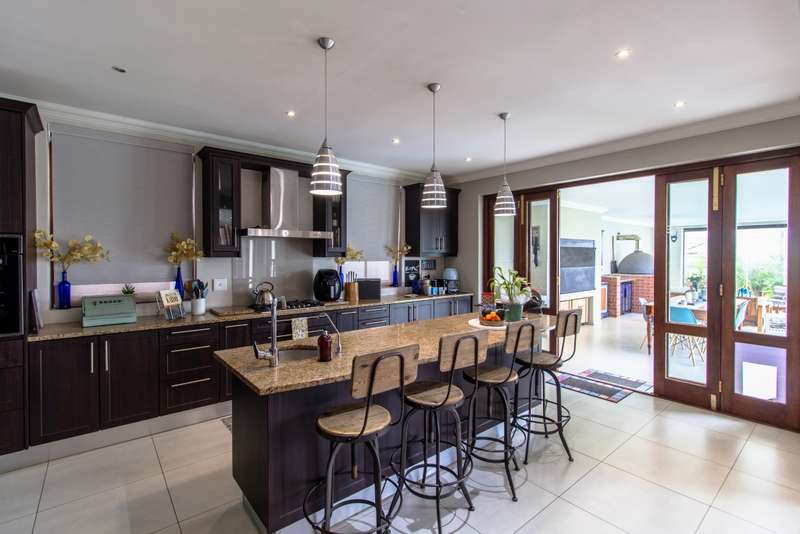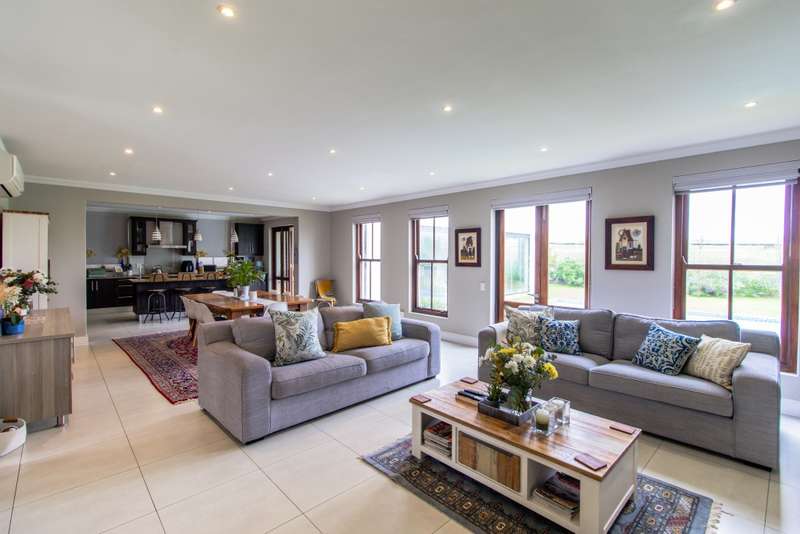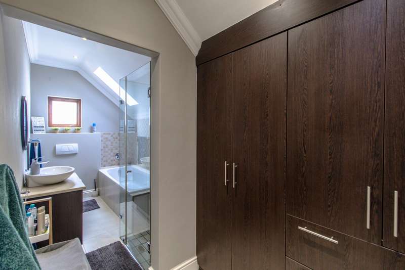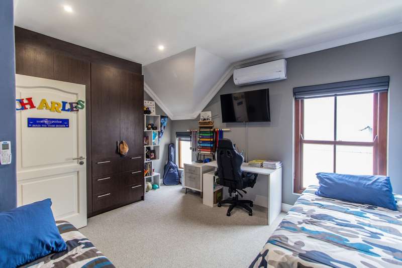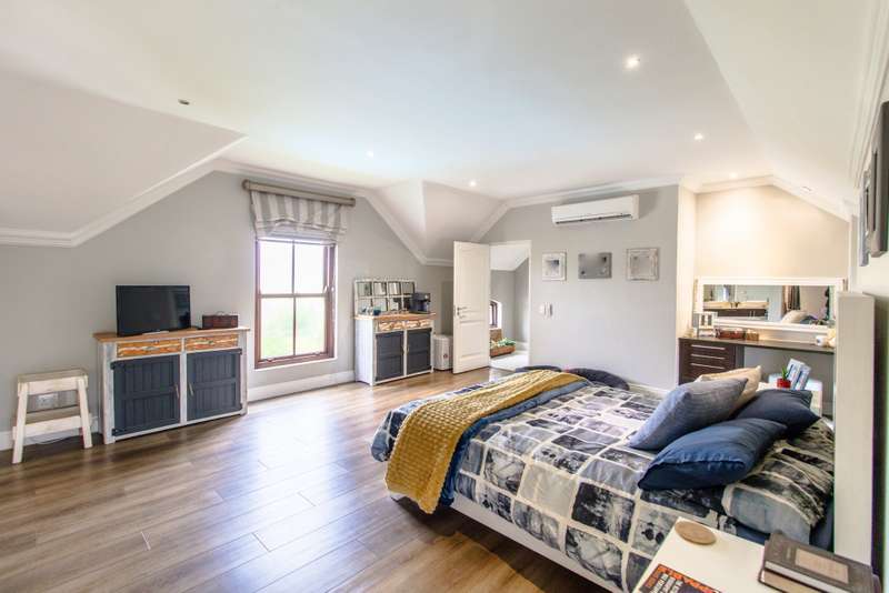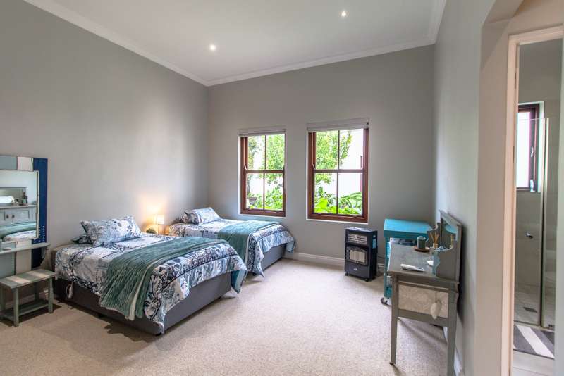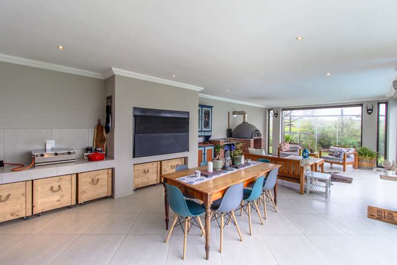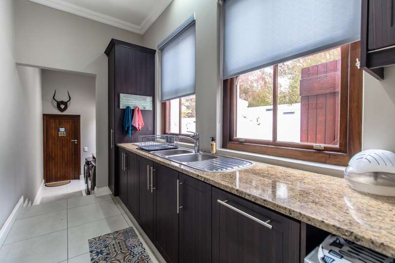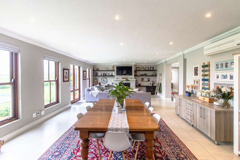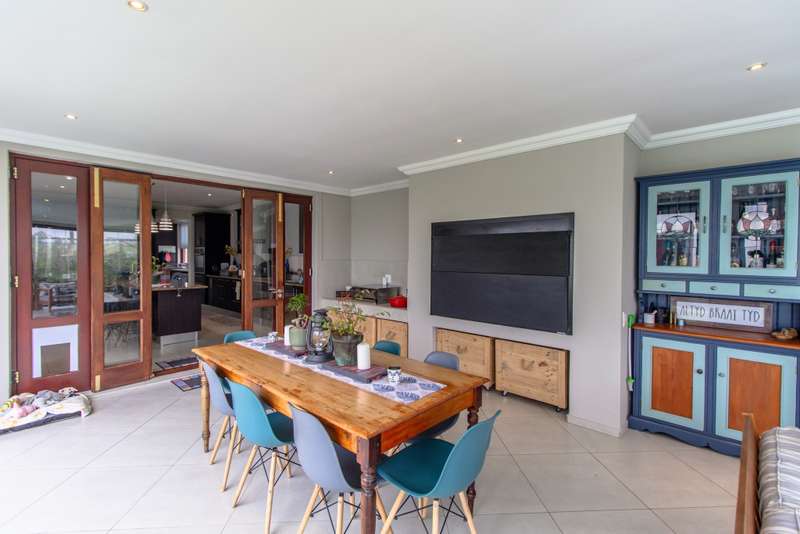 5 Bedroom House for Sale in Digteby Estate Erf Size: 1000 m² Property Features: 5 spacious bedrooms, including two en-suite downstairs rooms with kitchenettes and three upstairs bedrooms 4.5 modern bathrooms 2.5 garages Open-plan kitchen with electric oven, gas hob, and extractor fan (all included) Living areas with gas fireplace and underfloor heating Games room/ GYM and large study Air conditioning in main bedroom, children’s bedrooms, study, living room, and one downstairs bedroom Fibre installed (Herotel, 20mbps) 2 x self-contained 30m² flatlets with private entrance downstairs – ideal for extended family or rental income Energy & Water Efficiency: 8kW DEYE solar inverter, 15kW battery capacity, 8kW of solar panels (installed 2023) Approx. 20 hours backup power during outages 2 geysers, including a gas backup system for one Irrigation system and borehole-supplied water tank top-up (weekly) Pool with heat pump and safety net Security & Estate: 24/7 manned security with patrols Electric fencing and perimeter cameras Alarm system and outdoor beams (not in use) Pet-friendly in accordance with estate rules This immaculate property is just minutes from central Stellenbosch, offering the perfect blend of tranquility, convenience, and high-end living. Situated in the heart of the Winelands, this exquisite 5-bedroom, 4-bathroom home offers an exceptional lifestyle in the secure and exclusive Digteby Estate. Perfectly designed in a U-shape around a central pool and expansive entertainment patio , the layout maximizes privacy, light, and seamless indoor-outdoor flow. Frameless glass doors open up to the covered patio with built-in braai and wood-fired pizza oven – perfect for entertaining. Located just outside Stellenbosch, Digteby Estate offers a peaceful and secure lifestyle surrounded by vineyards and olive groves. The estate features a spacious park, a clubhouse for residents, and breathtaking views of five mountain ranges, including the Stellenbosch, Helderberg, and Simonsberg mountains. With its natural beauty, open spaces, and timeless charm, Digteby is ideal for those seeking a quiet, country setting close to town. ?Contact us today to arrange a private viewing.