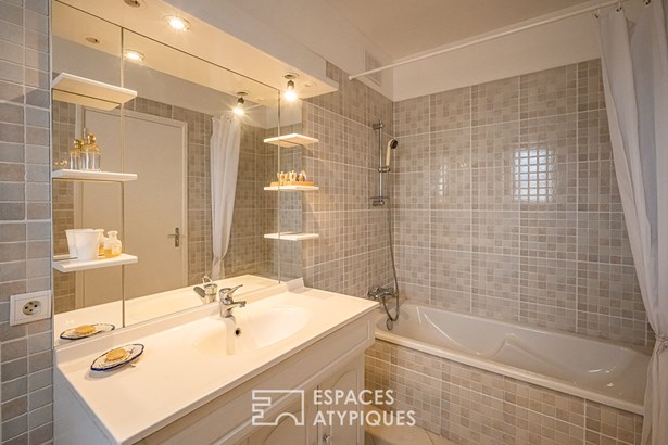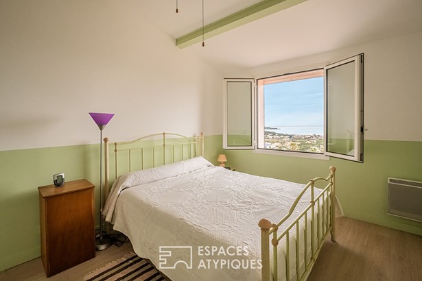 A flight of steps takes us to the upper level opening onto a spacious mezzanine and serving two bedrooms with sea view and a bathroom. The property has a games room on the garden level, revealing itself on the outdoor spaces dotted with citrus trees where it is good to breathe in the 'air of orange blossom' in spring, an energizing scent.