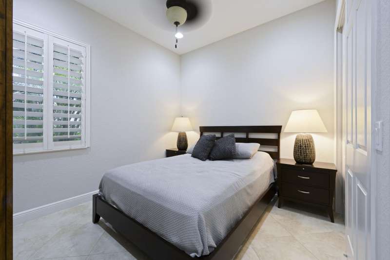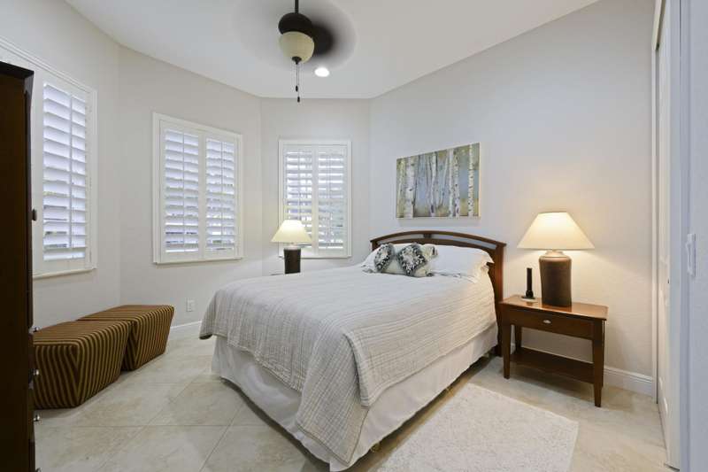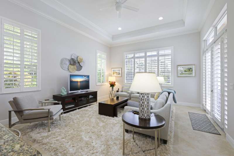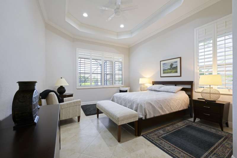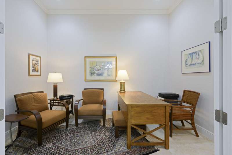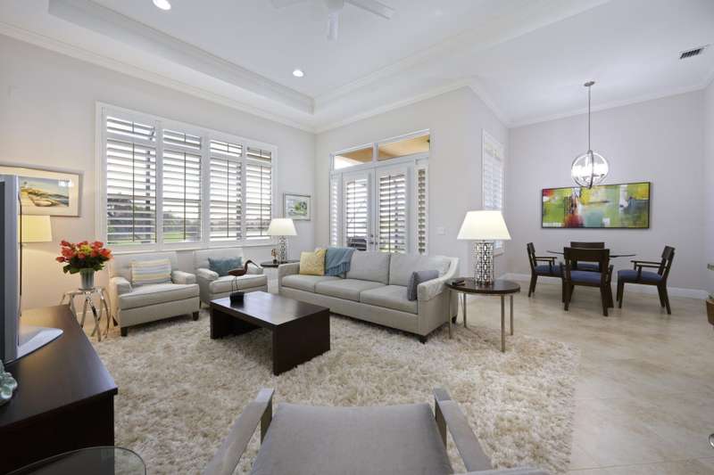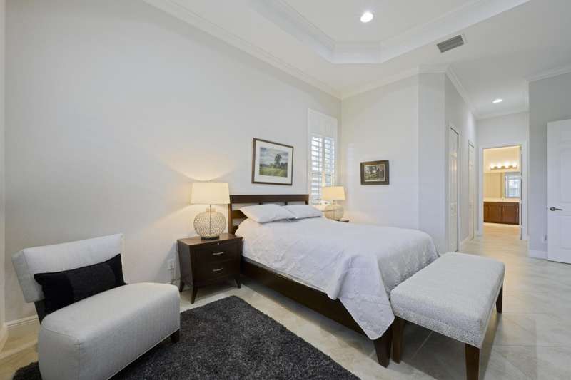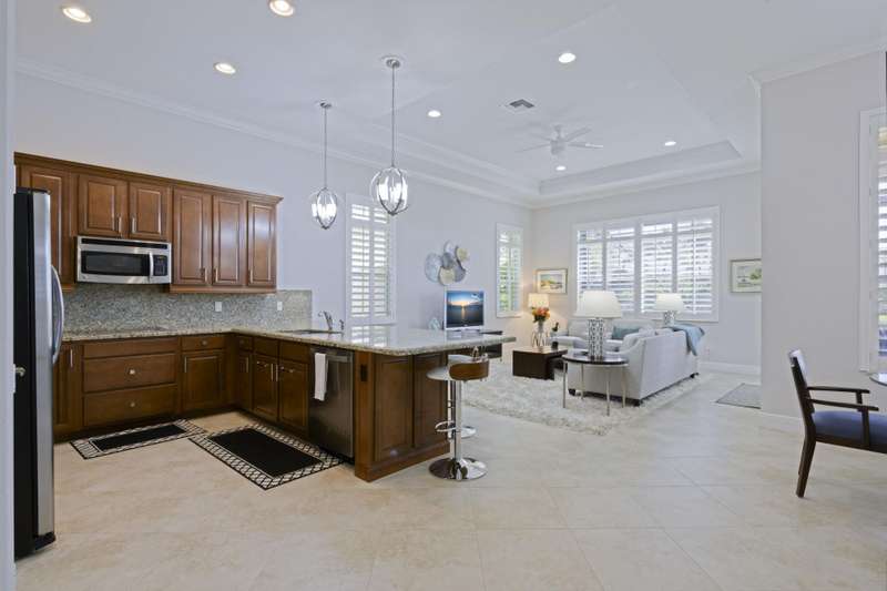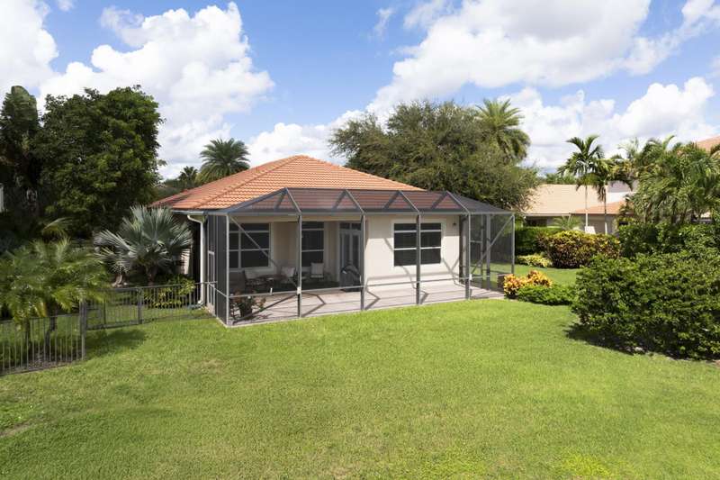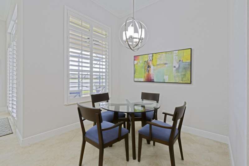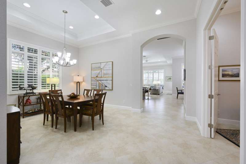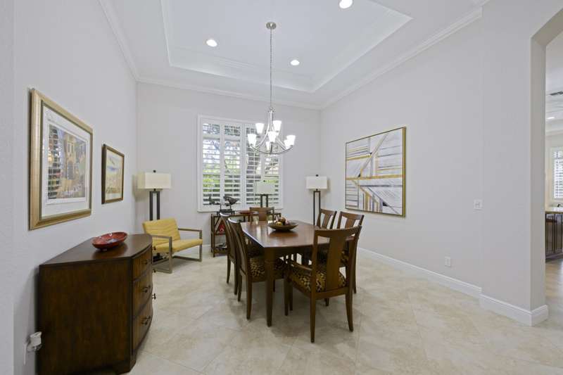 Welcome to Paloma, one of Palm Beach Gardens most sought-after gated communities. This beautifully maintained single-family residence offers 3 bedrooms, 2.5 baths, a versatile den, and a 2-car garage, all thoughtfully designed with a split floor plan for comfort and privacy. Step inside the grand foyer, accented by chandelier lighting, crown molding, and custom baseboards, and youll immediately notice the timeless details throughout -- including plantation shutters, recessed lighting, and tile flooring in every room. The formal dining room features elegant lighting and seamlessly connects to the double-door den, perfect for a home office or library.