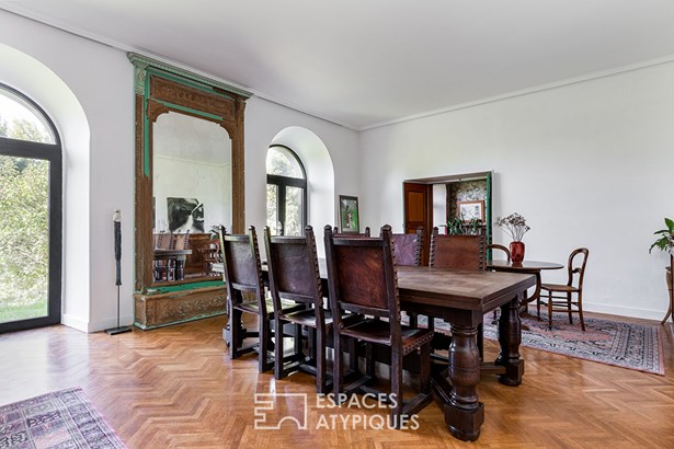 This property, which has crossed the ages with elegance, offers a total surface area of more than 550 sqm including a habitable part tastefully renovated, but also considerable development potential. The living rooms, bathed in light, benefit from a qualitative renovation that has sublimated the noble materials and generous volumes.