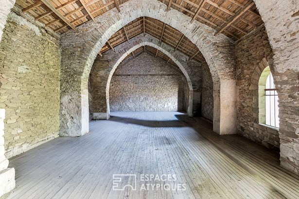 In the wings of the house, which communicate with the main part, old rooms of character follow one another such as a kitchen with scullery or a magnificent room of 130 sqm with a framework and its vaulted yokes of unparalleled charm, which are all spaces to rethink for a unique project.