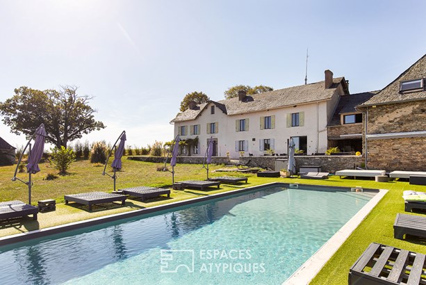 A barn completes the property. Outside, the 1.5 hectare park offers large green spaces with trees with a breathtaking view of the surrounding countryside, a real promise of moments of relaxation and conviviality, especially around the swimming pool (renovation work to be expected).