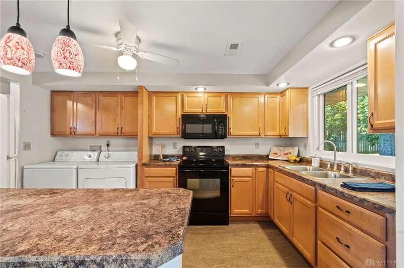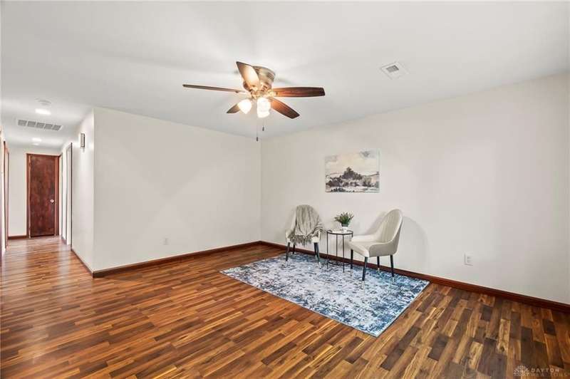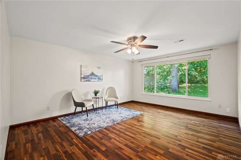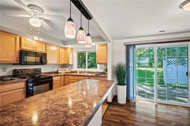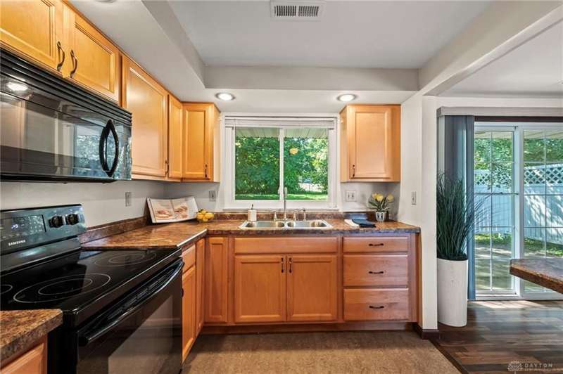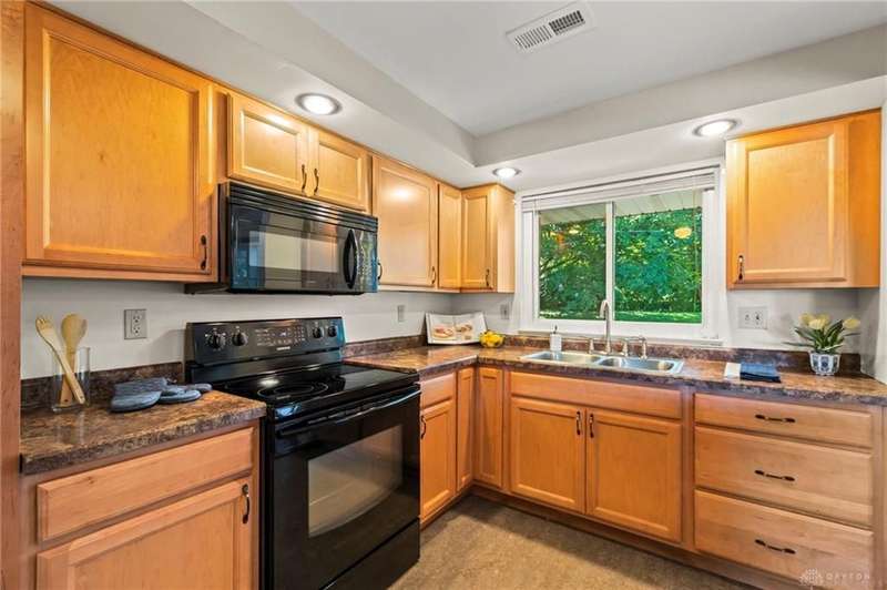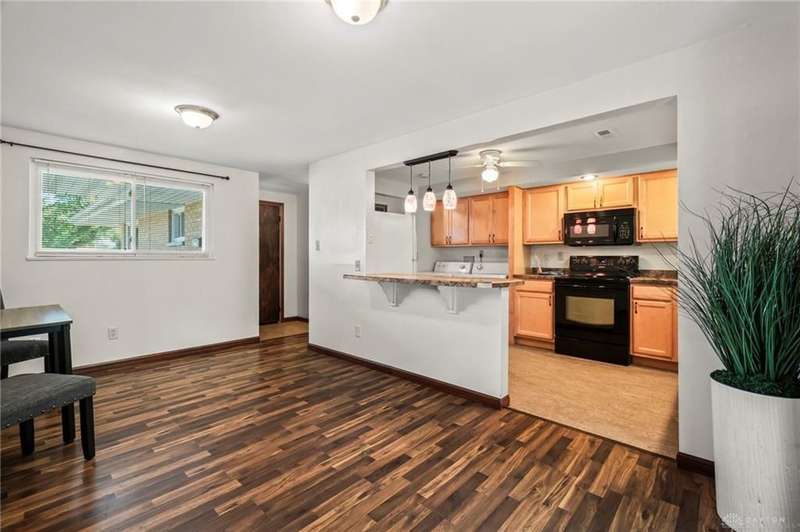 Discover this impeccably maintained three-bedroom brick ranch nestled in the serene Park Hills neighborhood of Fairborn! Inside, abundant natural light and luxury vinyl flooring create a warm, inviting atmosphere throughout. At the heart of the home, the galley-style kitchen seamlessly connects to the dining area with a breakfast bar and walkout access to both the back patio and attached one-car garage. Just beyond, a spacious living room features a large picture window overlooking the backyard. Down the hall, the owner's suite includes a private half bath, complemented by two additional bedrooms and an updated full bath. Step outside to enjoy the shaded backyard and private patio, perfect for relaxing or entertaining. Conveniently located near Wright-Patterson Air Force Base and Wright State University, with quick access to I-675, this home combines comfort, style, and an ideal location!